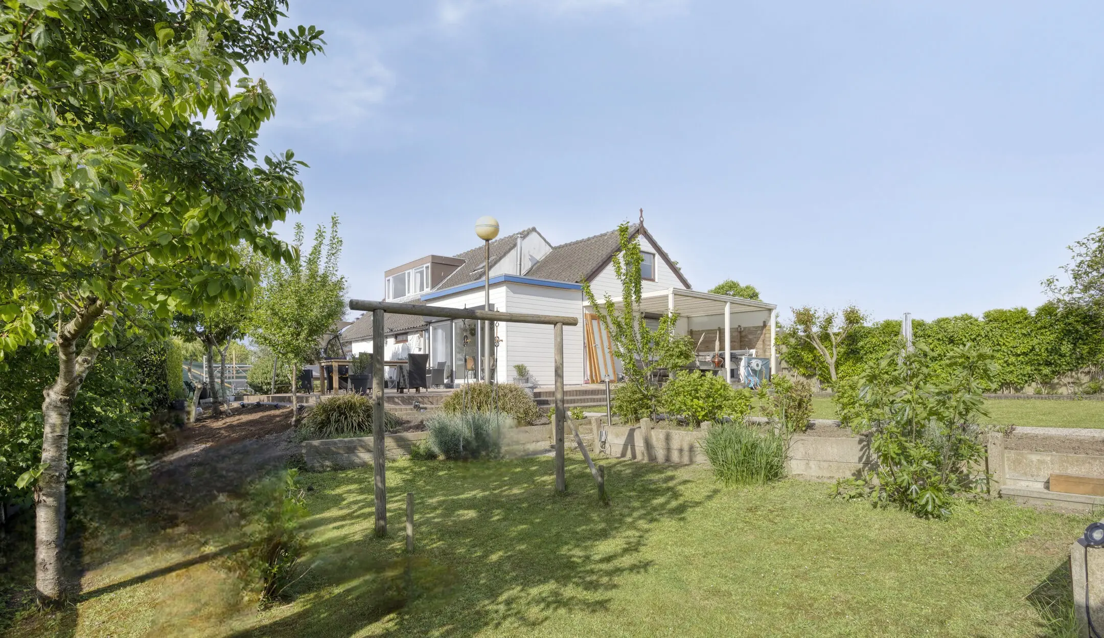 De tuin biedt veel privacy en aan de achterzijde is vrij uitzicht over de polder.