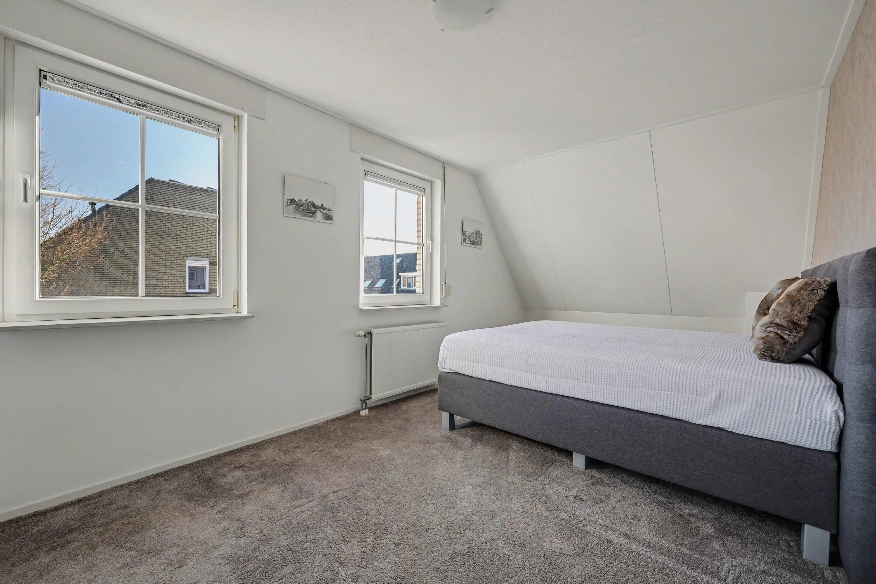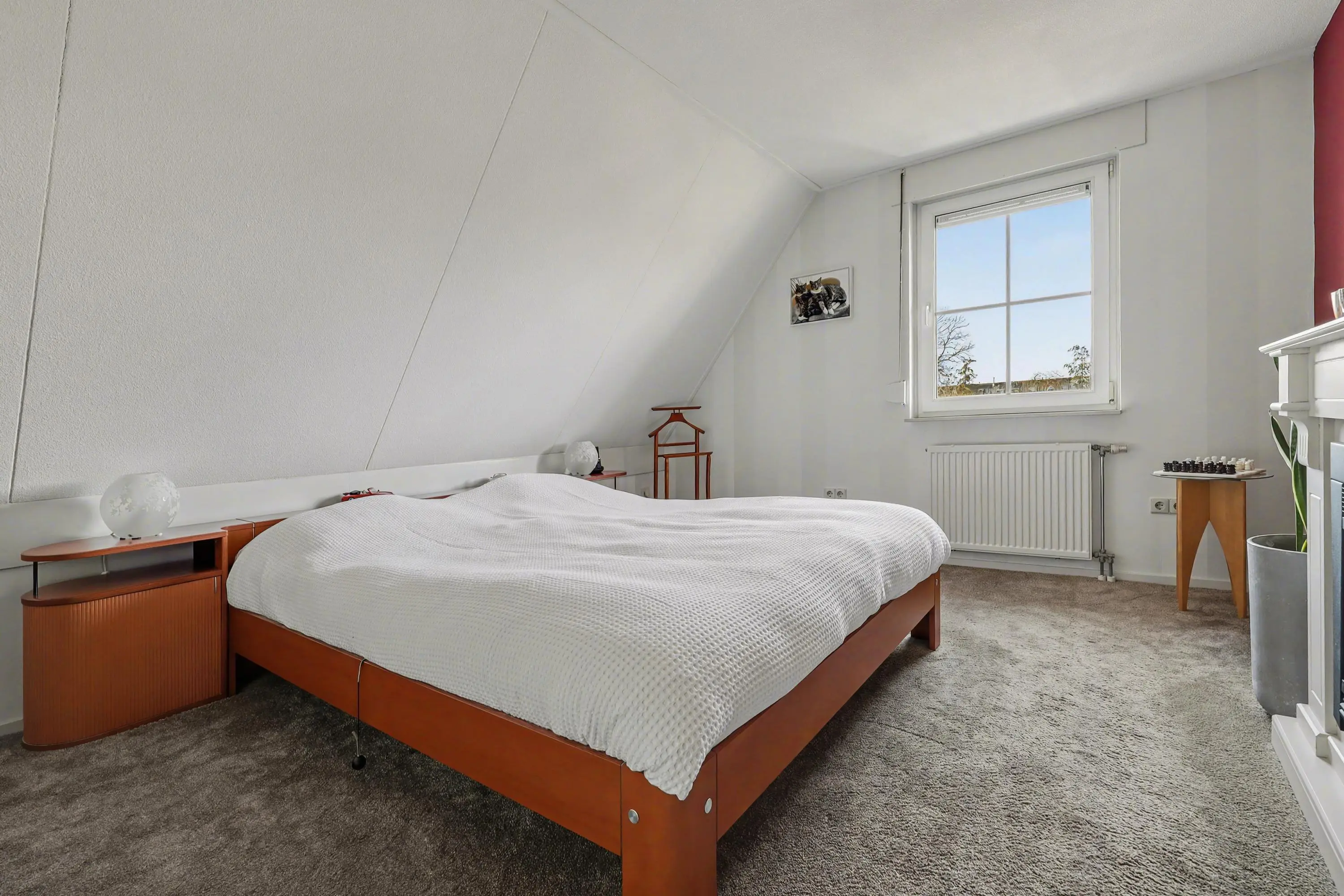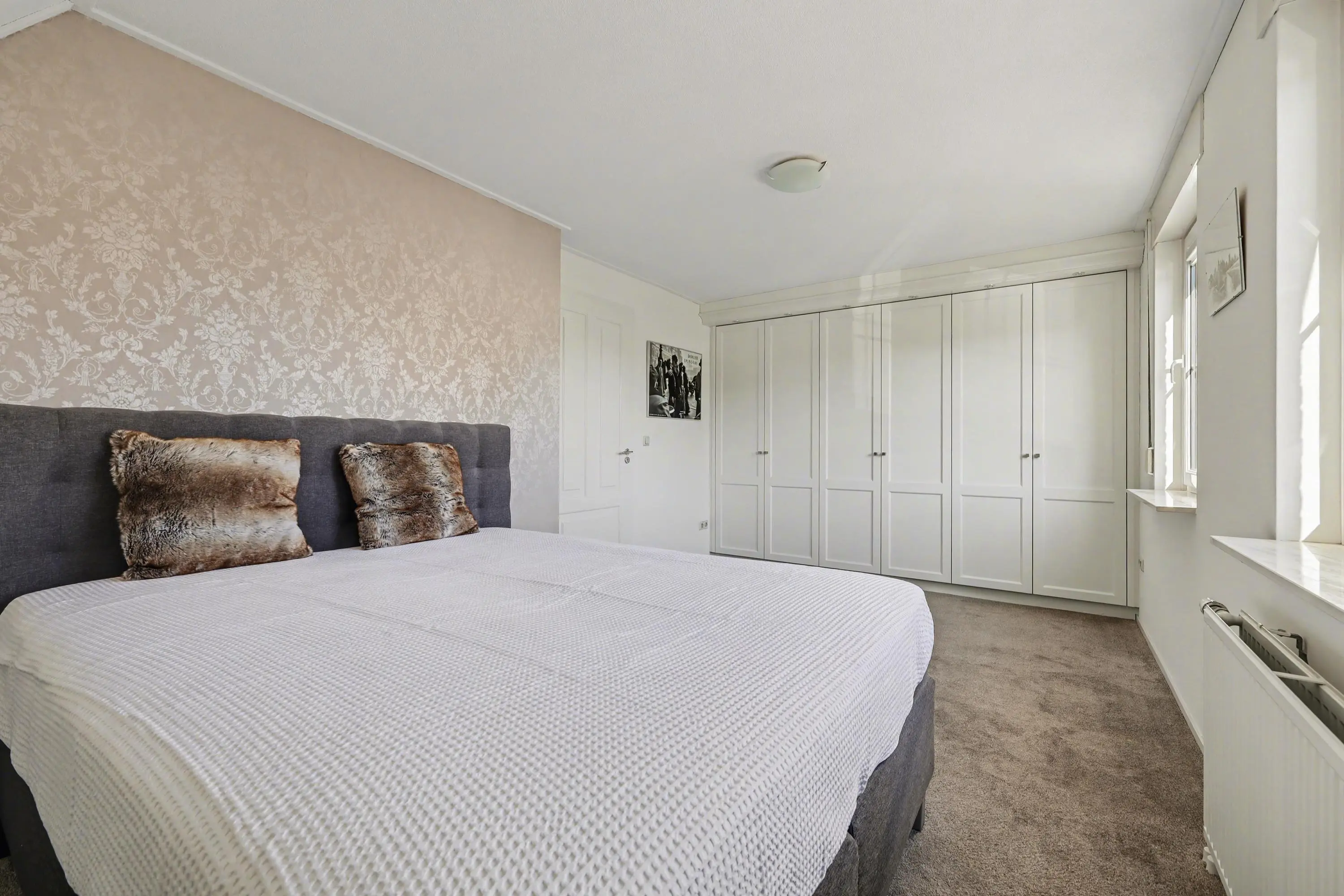 Overloopruimte/vide met Velux dakraam en drie ruime slaapkamers met tapijt op de vloer. Twee slaapkamers aan de achterzijde van de woning en een royale slaapkamer gelegen aan de voorzijde. Twee slaapkamers zijn voorzien van ingebouwde luxe maatwerkkasten, met hanggedeelte, lades en legplanken. Zeer mooie en luxe badkamer (2023) met vloerverwarming, uitgevoerd met whirlpool, inloopdouche voorzien van regen- en handdouche, douchetoilet, badkamermeubel met dubbele wastafel, verwarmde spiegel met verlichting en designradiator. Mechanische afzuiging.