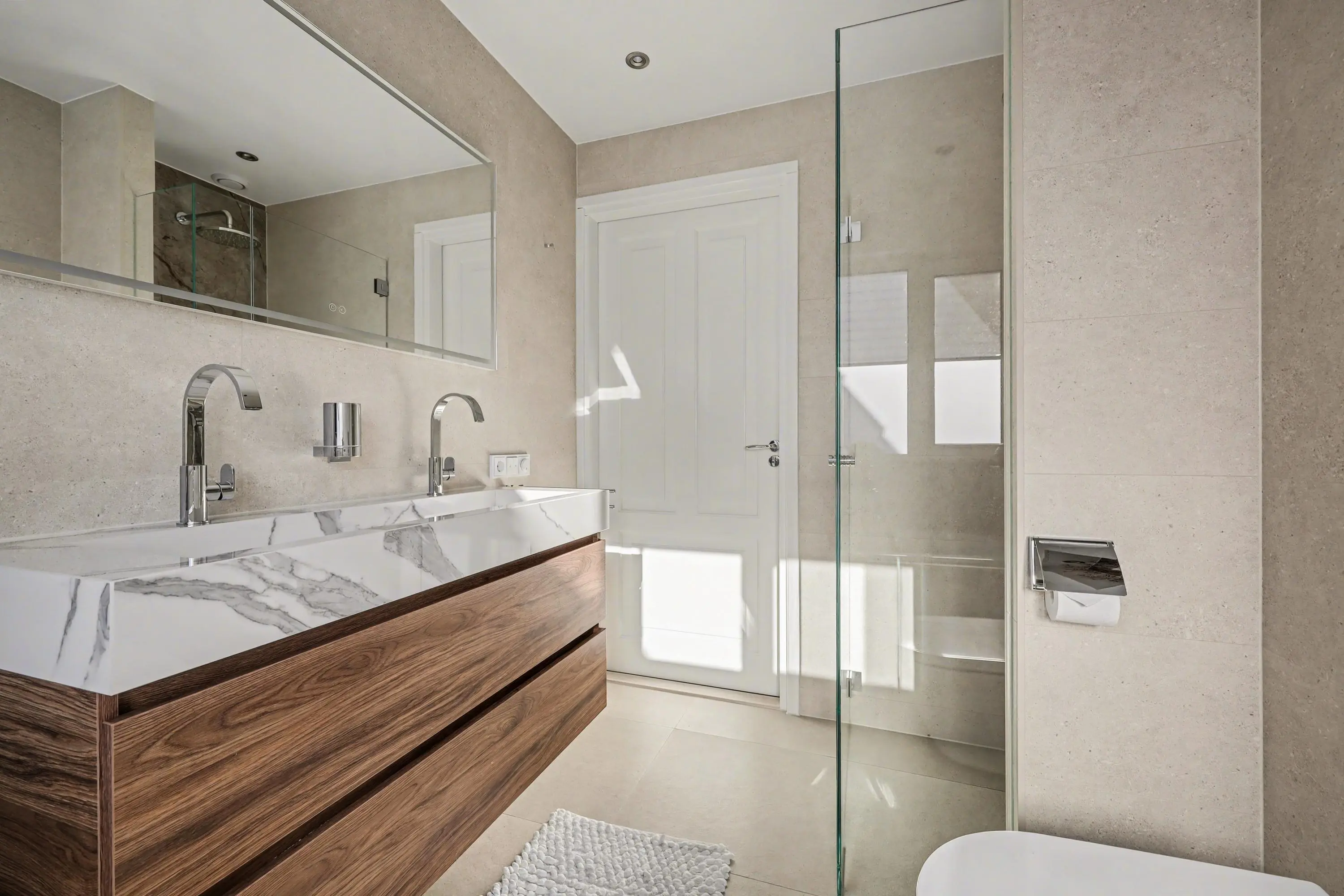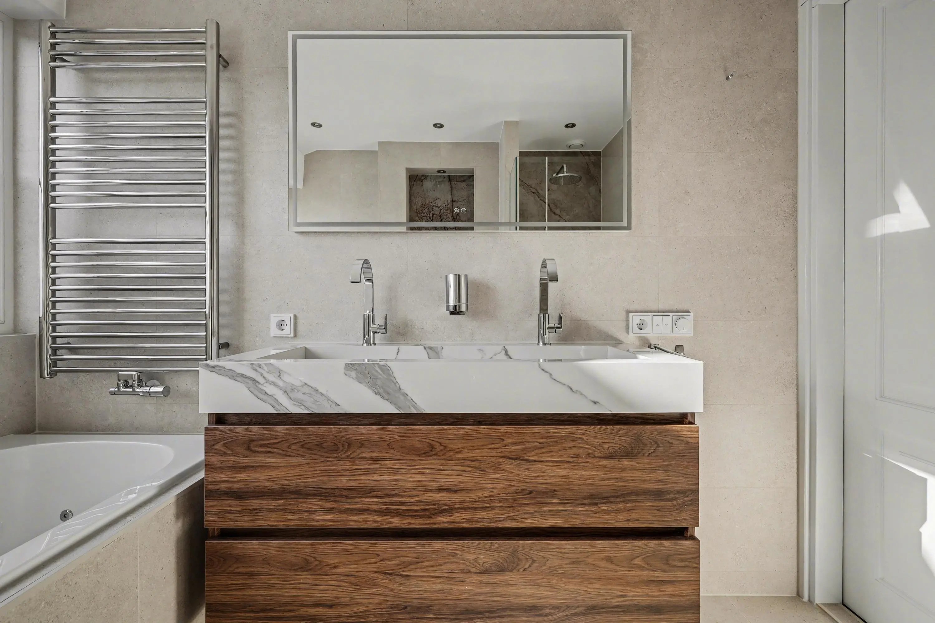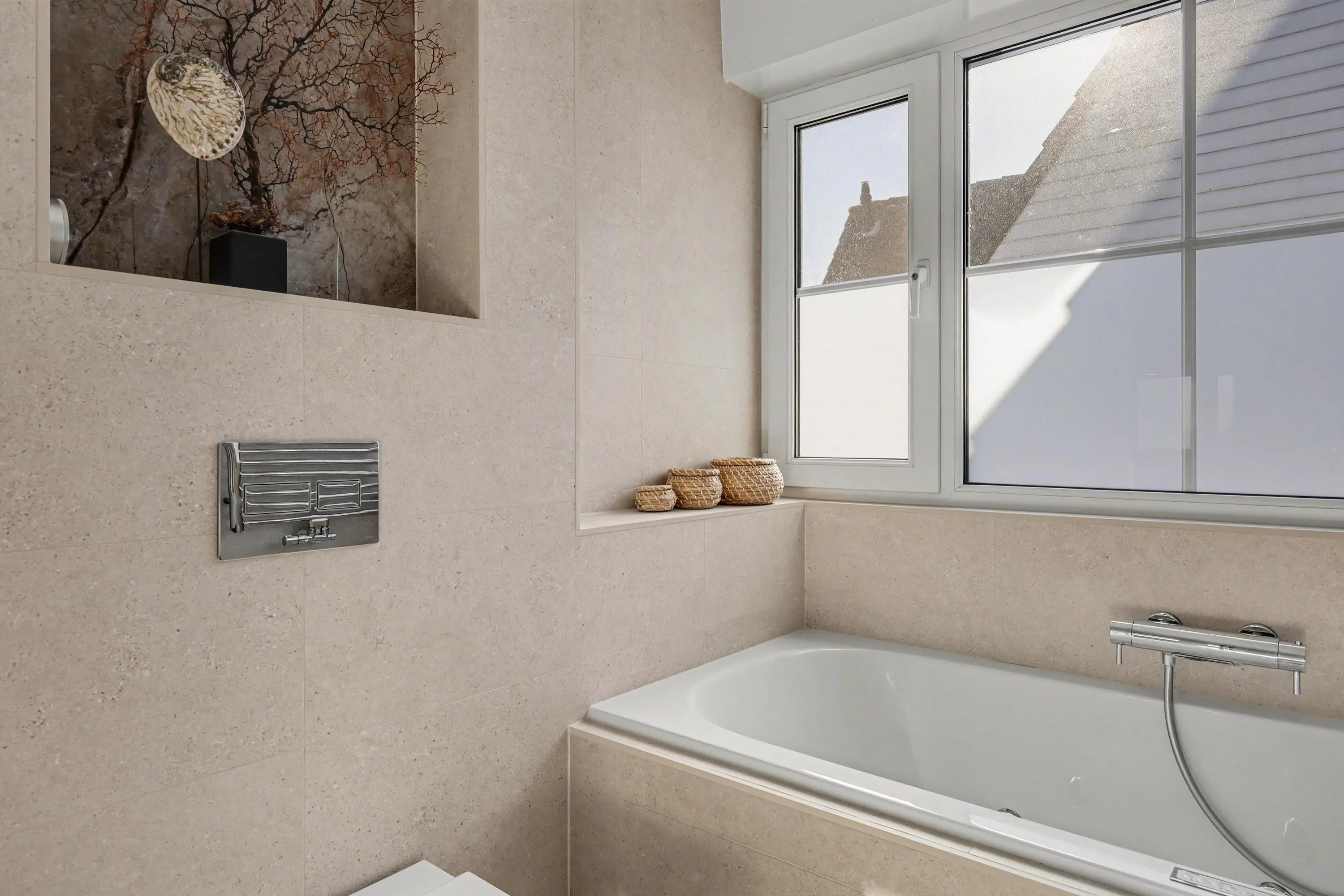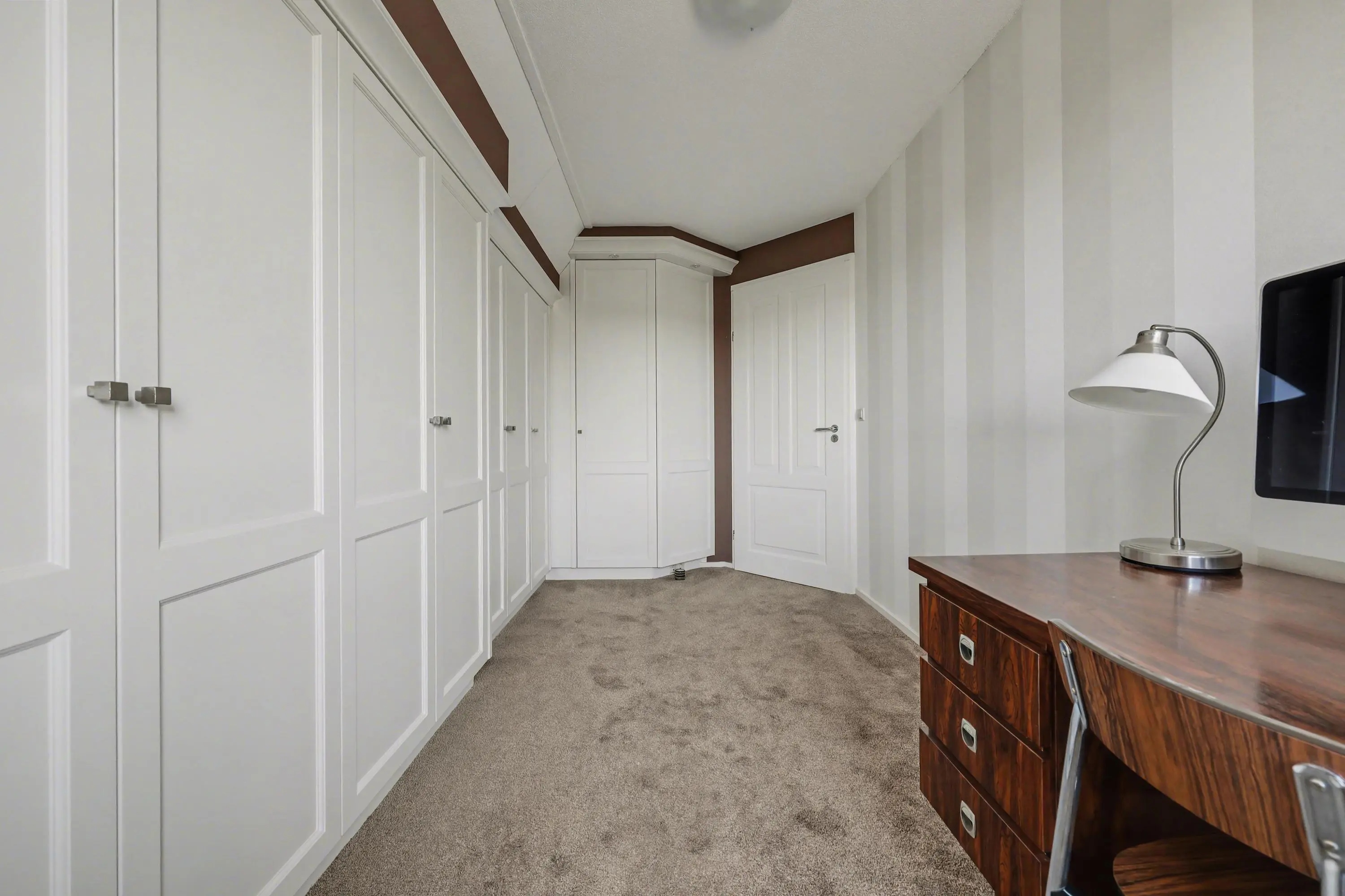 Overloopruimte/vide met Velux dakraam en drie ruime slaapkamers met tapijt op de vloer. Twee slaapkamers aan de achterzijde van de woning en een royale slaapkamer gelegen aan de voorzijde. Twee slaapkamers zijn voorzien van ingebouwde luxe maatwerkkasten, met hanggedeelte, lades en legplanken. Zeer mooie en luxe badkamer (2023) met vloerverwarming, uitgevoerd met whirlpool, inloopdouche voorzien van regen- en handdouche, douchetoilet, badkamermeubel met dubbele wastafel, verwarmde spiegel met verlichting en designradiator. Mechanische afzuiging.