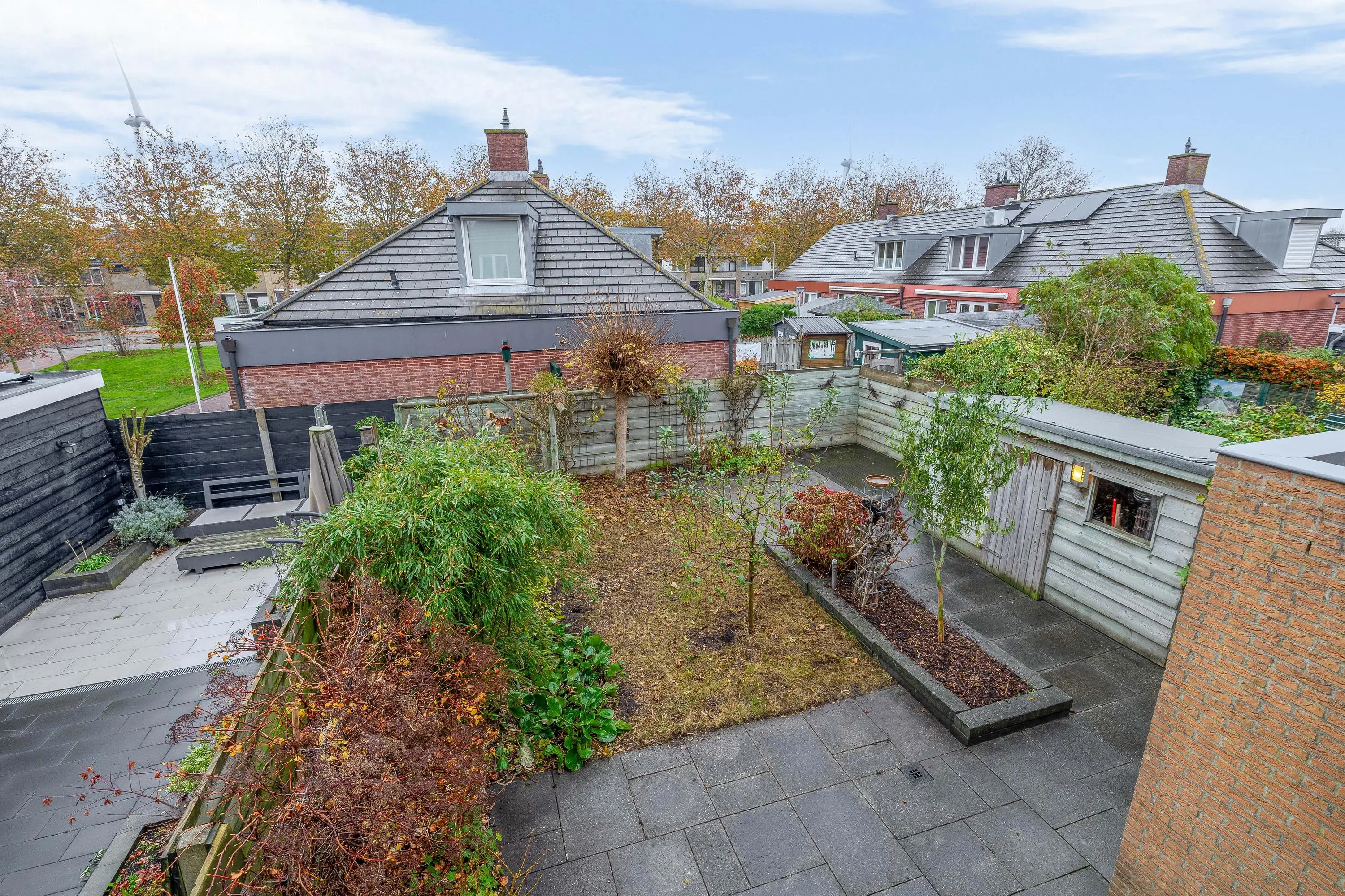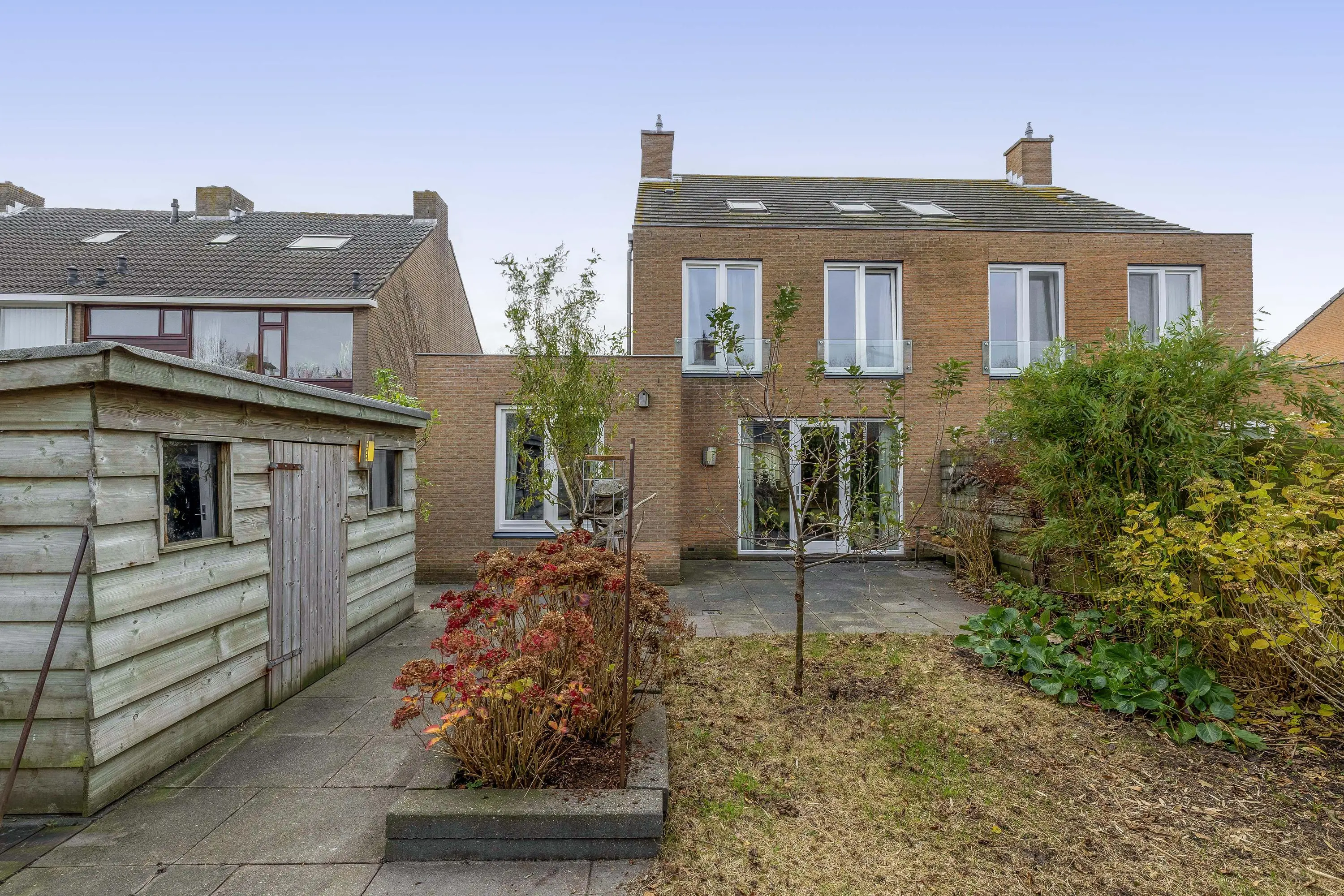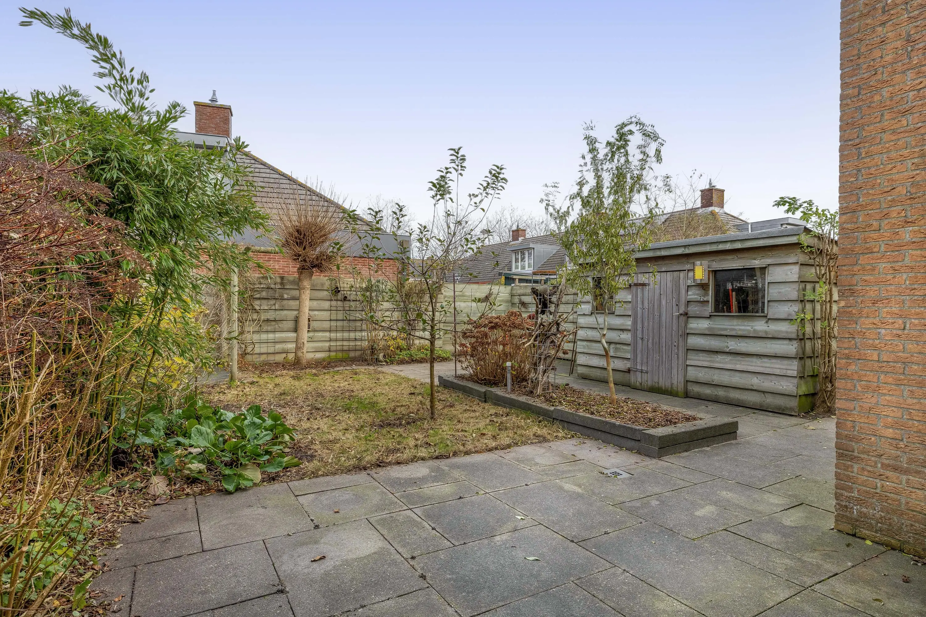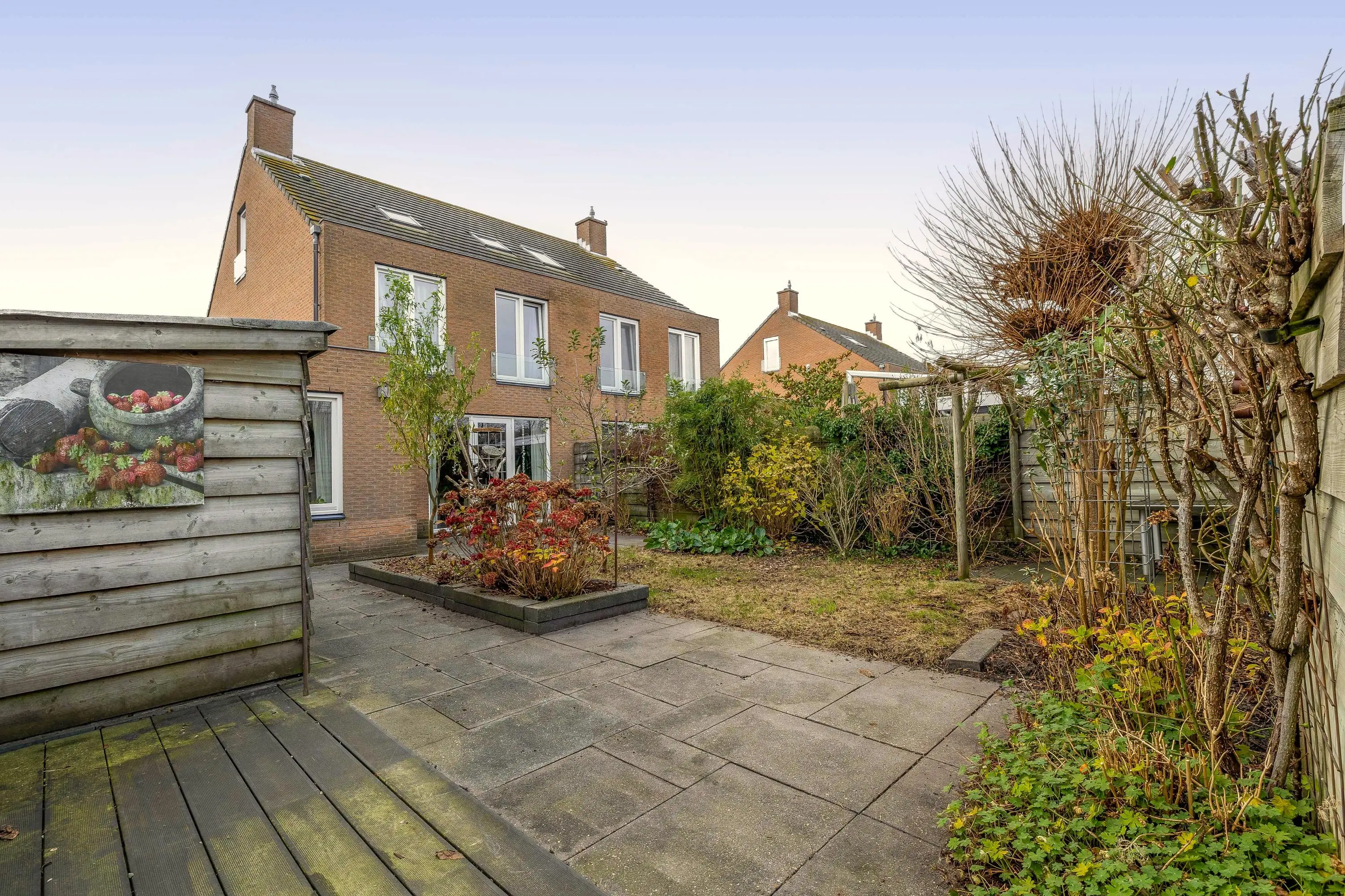 De woning beschikt over een voor-, zij- en achtertuin, wat zorgt voor een vrij gevoel en meerdere plekken om van de zon te genieten. De achtertuin is verzorgd ingericht en biedt voldoende ruimte voor terras, groen en eventueel speelvoorzieningen.