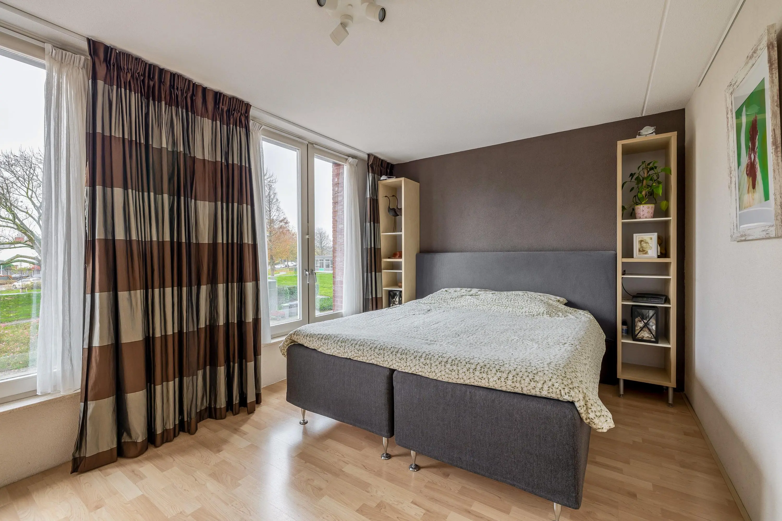 De slaapkamers zijn van een ruim formaat, de slaapkamer aan de achterzijde beschikt over een praktische vaste kast.