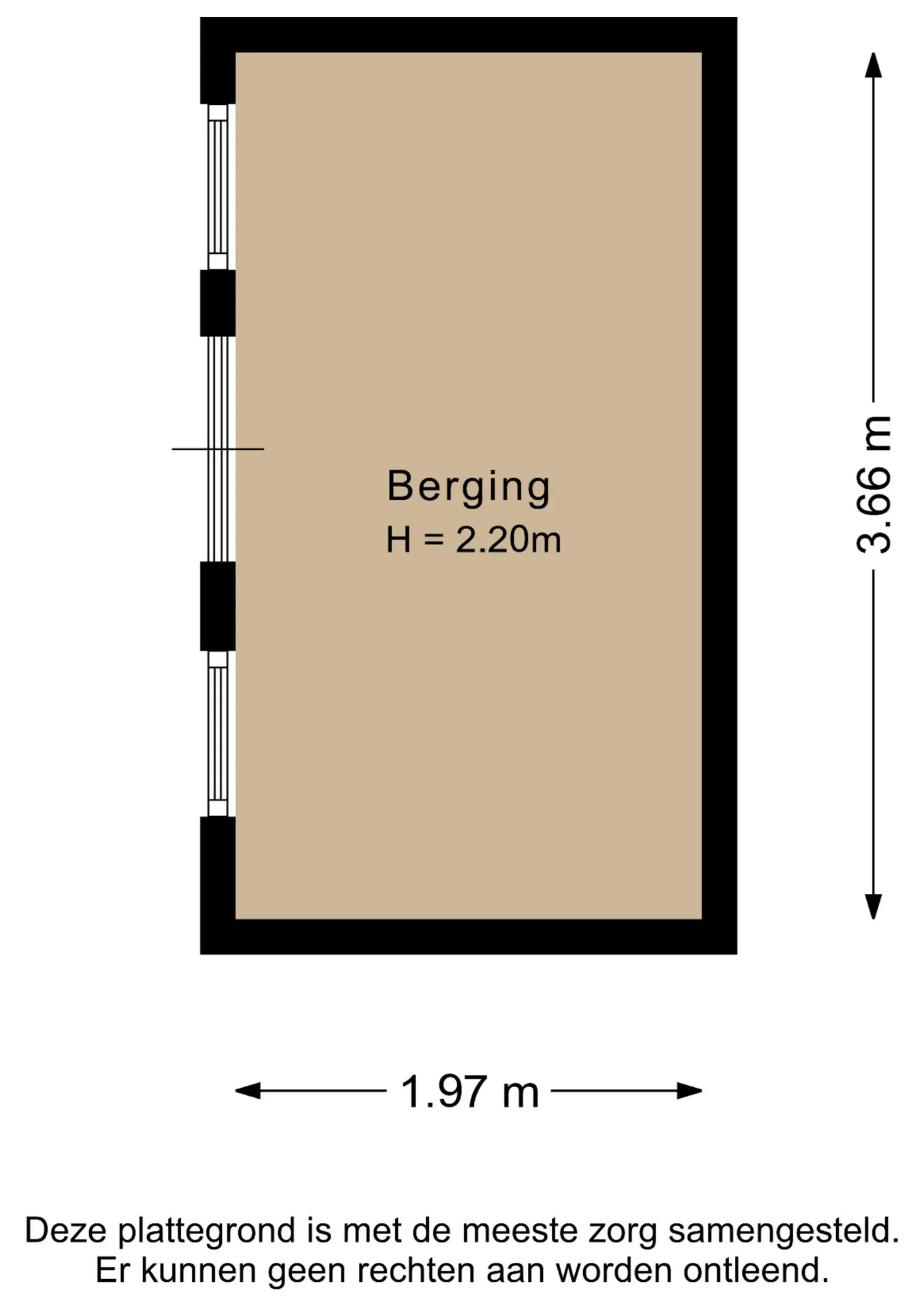 Berging: 3,66 x 1,97m.