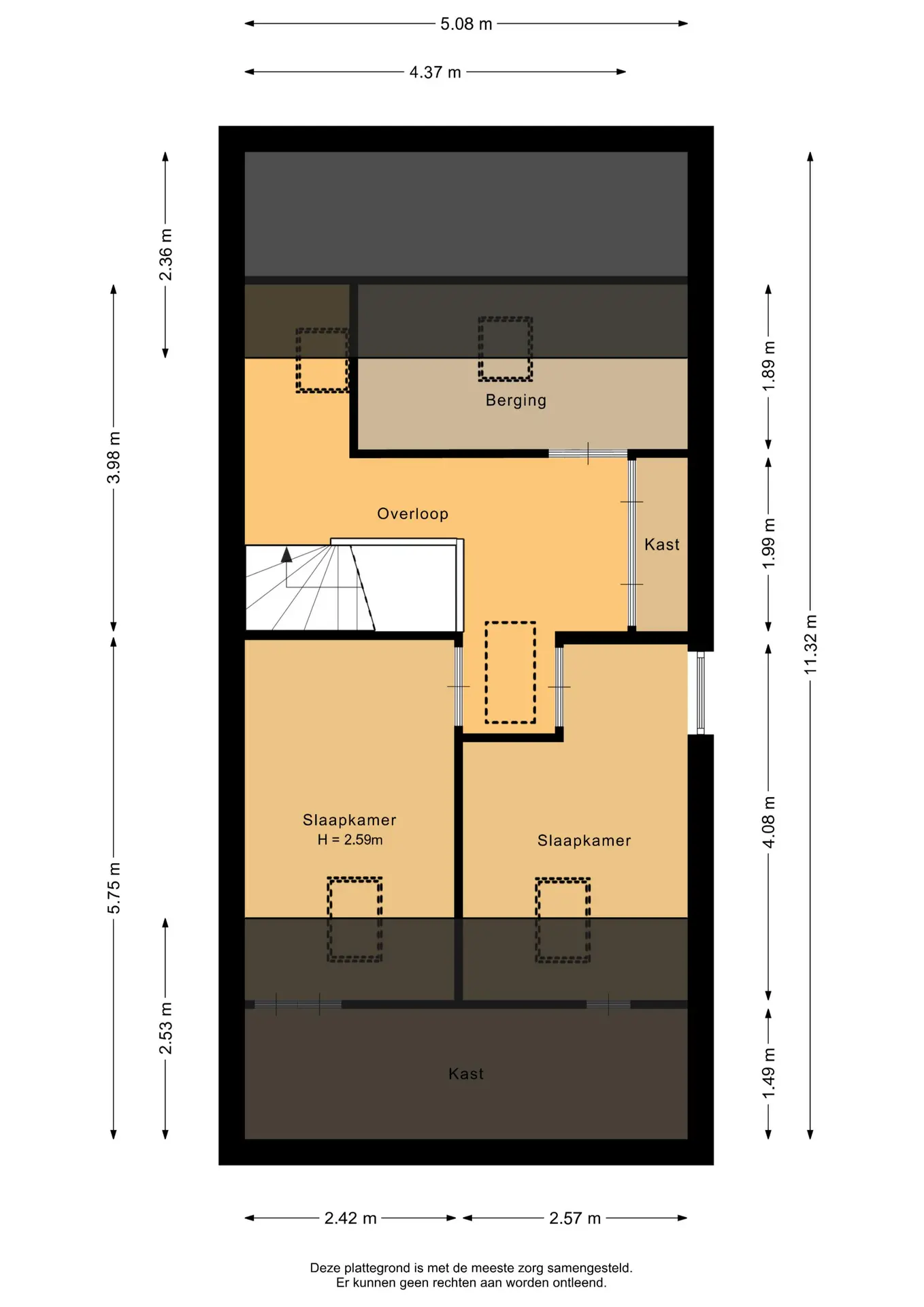 Slaapkamer IV: 5,75/4,08 x 2,42 m.