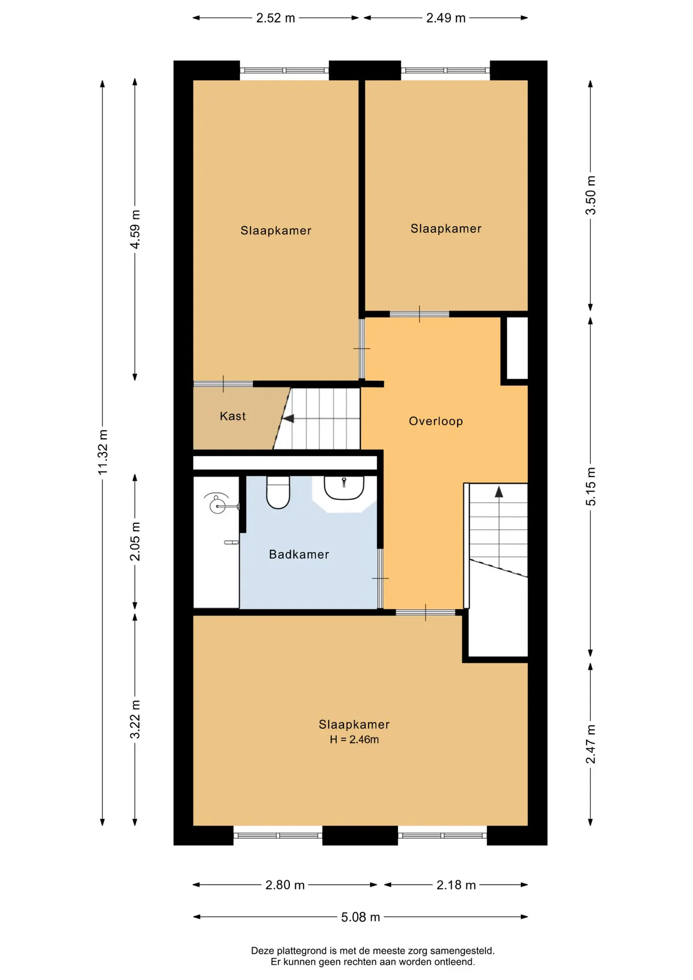 Slaapkamer I: 3,22 x 5,08m.