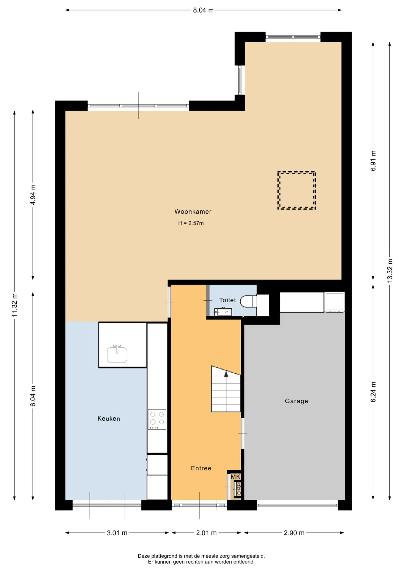 Keuken: 6,04 x 3,01m.