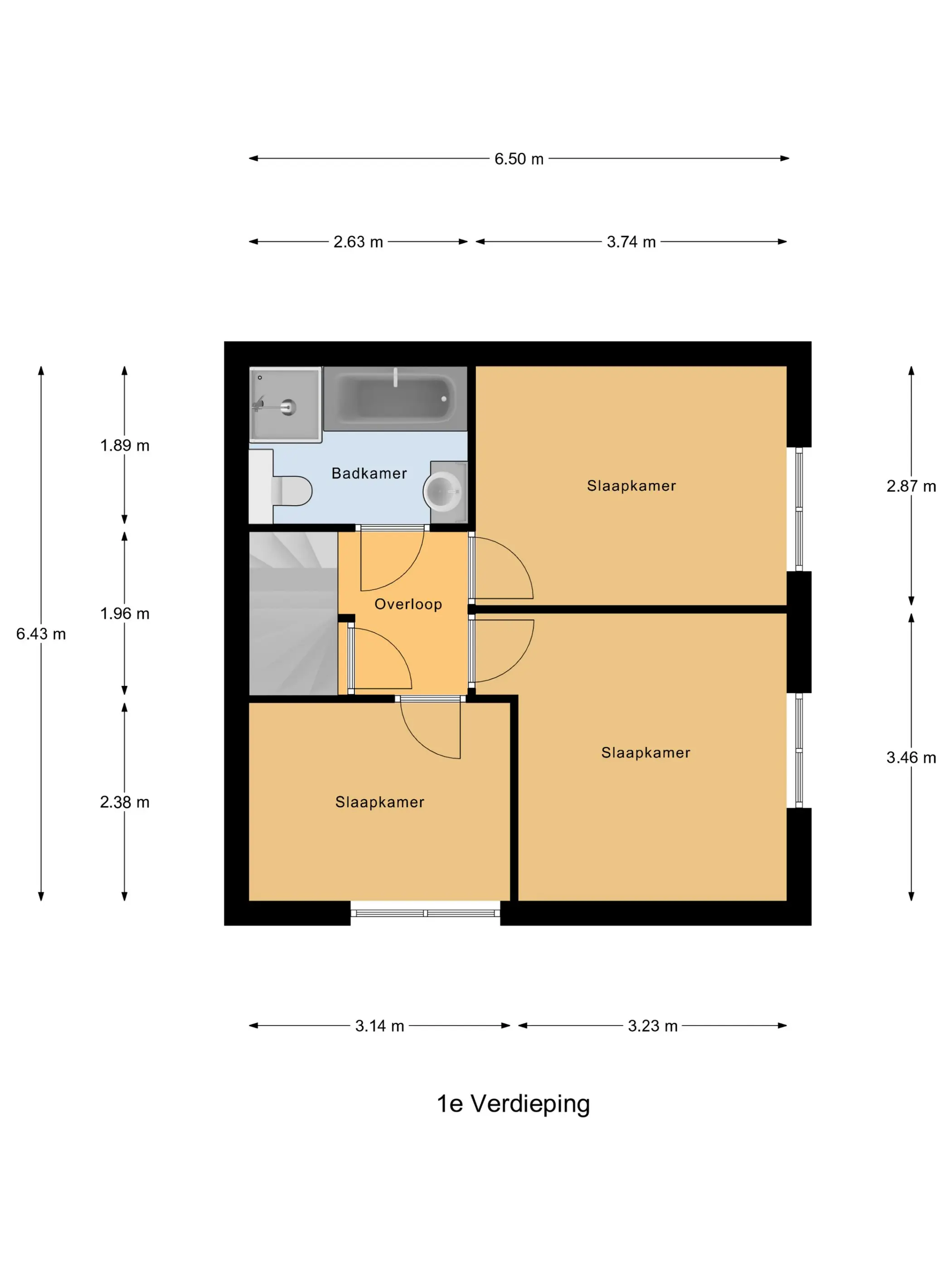 Slaapkamer 2 (1e verdieping) 3,74 x 2,87m