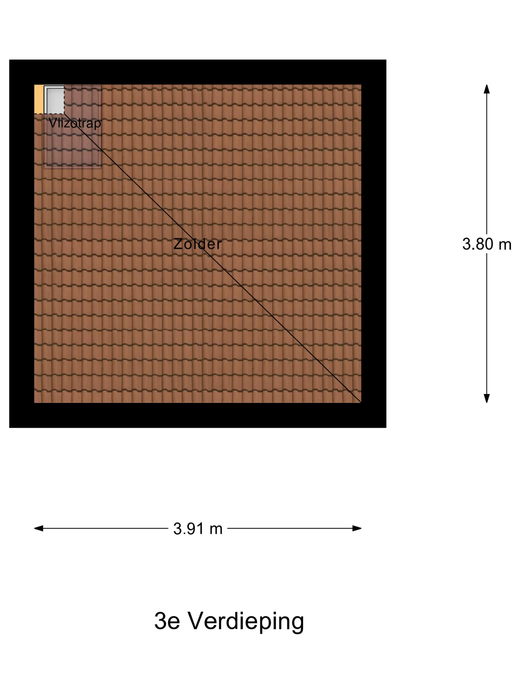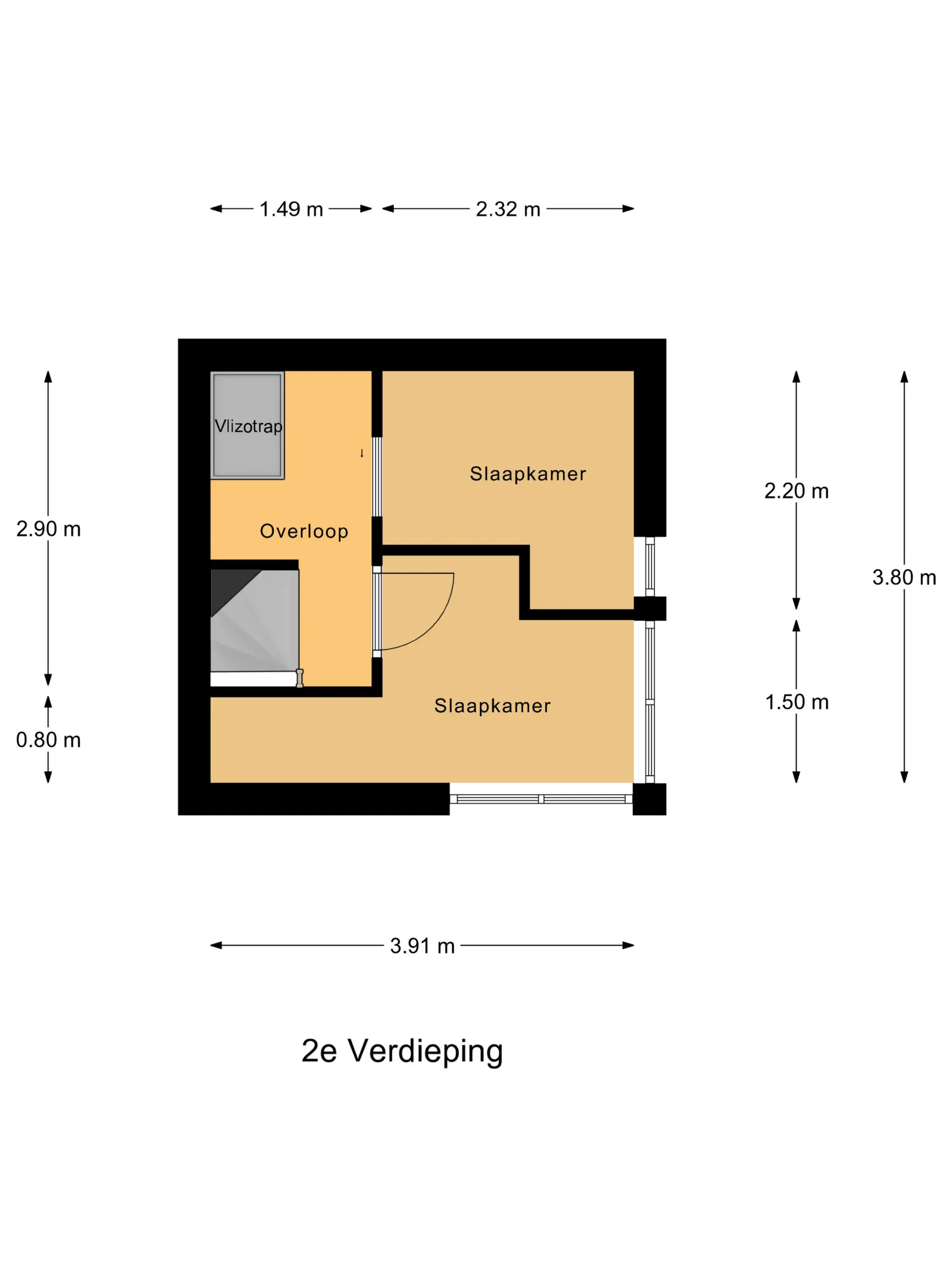 Slaapkamer 5 (zolder) 2,32 x 1,50 en 1,49 x 0,80