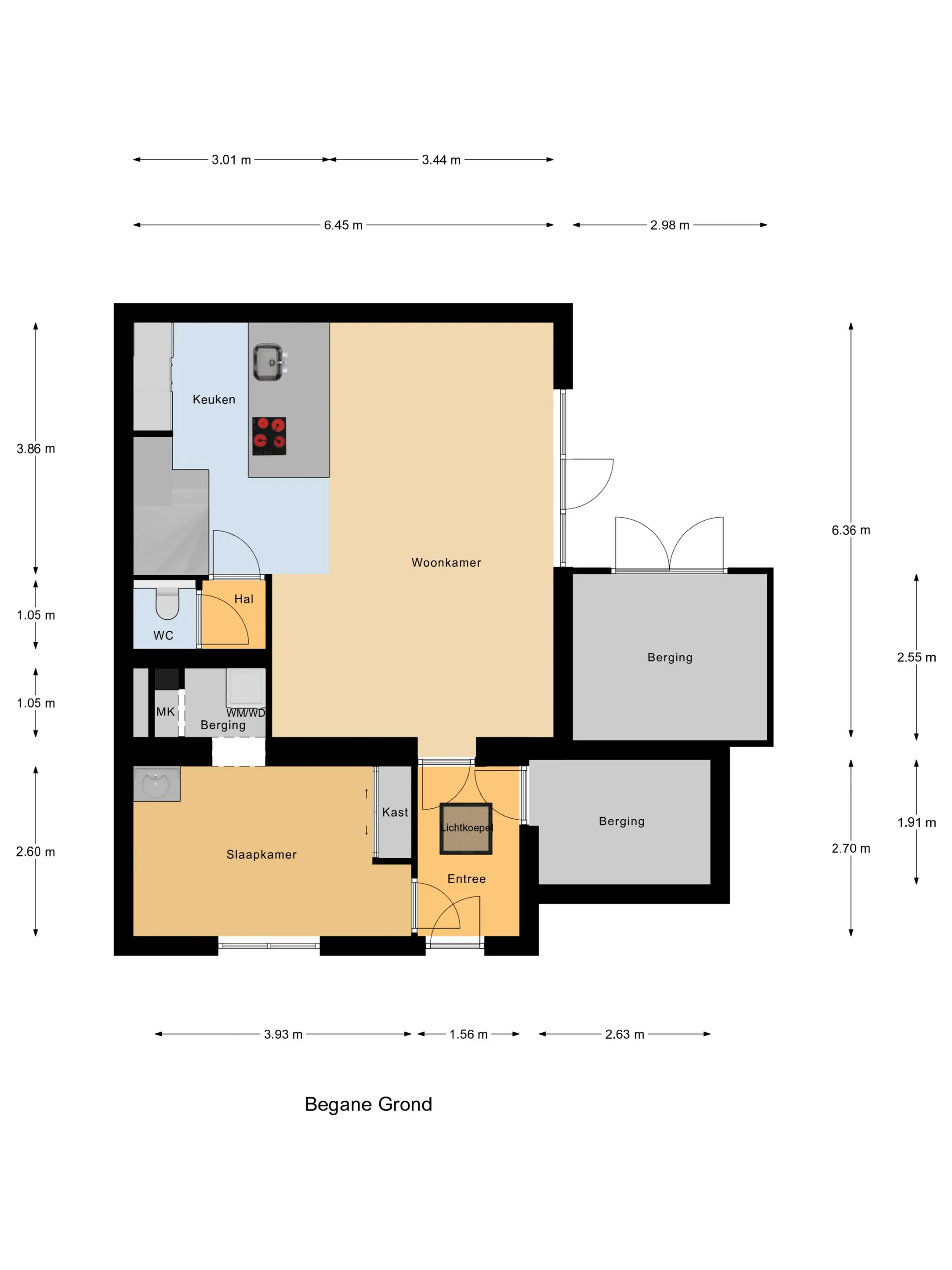 Woonkamer inclusief open keuken 6,45 x 6,36m