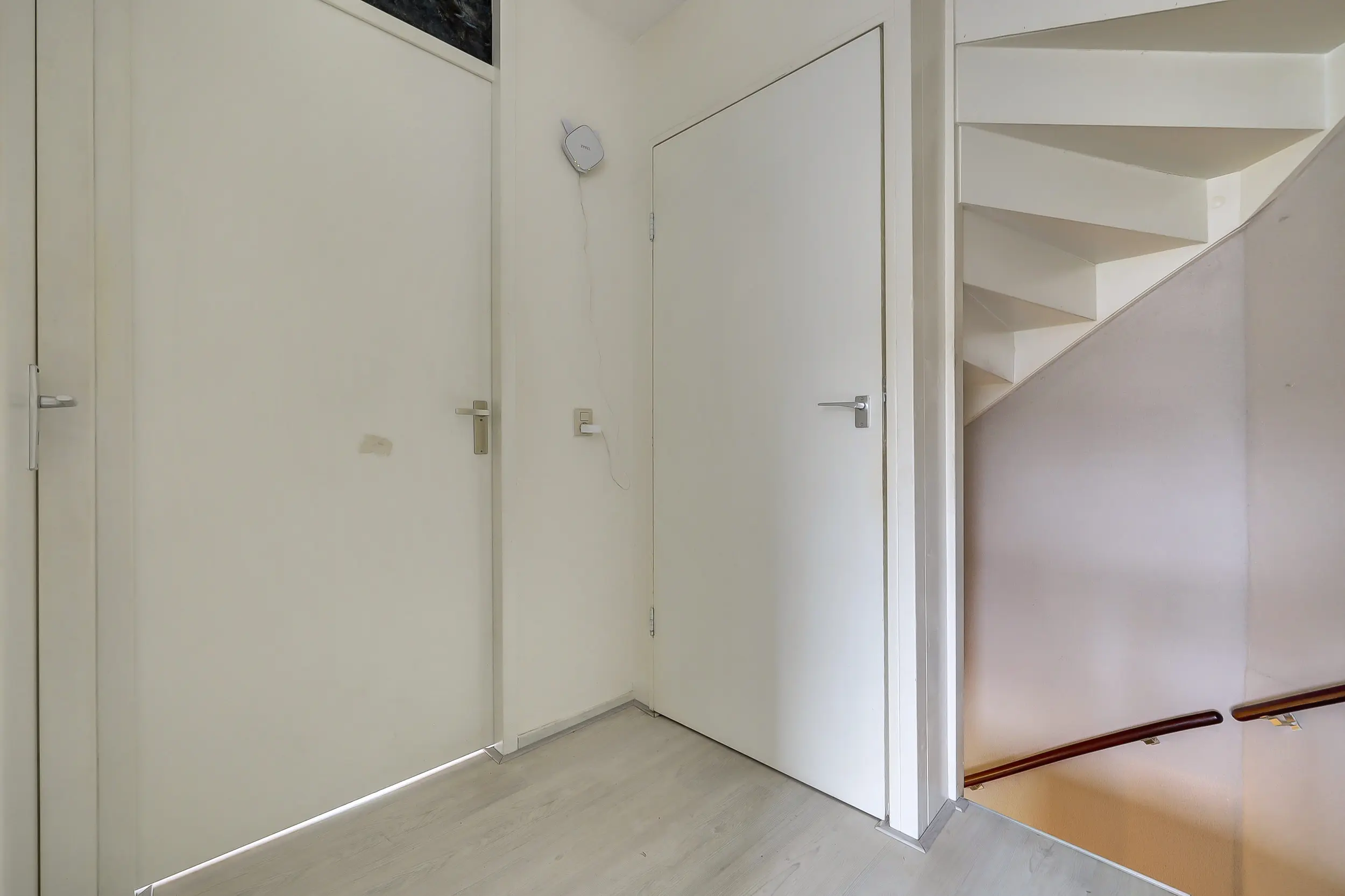 Overloop met laminaat welke over de gehele verdieping is gelegd. Hier zijn twee slaapkamers gecreëerd welke beide voorzien zijn van een plafond met spots. Deze twee slaapkamers worden verwarmd middels een losse airco unit. Overloop met kastruimte, hierachter bevindt zich tevens de opstelling van de cv ketel (Remeha 2009) en de mechanische ventilatie unit alsmede de inverter van de zonnepanelen (huur). Ook is de bergzolder middels een trappetje te bereiken welke reikt over de gehele oppervlakte.