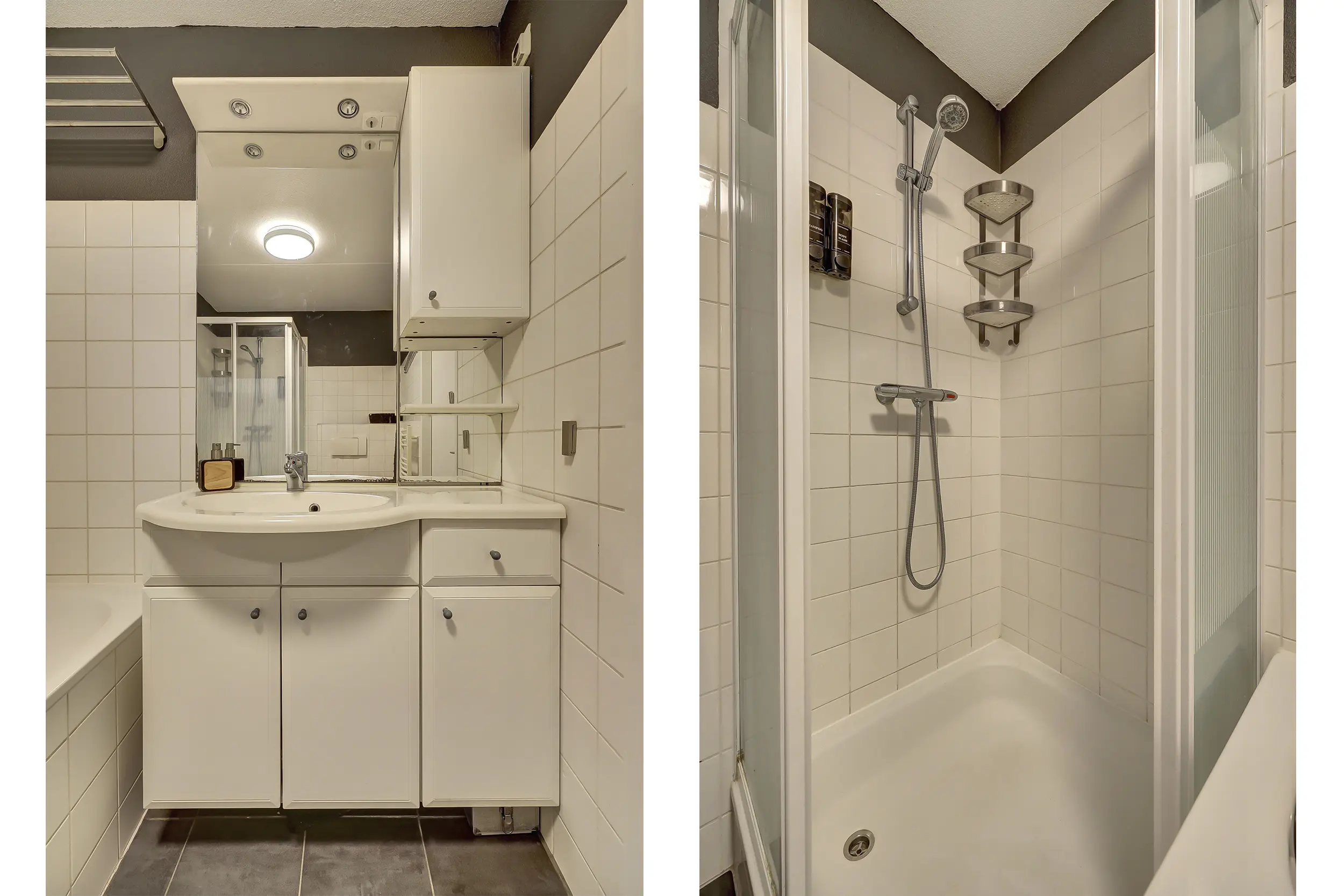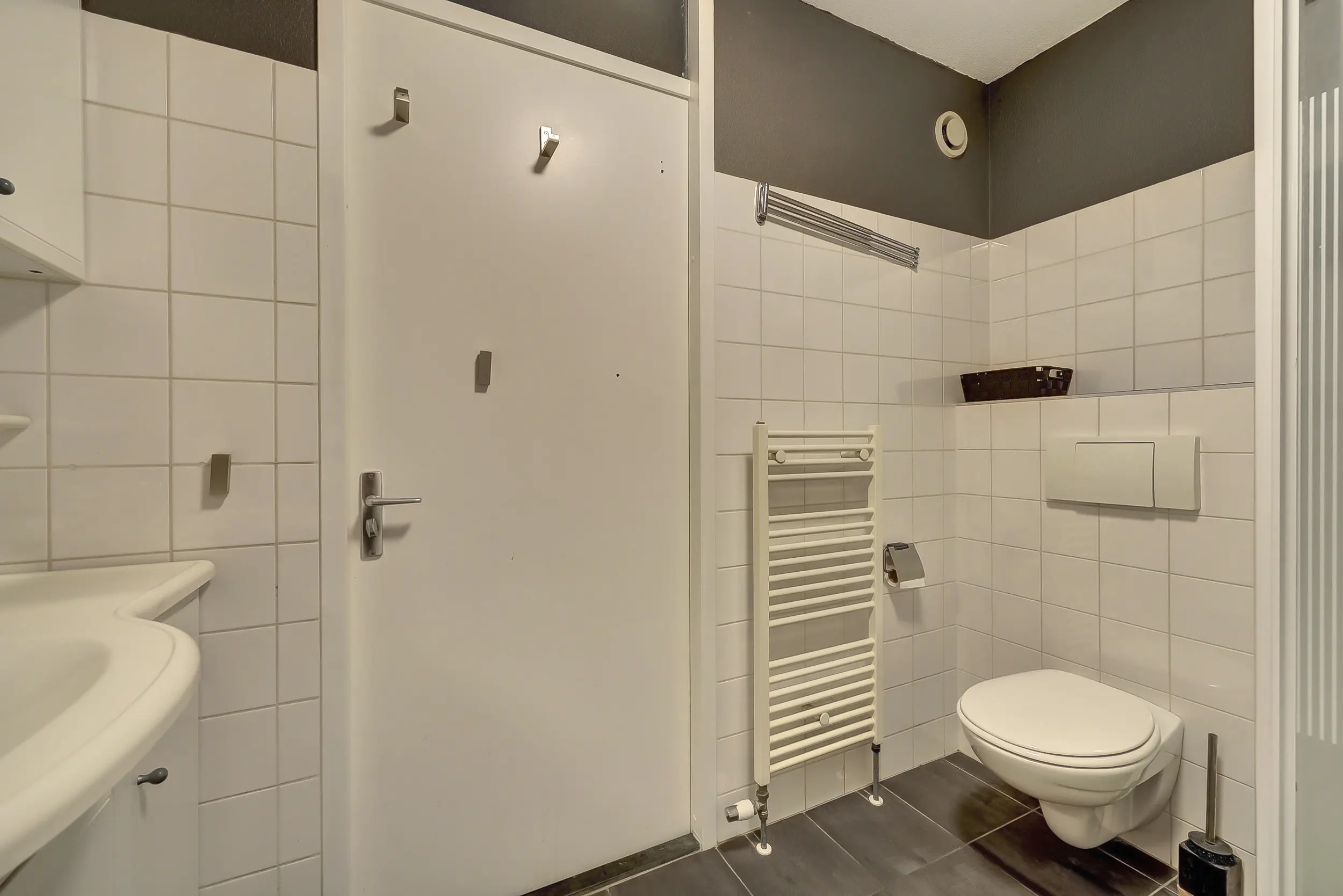 Ruime badkamer uitgevoerd met wastafelmeubel, ligbad, toilet, handdoekenradiator, mechanische afzuiging (centraal) en elektrische vloerverwarming.