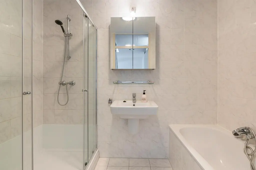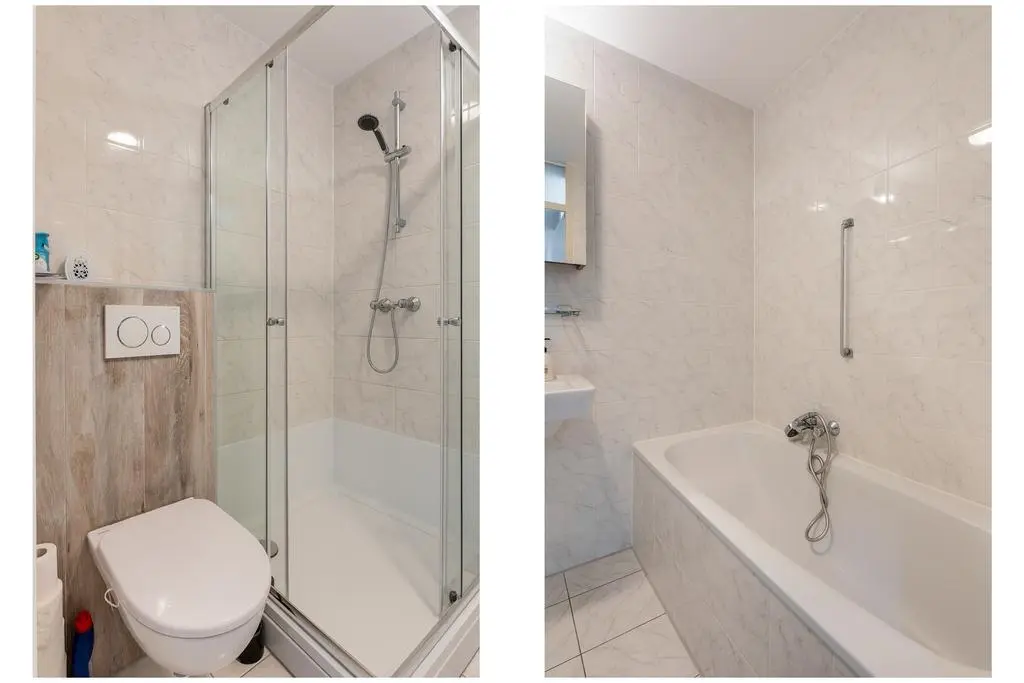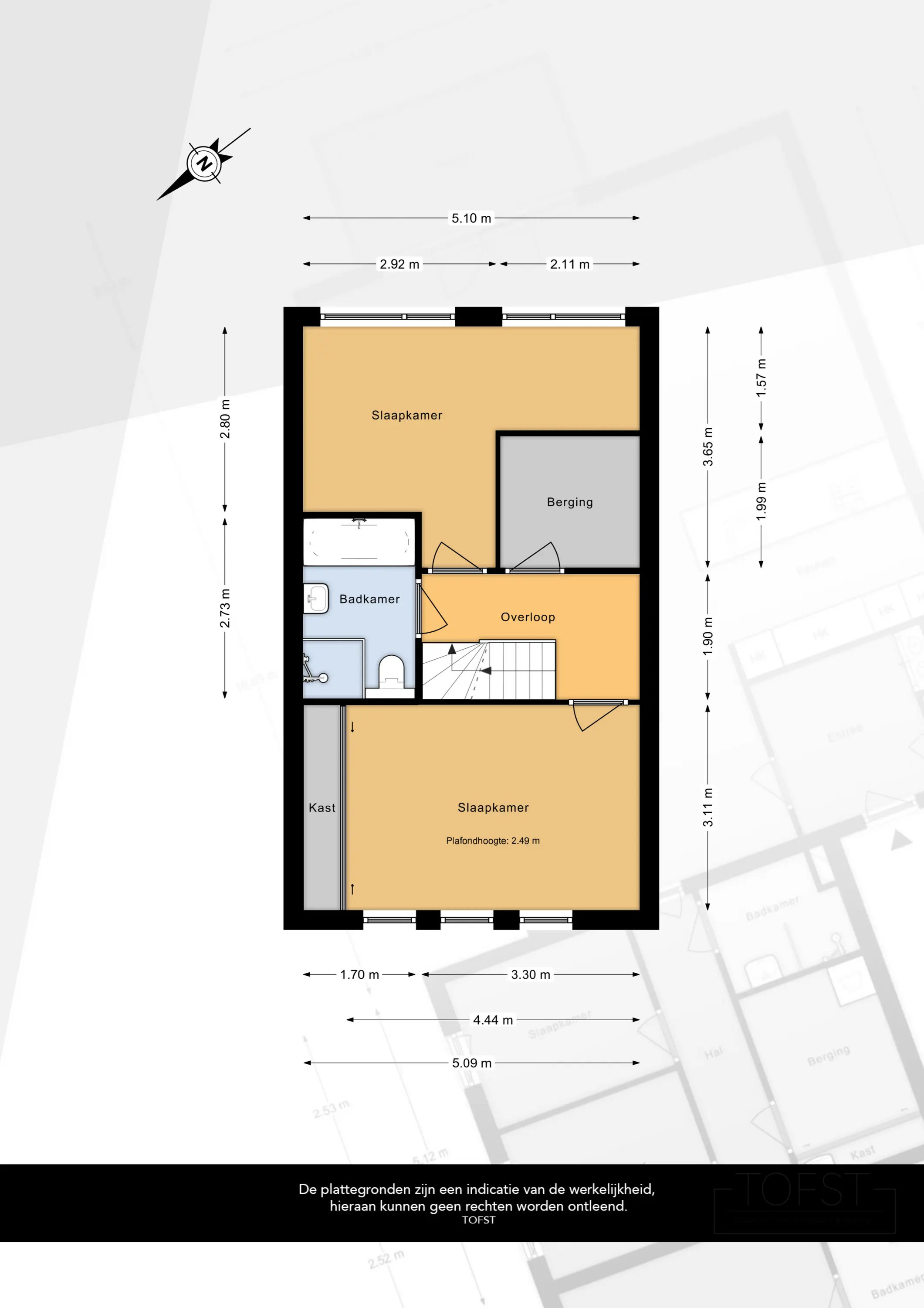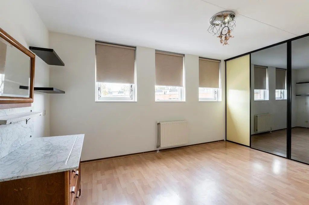 Op deze etage bevinden zich 2 slaapkamers beide met laminaatvloer waarvan de hoofdslaapkamer aan de voorzijde over de gehele breedte doorloopt met vaste schuifwandkast. De badkamer is uitgevoerd met ligbad, douche, 2e toilet en wastafel.