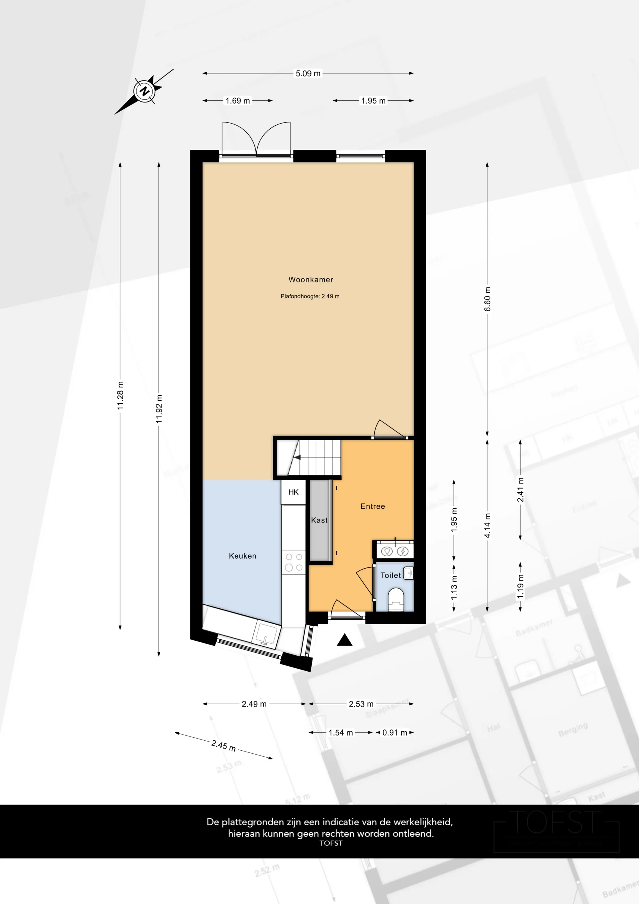 Entree, hal met laminaatvloer, meterkast, toiletruimte en trapopgang naar de 1e verdieping.