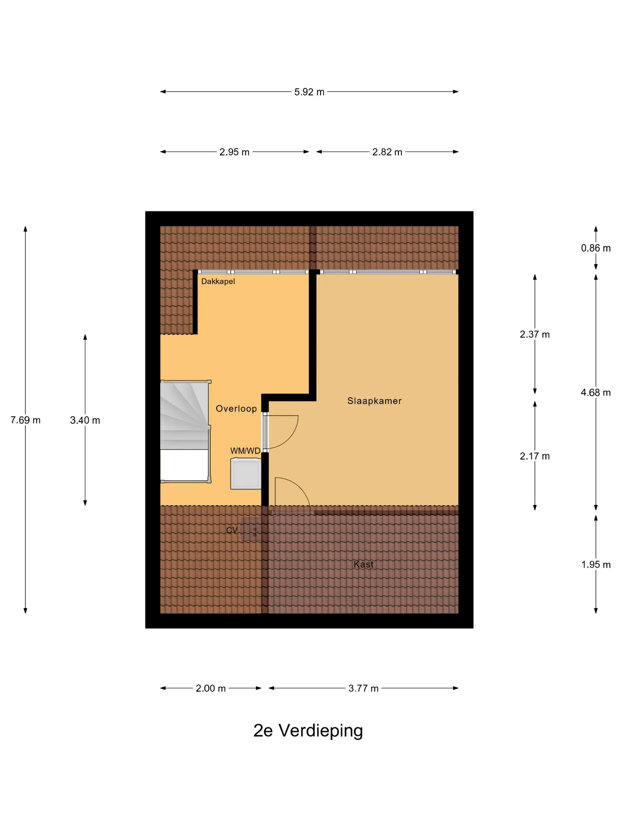 Zolder (slaap) kamer: 4,68 x 3,77/2,82m