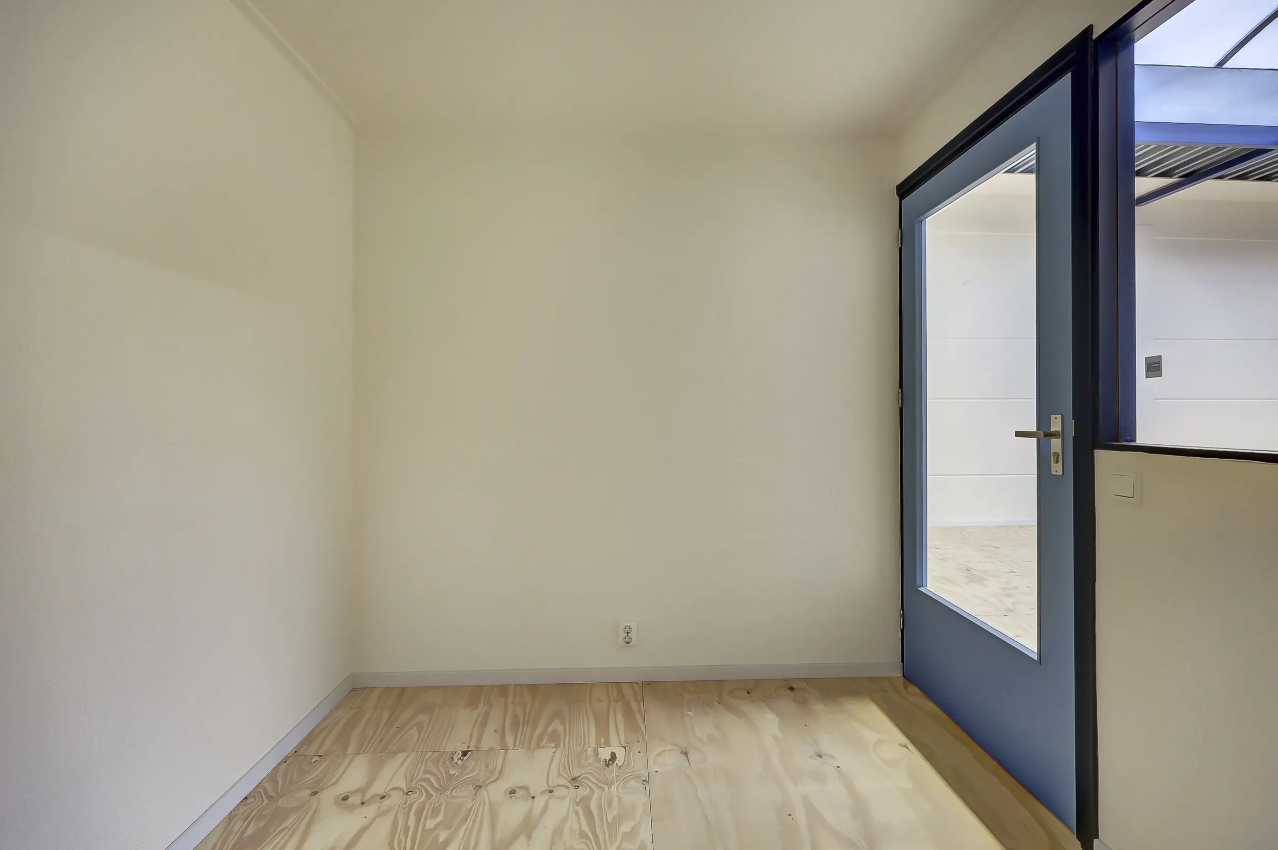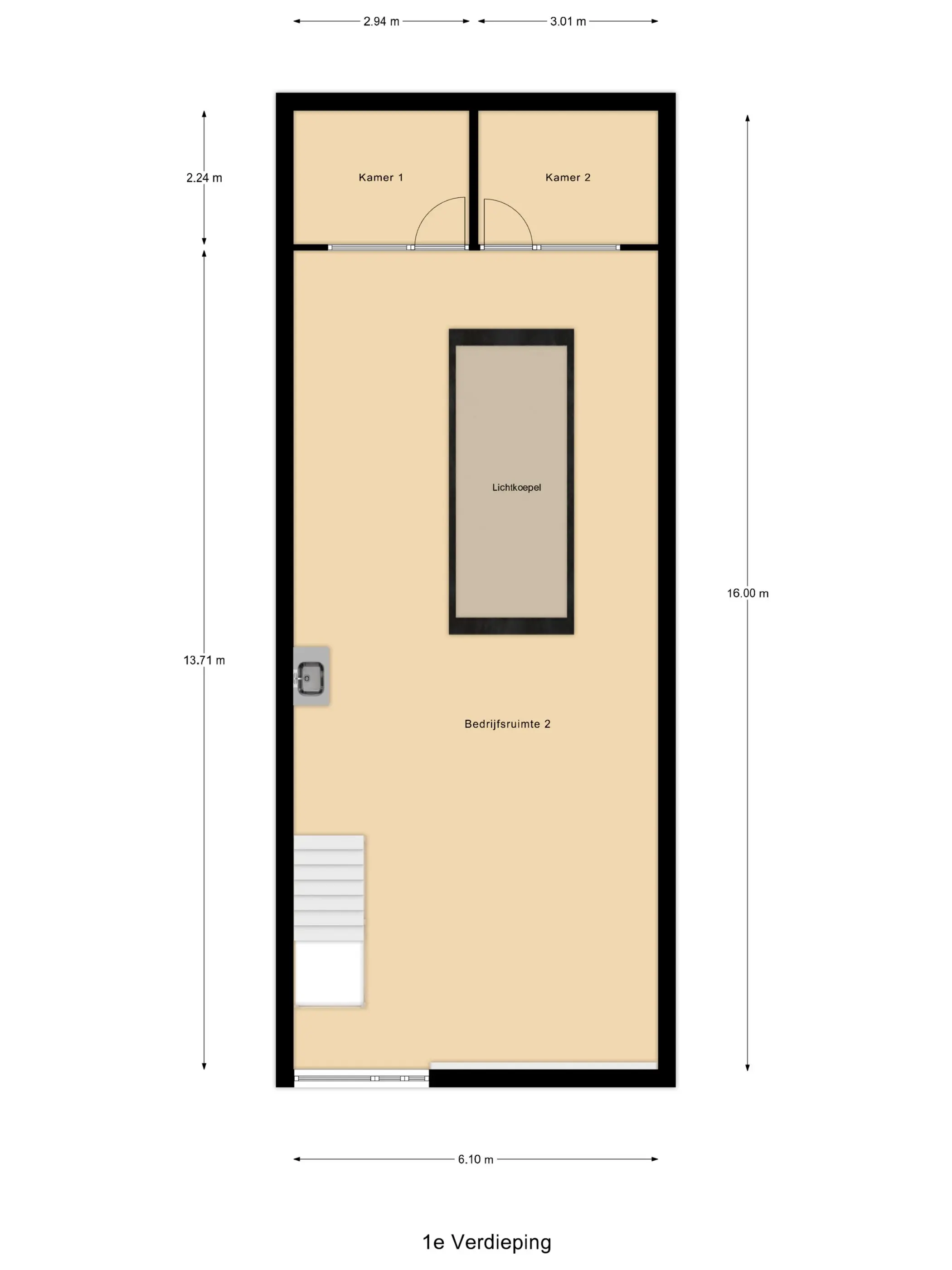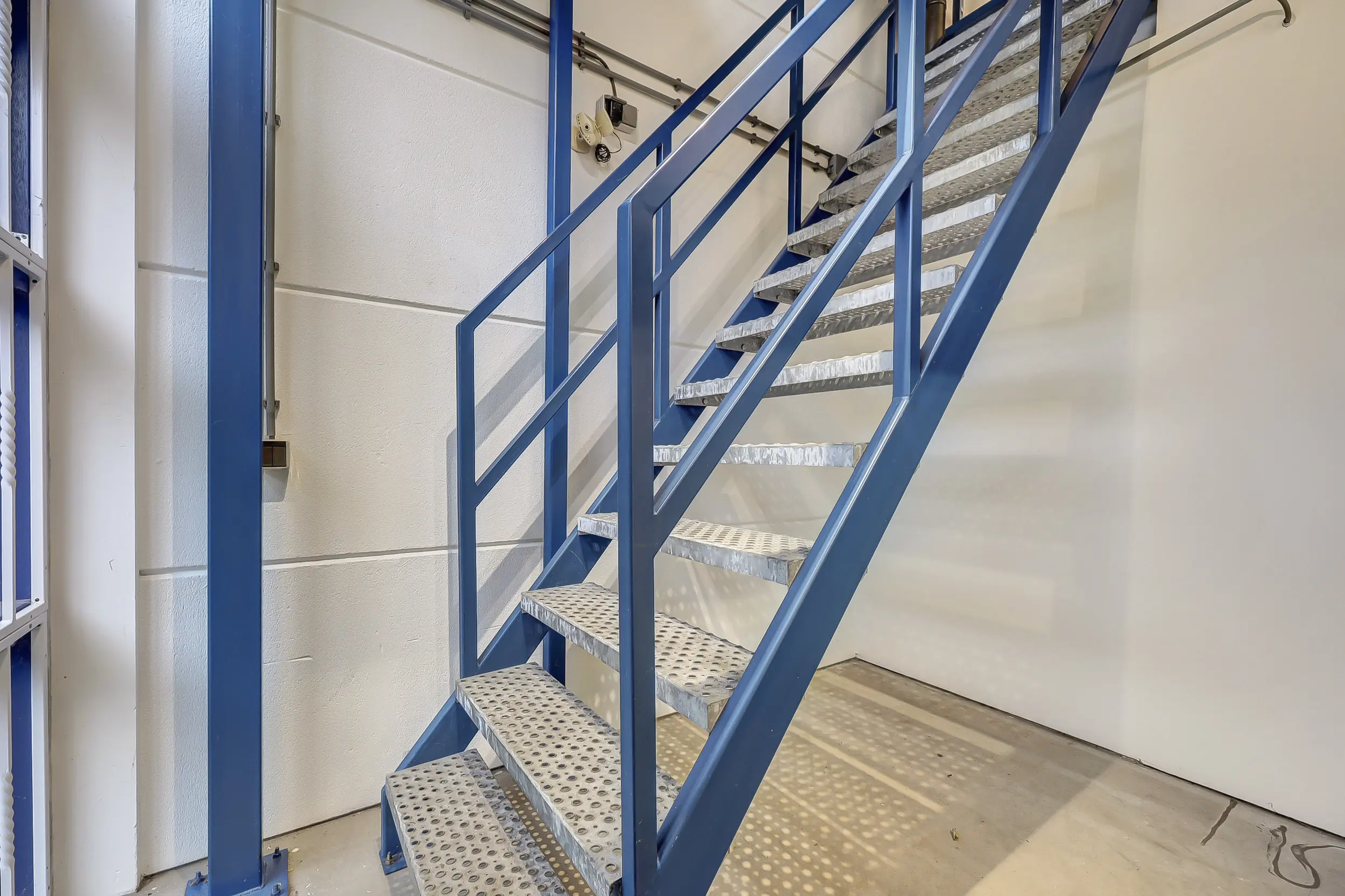 De 1e verdieping is een open ruimte voorzien van een hijsluik en elektrische lier alsmede voorzien van een grote lichtkoepel voor extra daglicht. Er is hier tevens een kitchenette geplaatst en verder zijn er twee separate (kantoor)ruimtes voorzien van elektra en data-aansluitingen.