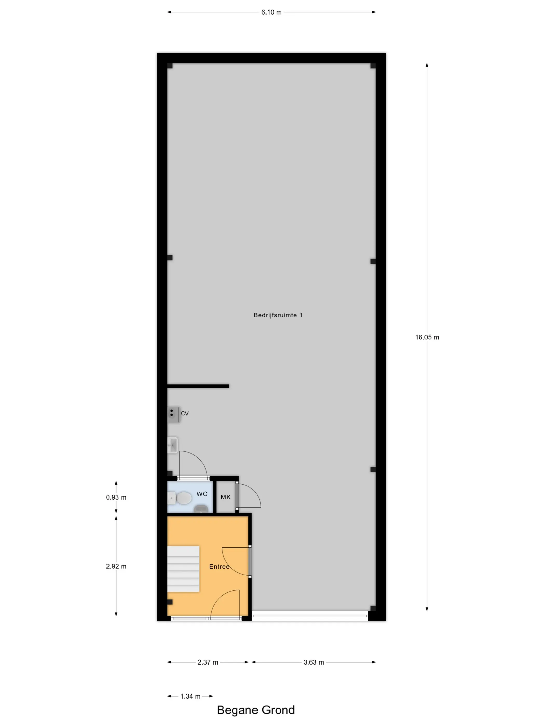 Deze bedrijfsruimte is voorzien van een toilet, uitstortgootsteen, meterkast en overheaddeur.