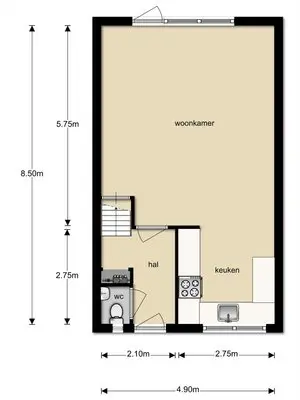Entree/hal met trapopgang naar 1e verdieping, toilet.