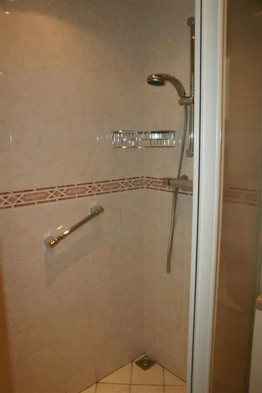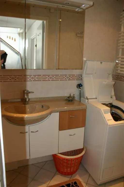 Overloopruimte. 3 slaapkamers. Badkamer met douche, wastafel met meubel en wasmachine opstelling.