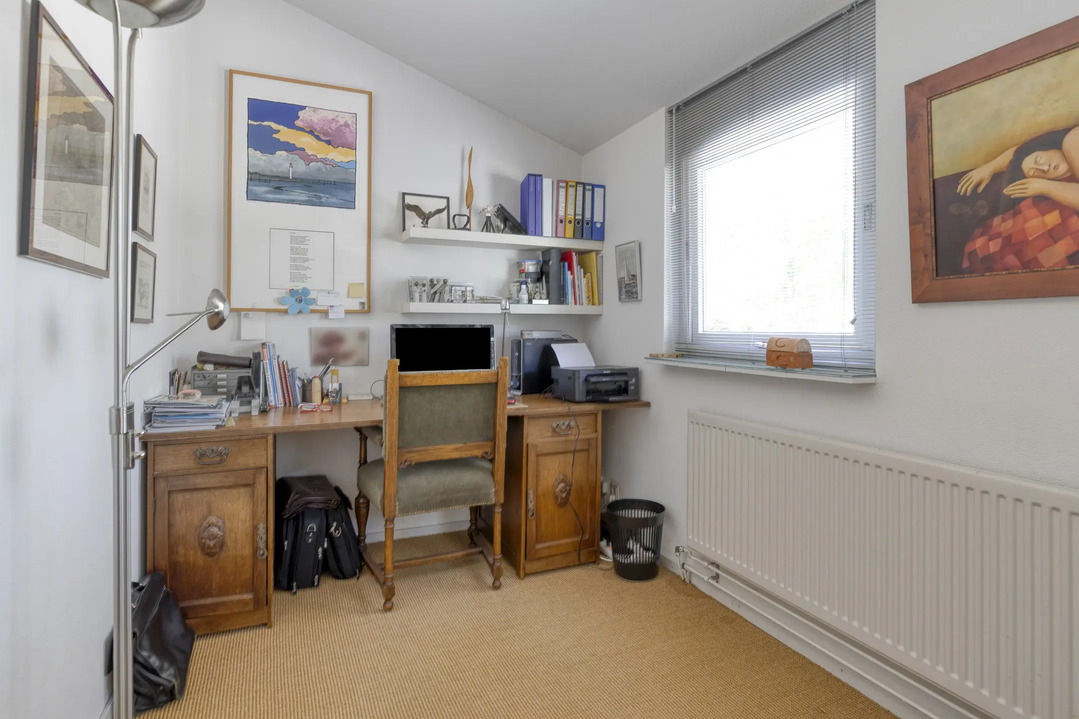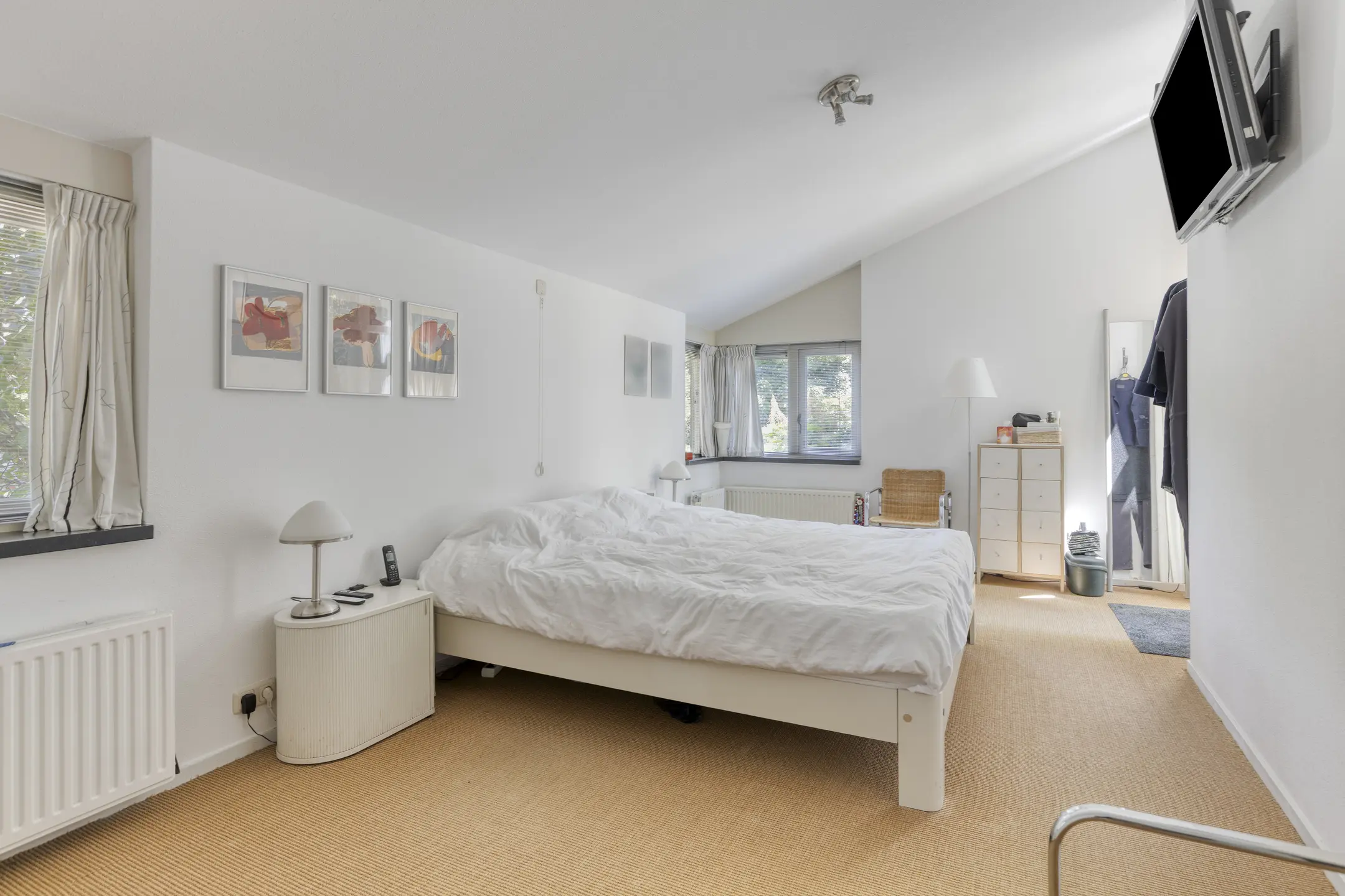 De open vide/overloop op de verdieping geeft toegang tot meerdere kamers. Aan de voorzijde bevindt zich een ruime slaap-/werkkamer met radiator. De overige slaapkamers zijn voorzien van parketvloeren (waarvan twee met beuken parket) en beschikken over vaste kasten, een kopgevelraam en een prettige lichtinval.