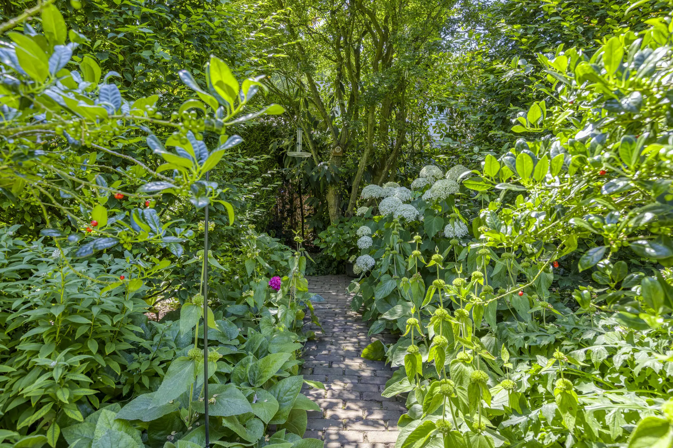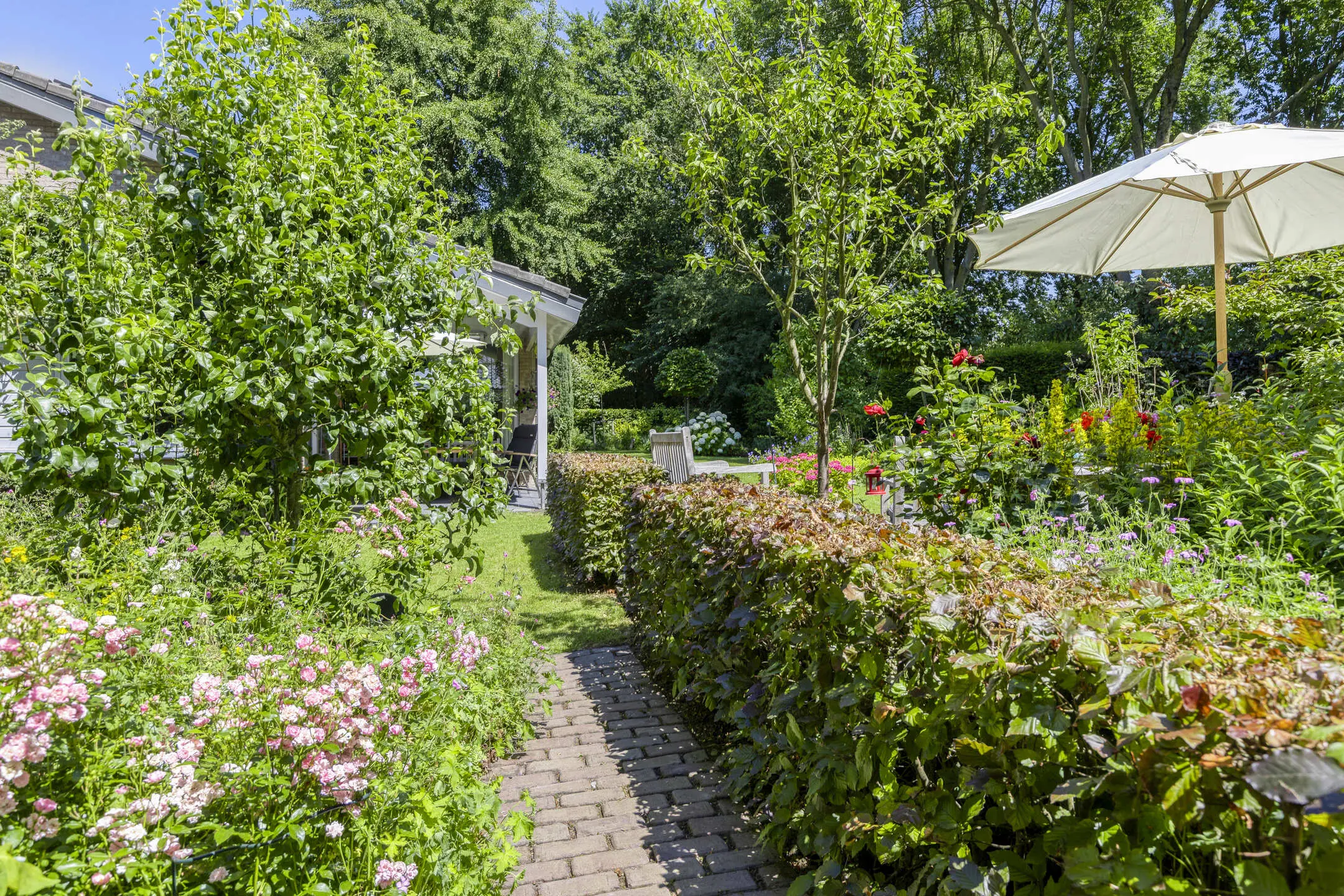 De fraai aangelegde tuin biedt volop privacy en zon, mede dankzij de ligging op het zuiden. De tuin beschikt over diverse zitplekken, een overkapping, een tuinberging en een eigen oprit met carport. Via de buitenzijde van de woning is een separate kelder/bewaarplaats bereikbaar – ideaal voor wijnopslag, provisie of extra bergruimte.