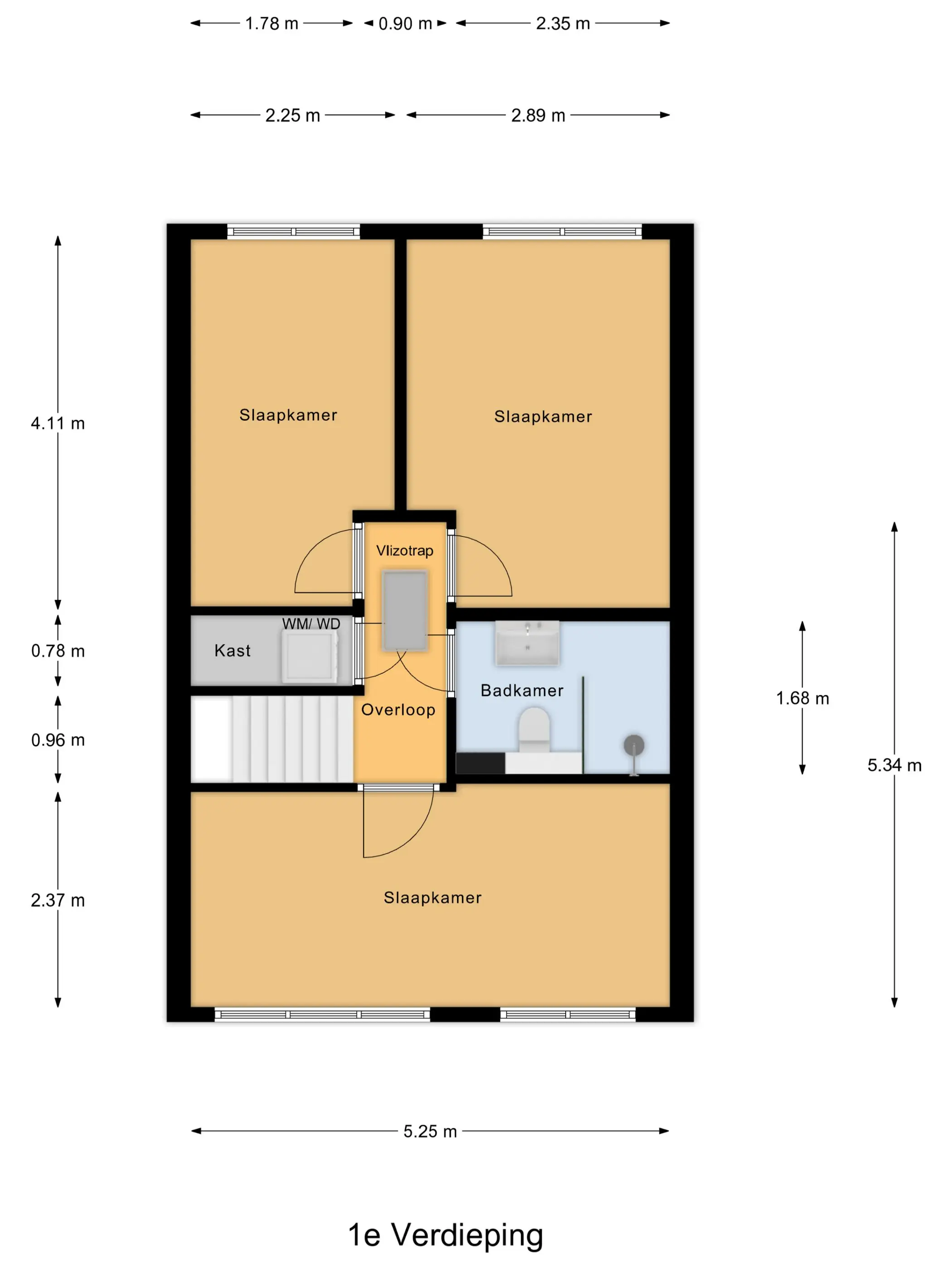 Slaapkamer: 5,25 x 2,37m