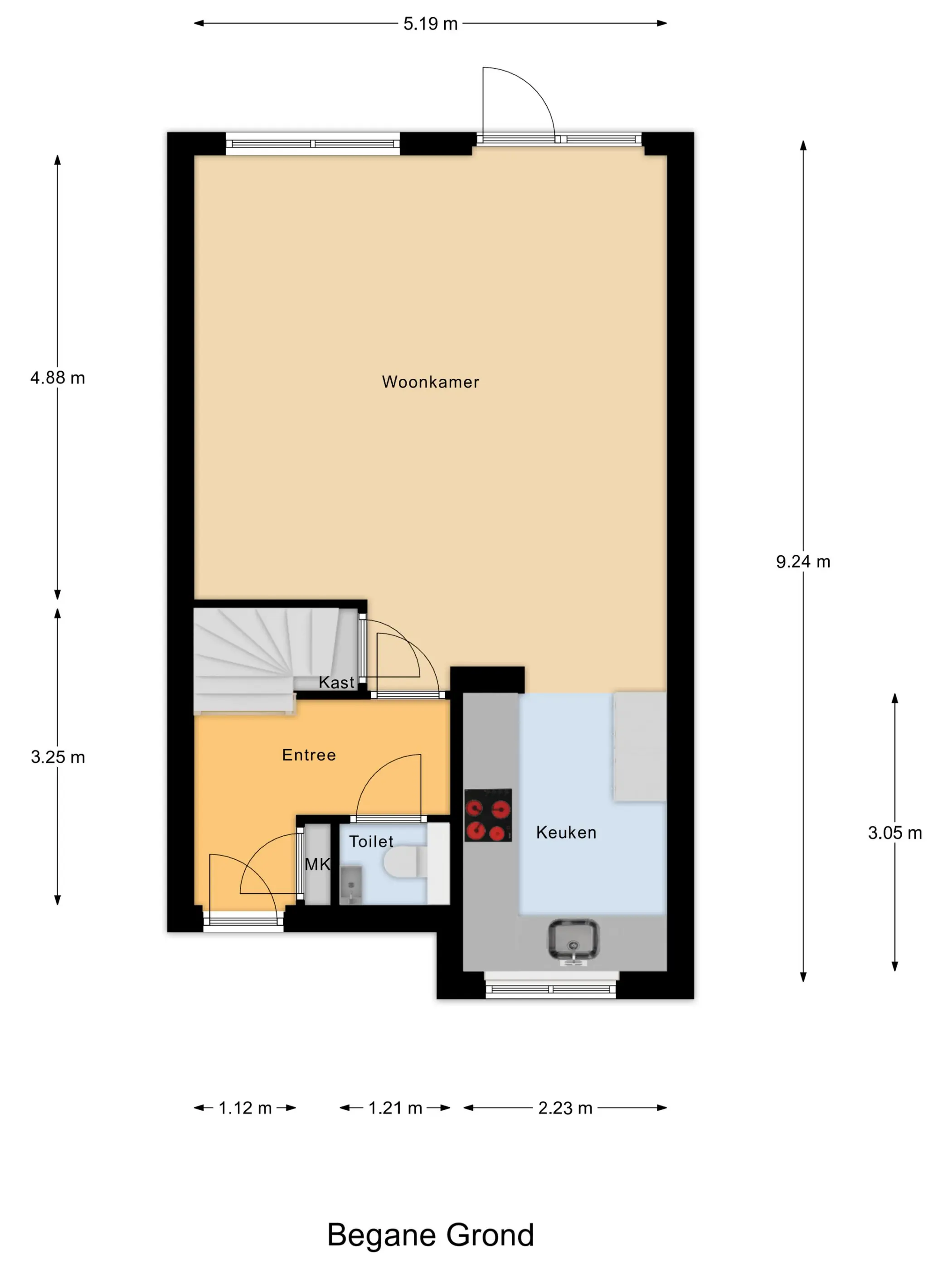 keuken: 3,05 x 2,23m