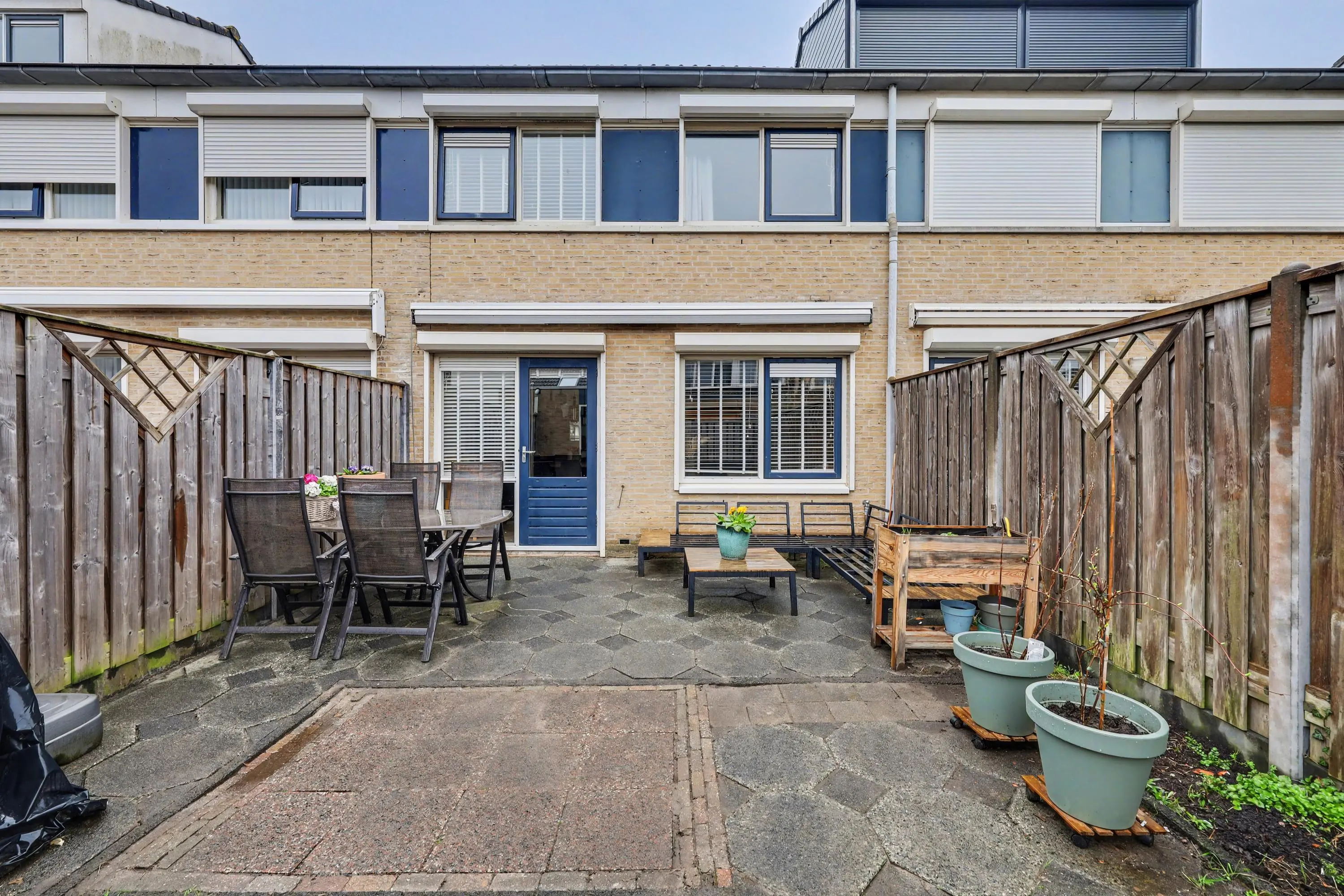 Onderhoudsvriendelijke tuin gelegen op het zuidoosten, voorzien van bestrating, schuttingdelen (hout met betonnen palen)en achterom. Vrijstaande stenen berging met elektra. De achtergevel beschikt over een knikarm zonnescherm en rolluiken.