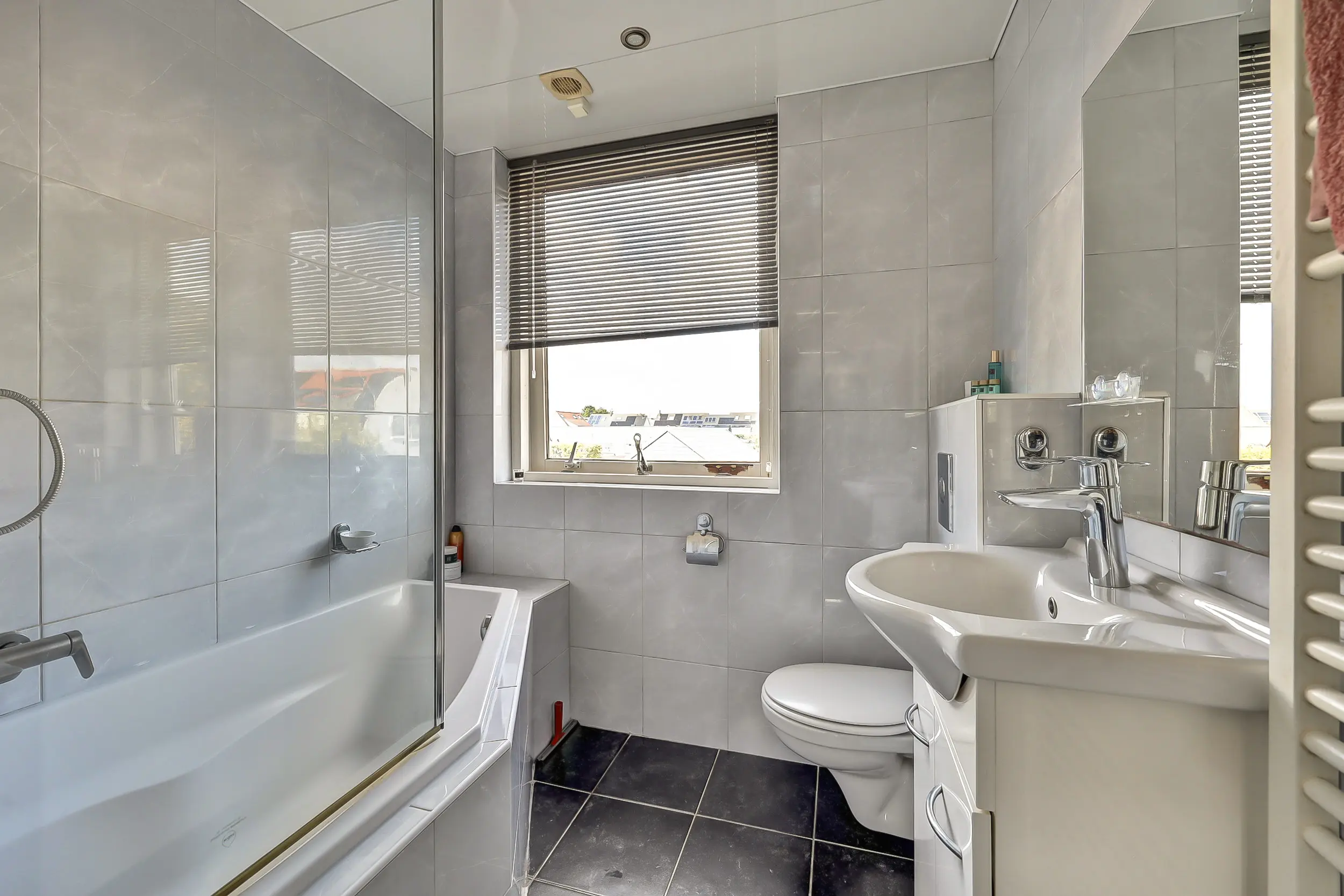 Overloop, badkamer aan de voorzijde met ligbad voorzien van regen en handdouche, 2e toilet en wastafelmeubel, verder een handdoek radiator en een mechanische afzuigunit. Slaapkamer aan de voorzijde met laminaatvloer, rolluiken en airconditioning. Twee slaapkamers aan de achterzijde waarvan één nu in gebruik is als inloopkast, de andere slaapkamer heeft een airconditioning en rolluik.