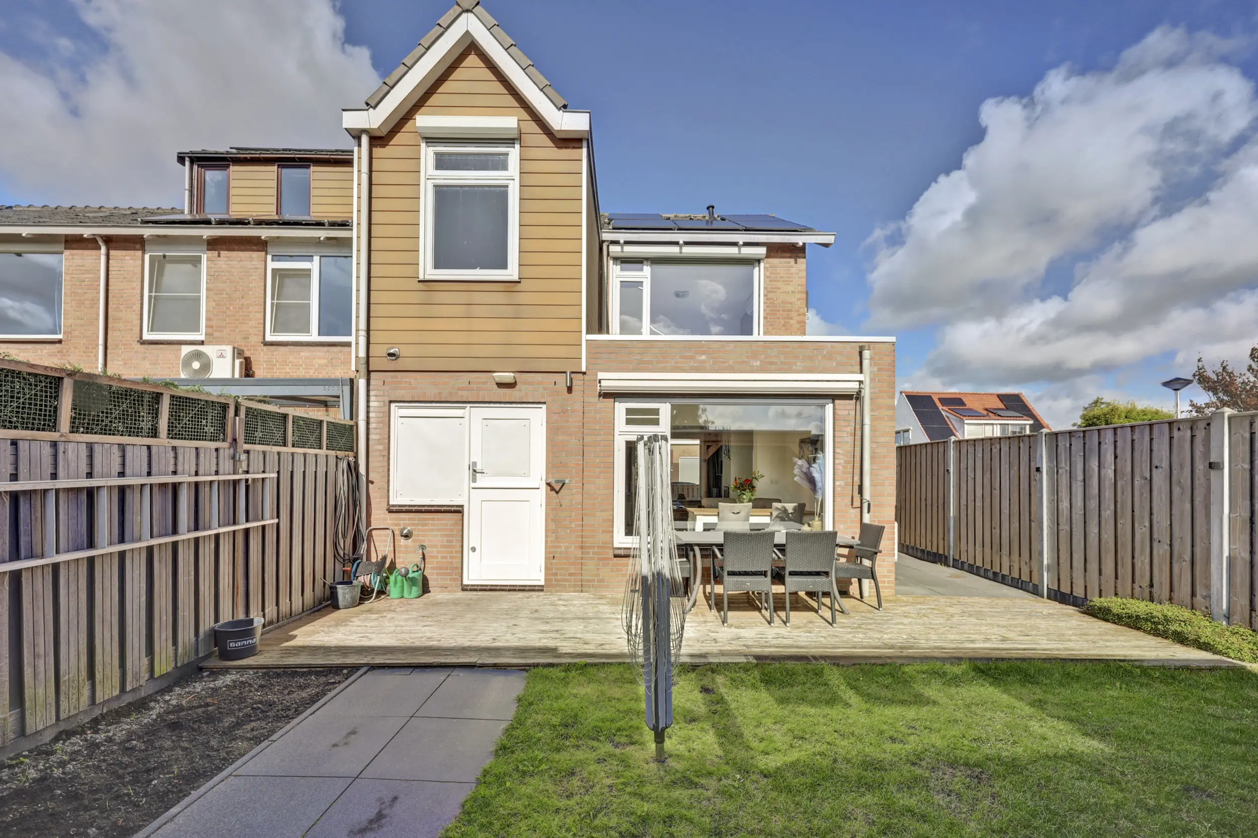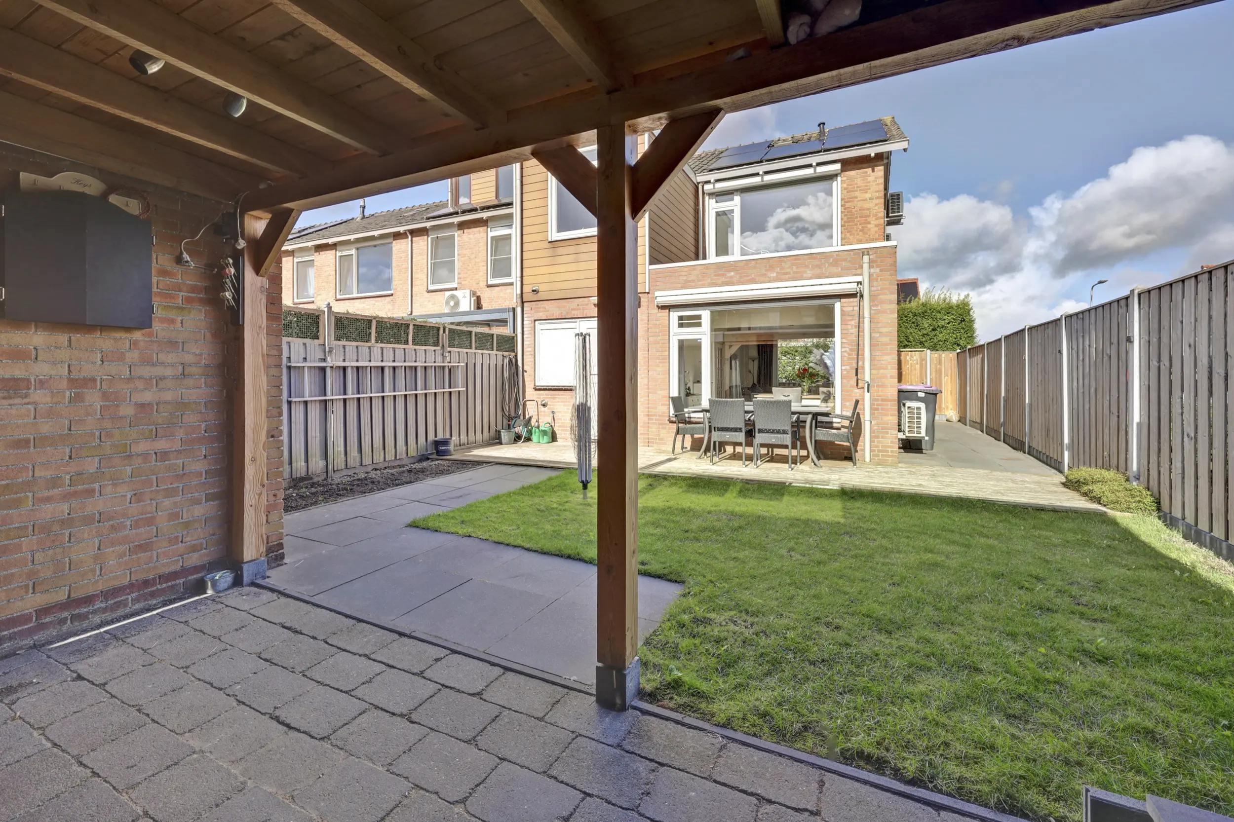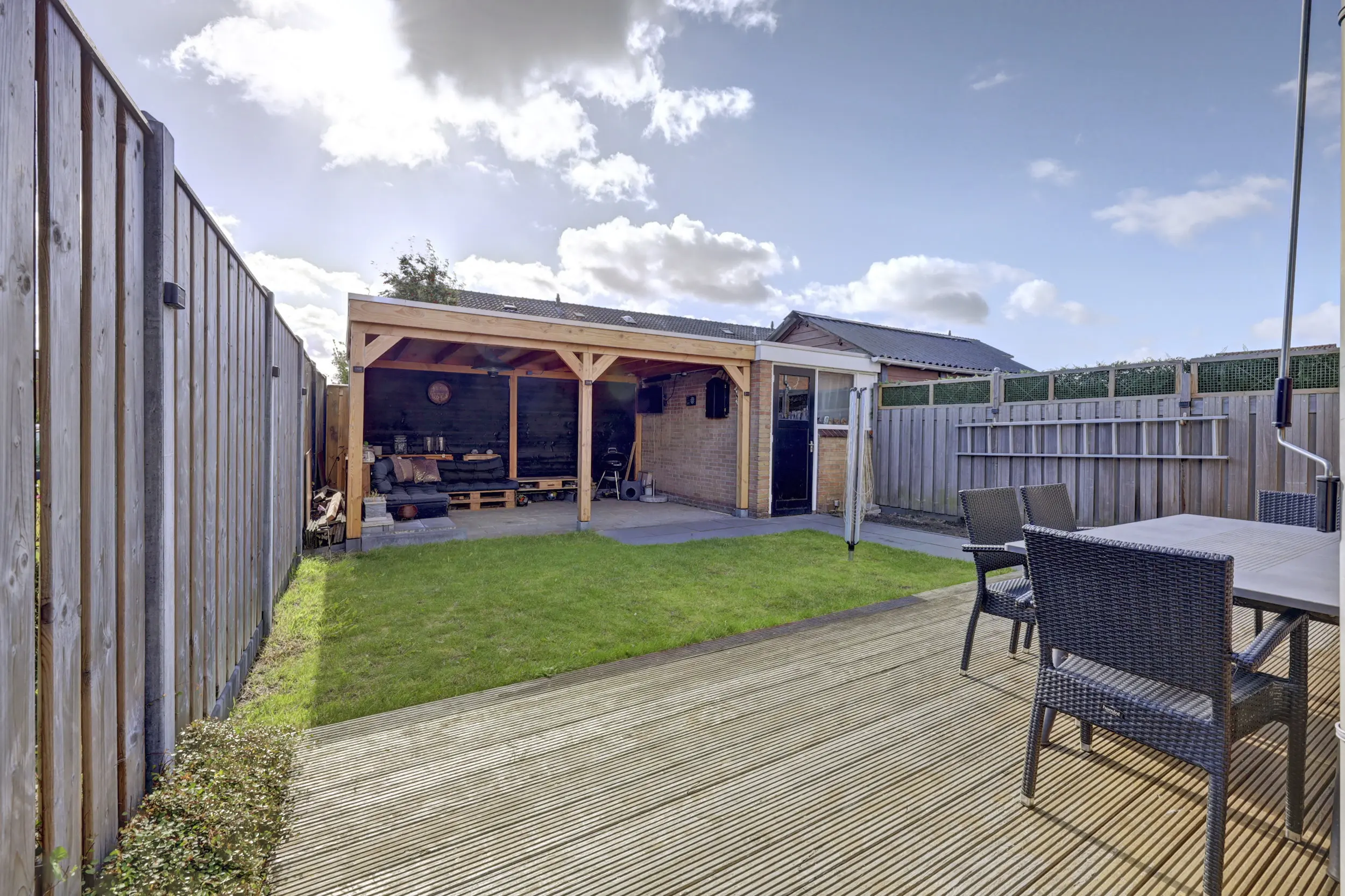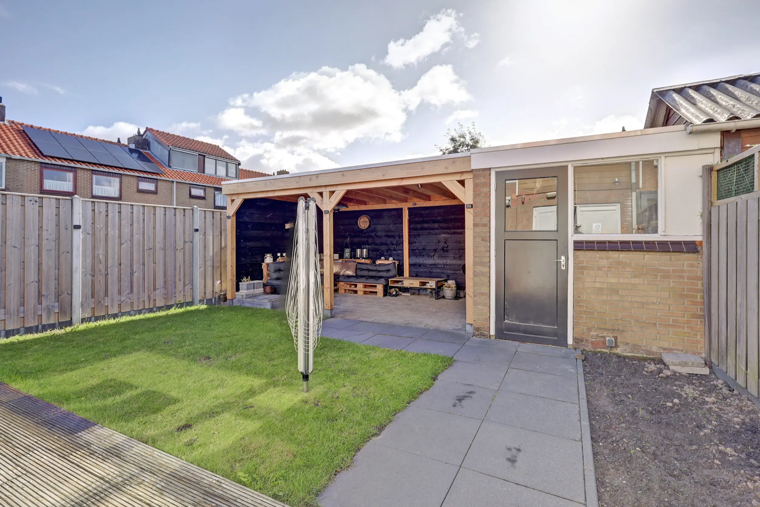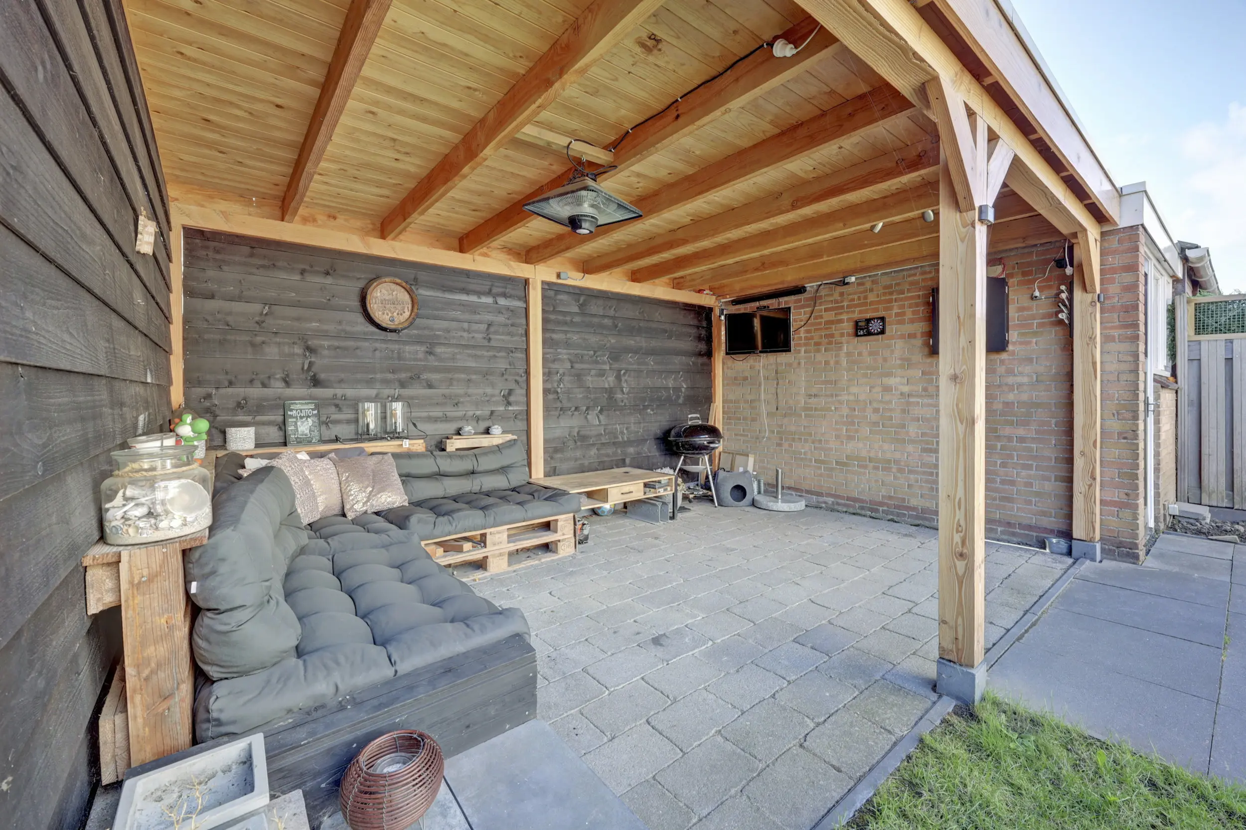 De gehele tuin is ongeveer 3 jaar geleden volledig nieuw bestraat en voorzien van nieuwe schuttingen. Aan de achterzijde beschikt men over een waterkraan, vlonder terras, handmatig bedienbaar zonnescherm, gras en een heerlijke grote overkapping van maar liefst 4,89 x 3,34 m voorzien van elektra, verlichting. Naast de overkapping is de vrijstaande stenen schuur gesitueerd voorzien van elektra en verlichting.