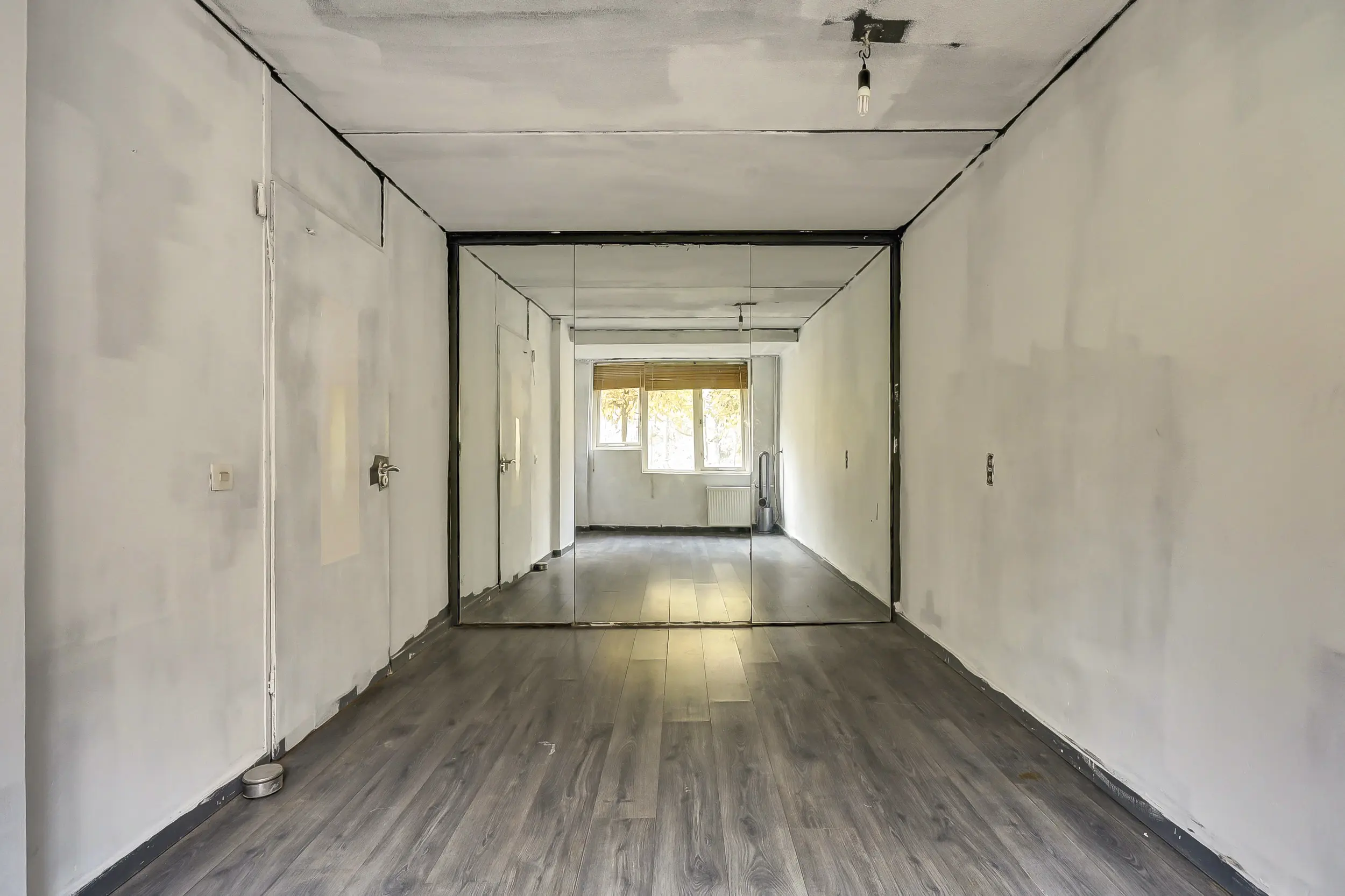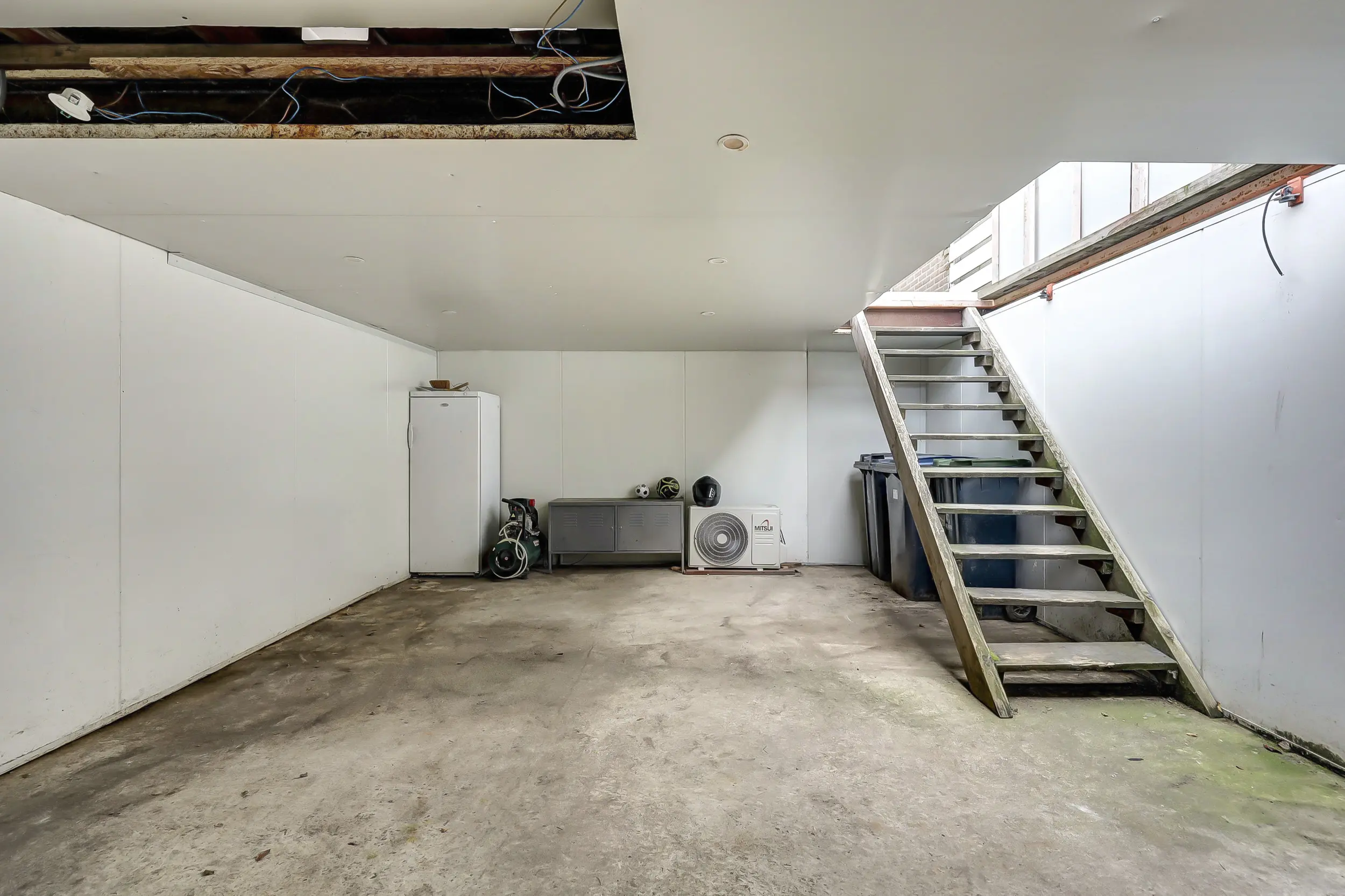 Entree/hal met de meterkast en het toilet. Slaap-/werkkamer en toegang naar de grote kelder/inpandige berging.