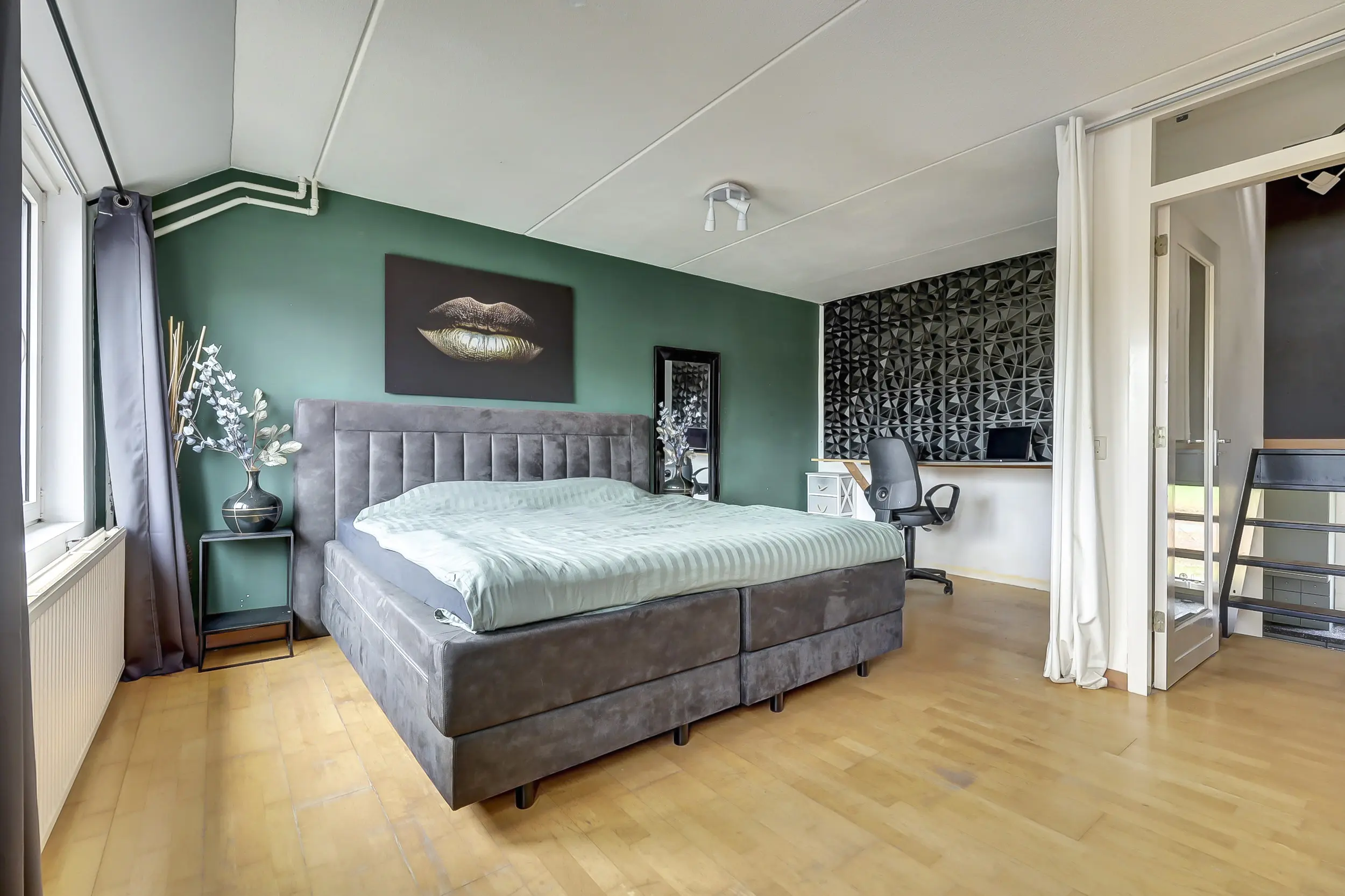 Aangekomen op de slaapverdieping heeft men beschikking over twee slaapkamers (waarvan één met een balkon) en een ruime badkamer. De badkamer is voorzien van een inloopdouche, wastafelmeubel, ligbad en een handdoekradiator.