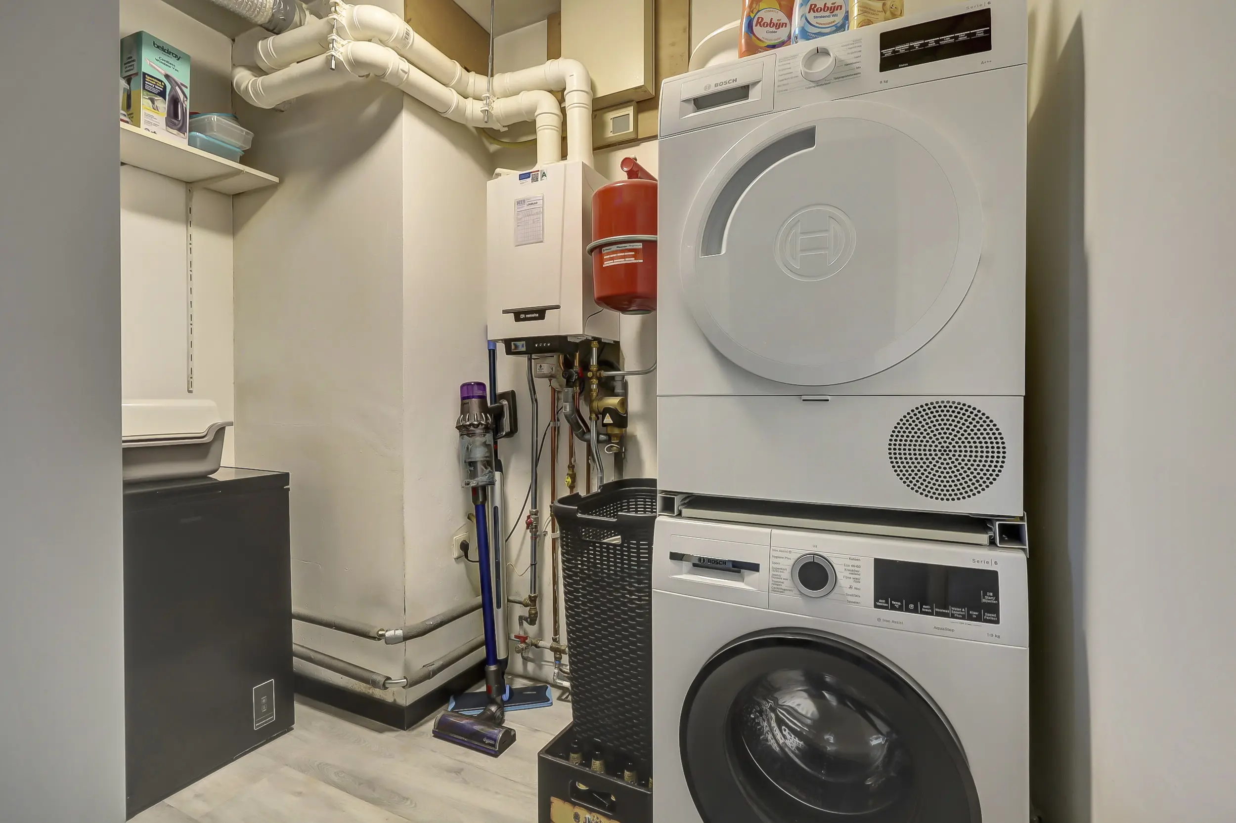 Vanuit de keuken toegang tot de berging waar tevens de wasmachine-en droger aansluiting, de opstelling van de cv ketel en de ventilatie eenheid staat opgesteld. Vanuit de hal toegang naar de twee slaapkamers waarvan de hoofdslaapkamer toegang heeft tot de badkamer en beide toegang hebben tot het balkon.