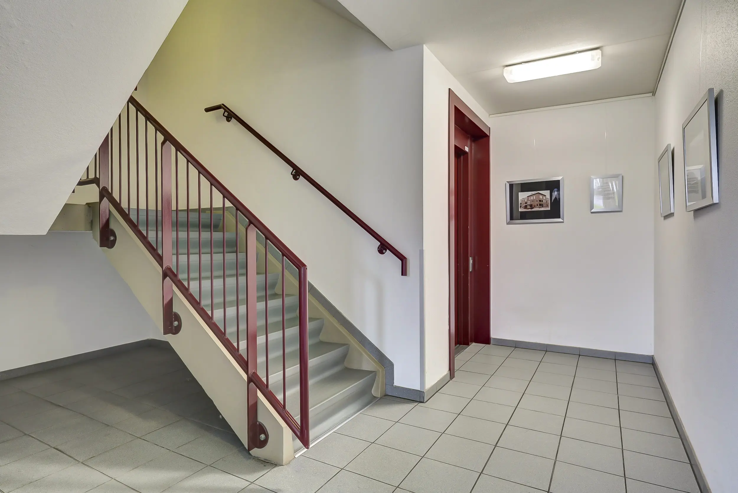 Gemeenschappelijke entree, de brievenbussen, de liftingang en de toegang tot de bergingen en het trappenhuis.