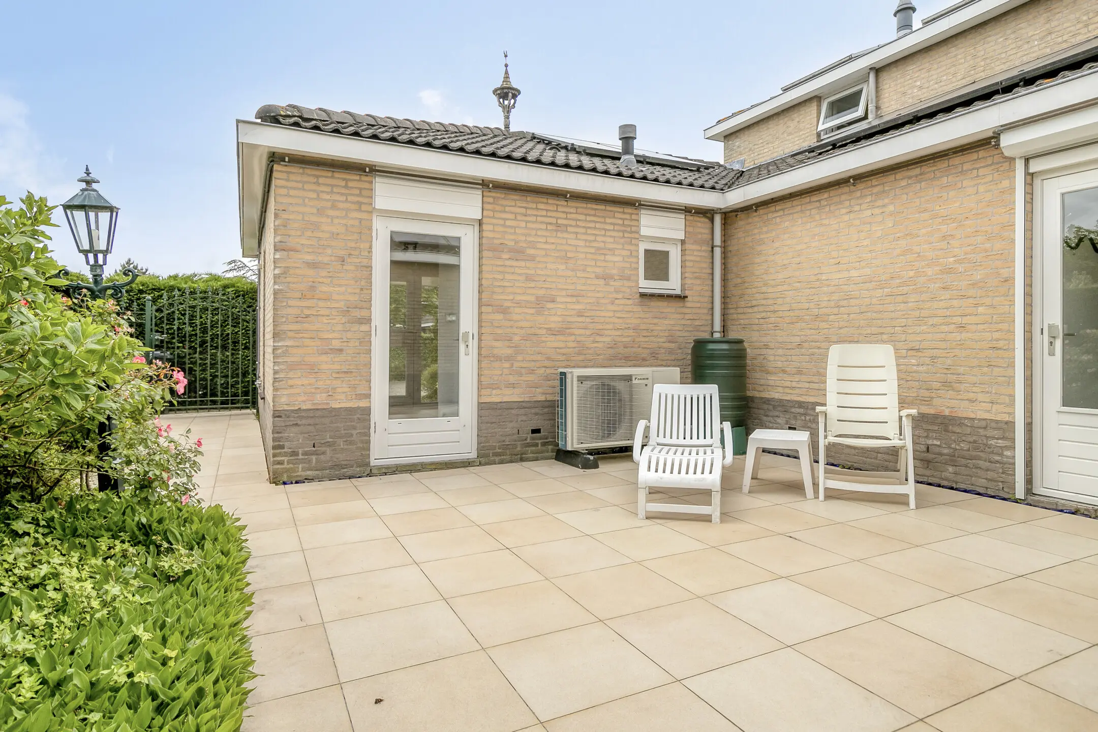 Aan de achterzijde van de woning bevindt zich een ruime inpandige berging met vlizotrap naar een bergzolder. Hier vindt u de derde cv-ketel en een 100 liter zonneboiler. Het gastenverblijf beschikt over een eigen groepenkast met vier groepen.
