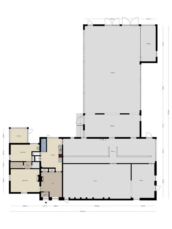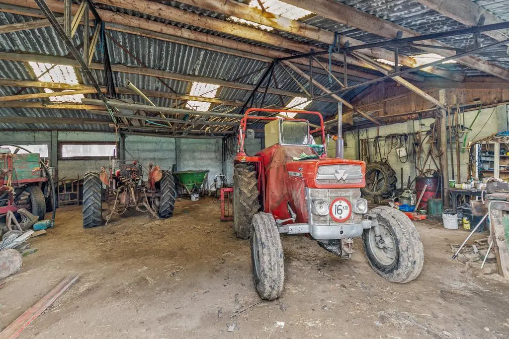 Vanuit de keuken kom je in de aangebouwde schuur met zolder, de schuur is buitenom ook te bereiken. Vanuit deze schuur is een 2e gedeelte van de schuur toegankelijk met deuren naar buiten.