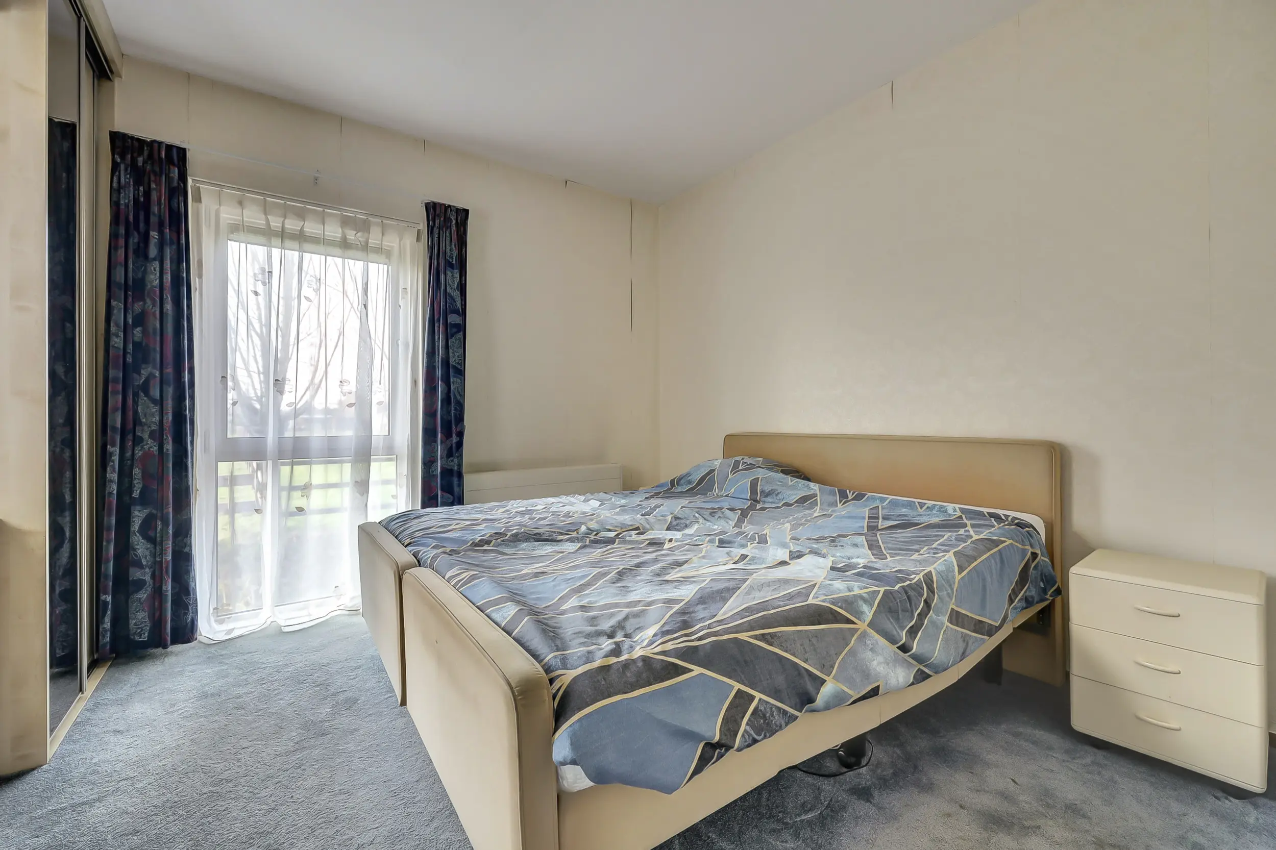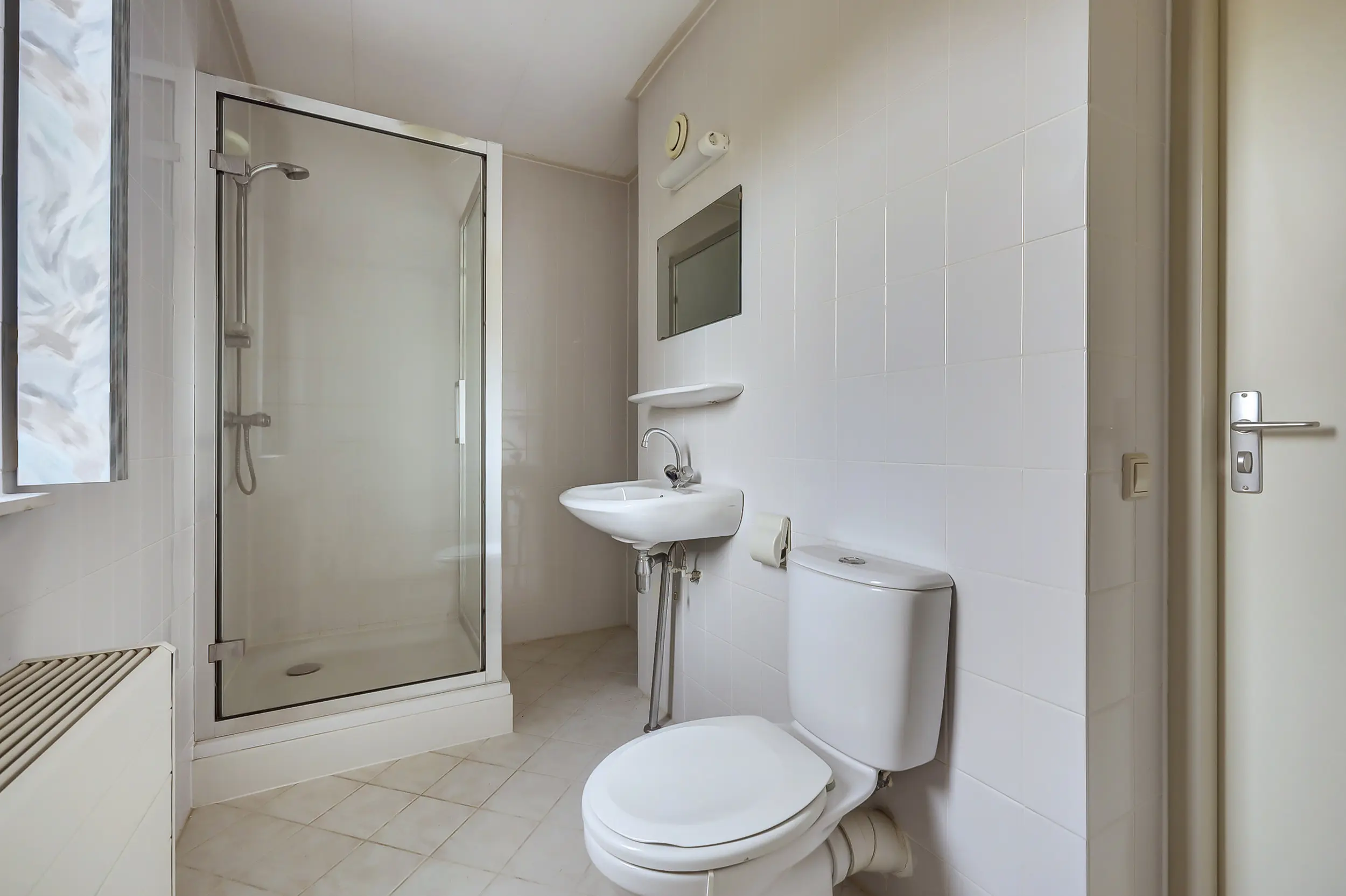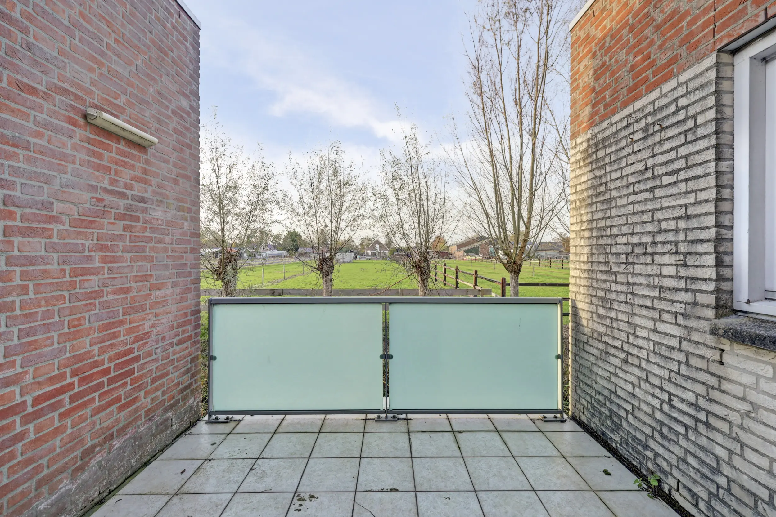Overloopruimte met toegang naar het betegelde terras/balkon met veel privacy, deze heeft vrij uitzicht op de achtergelegen weilanden. Volledig betegelde badkamer met douchecabine, wastafel en toilet. Ruime tweede slaapkamer.