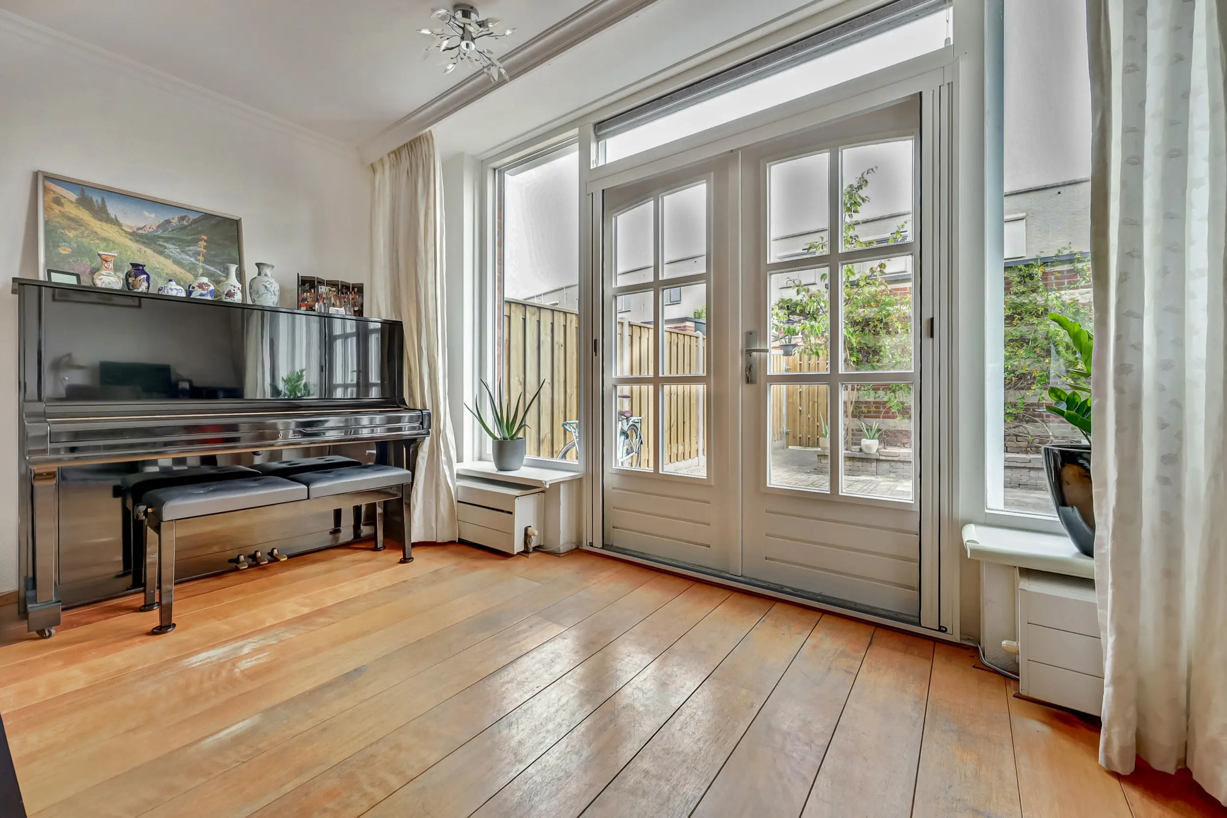 -De kozijnen zijn uitgevoerd in hardhout en voorzien van dubbel glas.