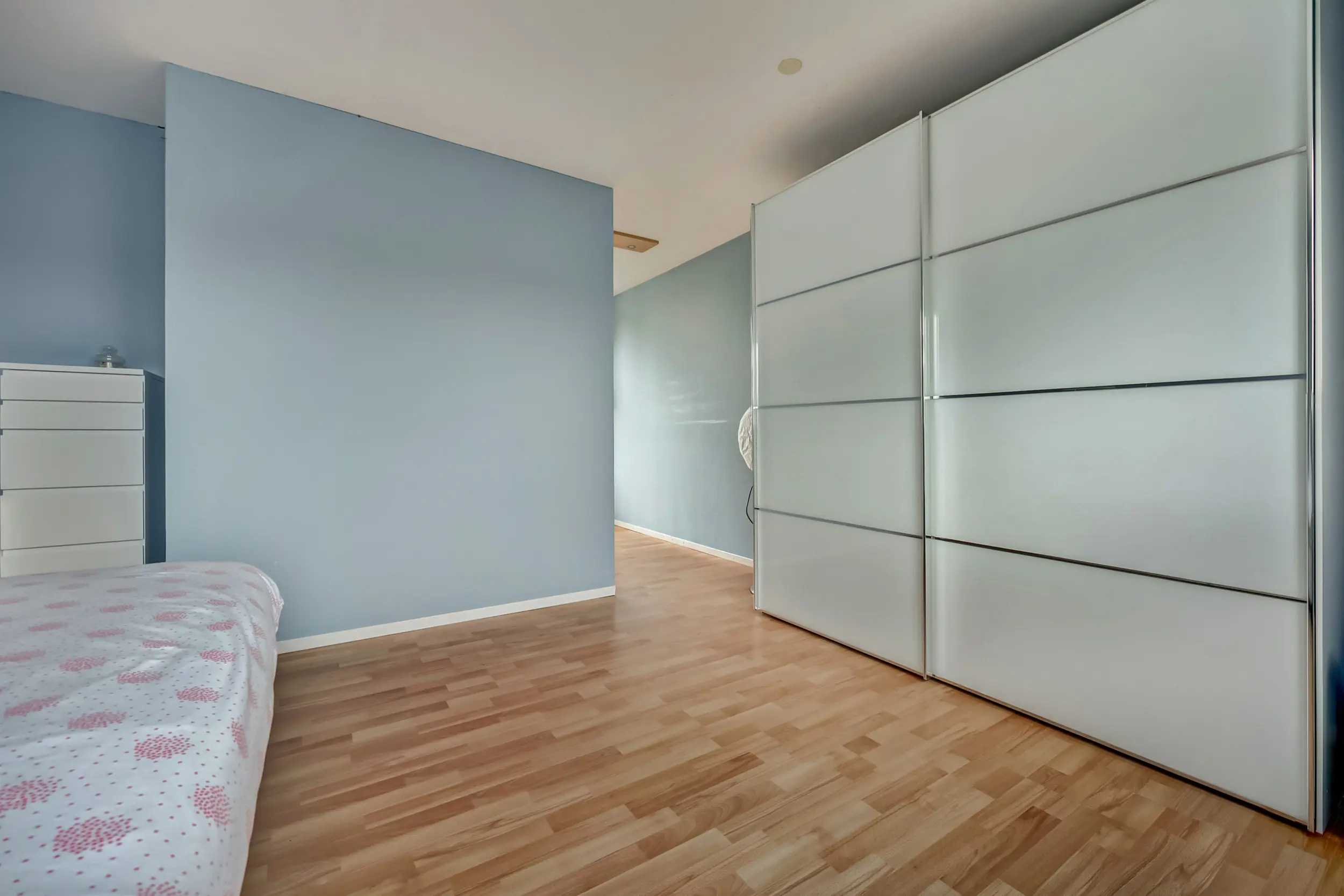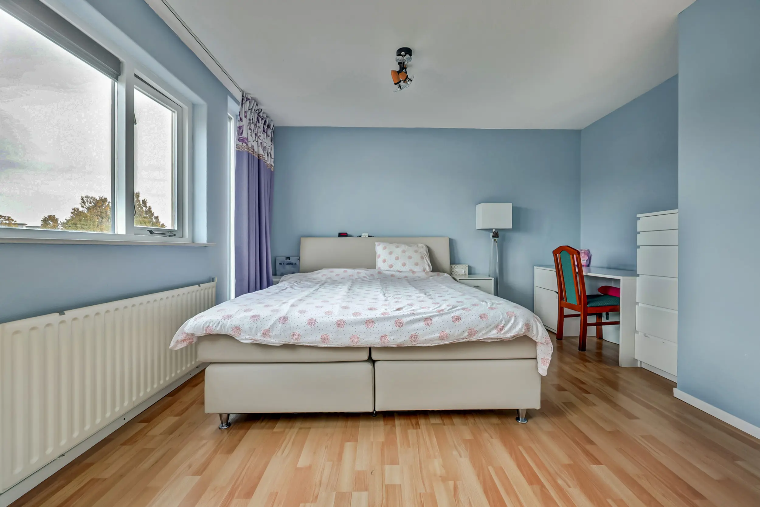 Middels een ruime schuifkastenwand is de overloop gescheiden van de ruime slaapkamer van circa 20m2.