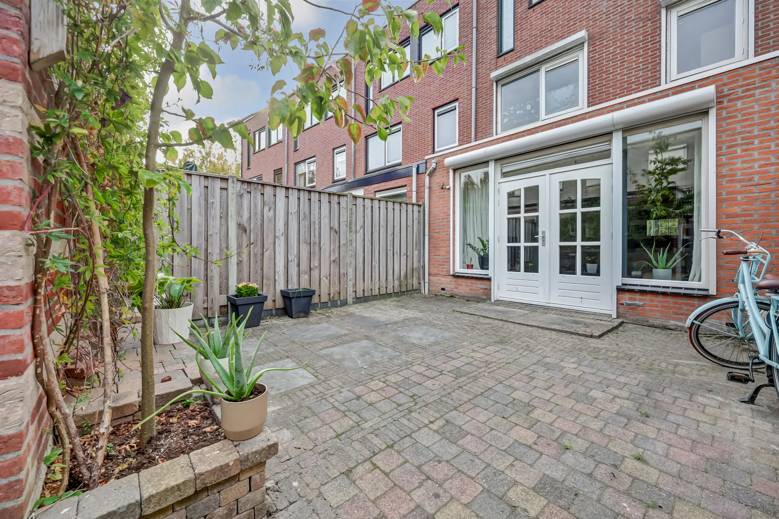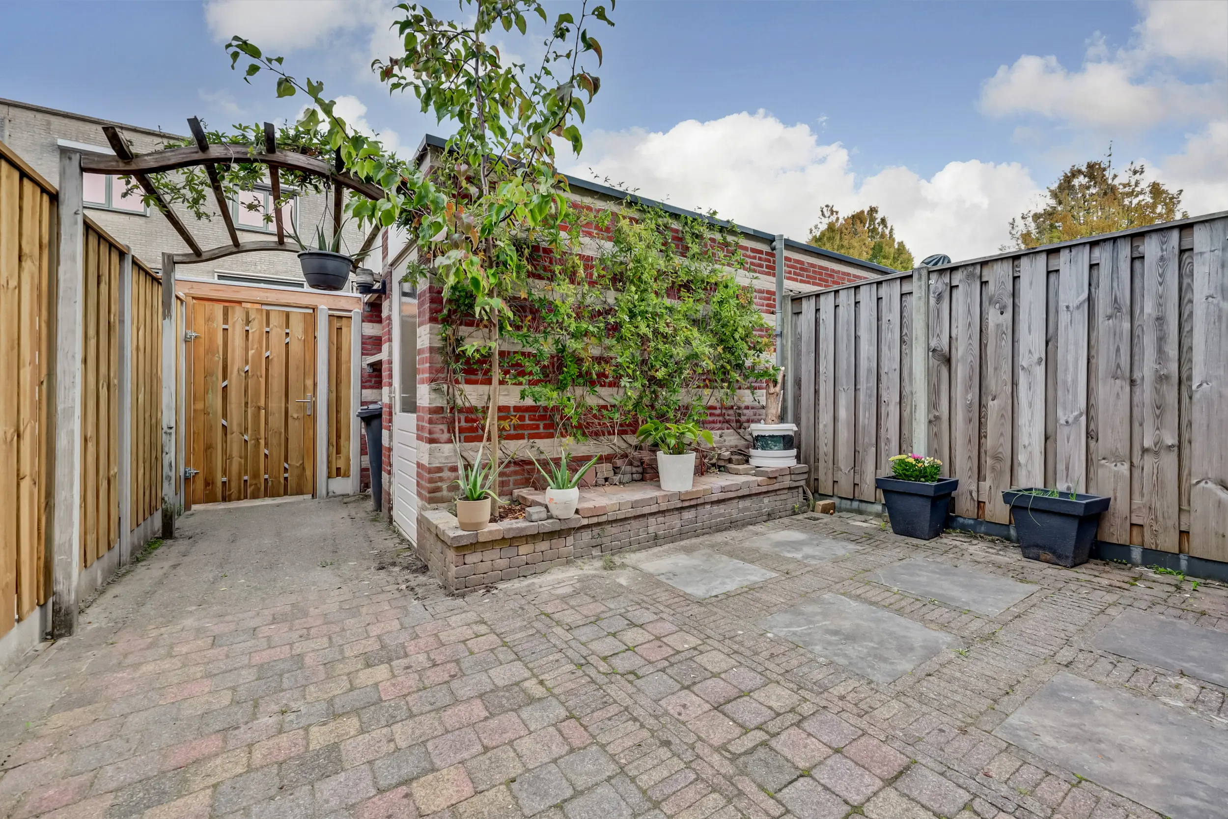 De woning beschikt over zowel een ruime voortuin als achtertuin. In de achtertuin, welke onderhoudsvriendelijk is aangelegd, staat een stenen berging met elektra. Ook beschikt de tuin over een achterom. Vanwege de combinatie van tuin en dakterras is er altijd een plekje in de zon, maar ook een plek in de schaduw te vinden. De voortuin is recentelijk helemaal opnieuw aangelegd.