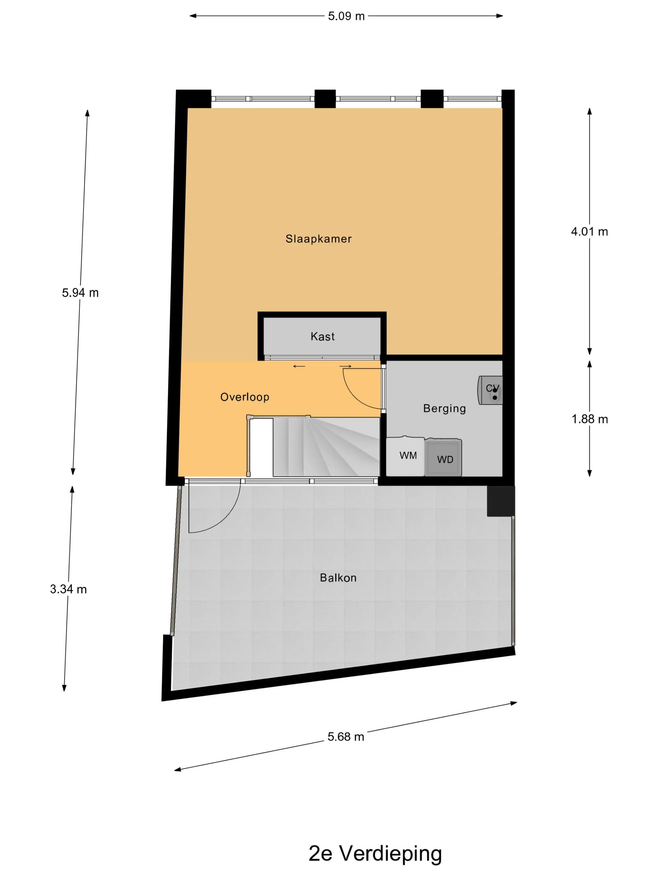 Zolder (slaap) kamer: 4,01 x 5,09m