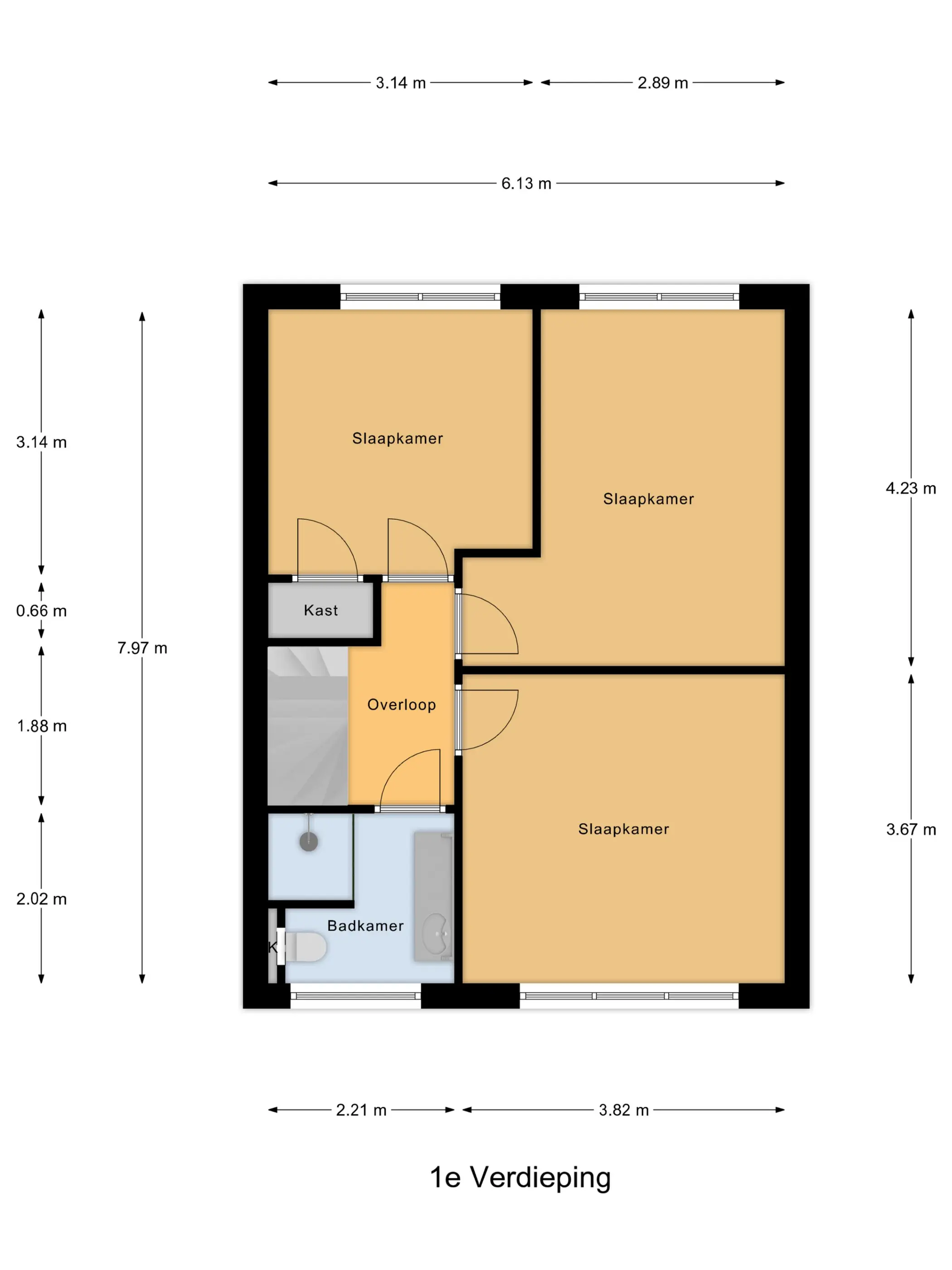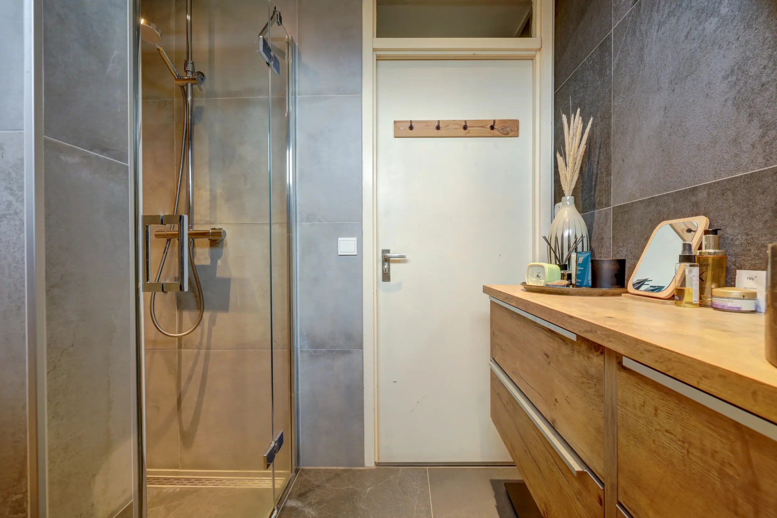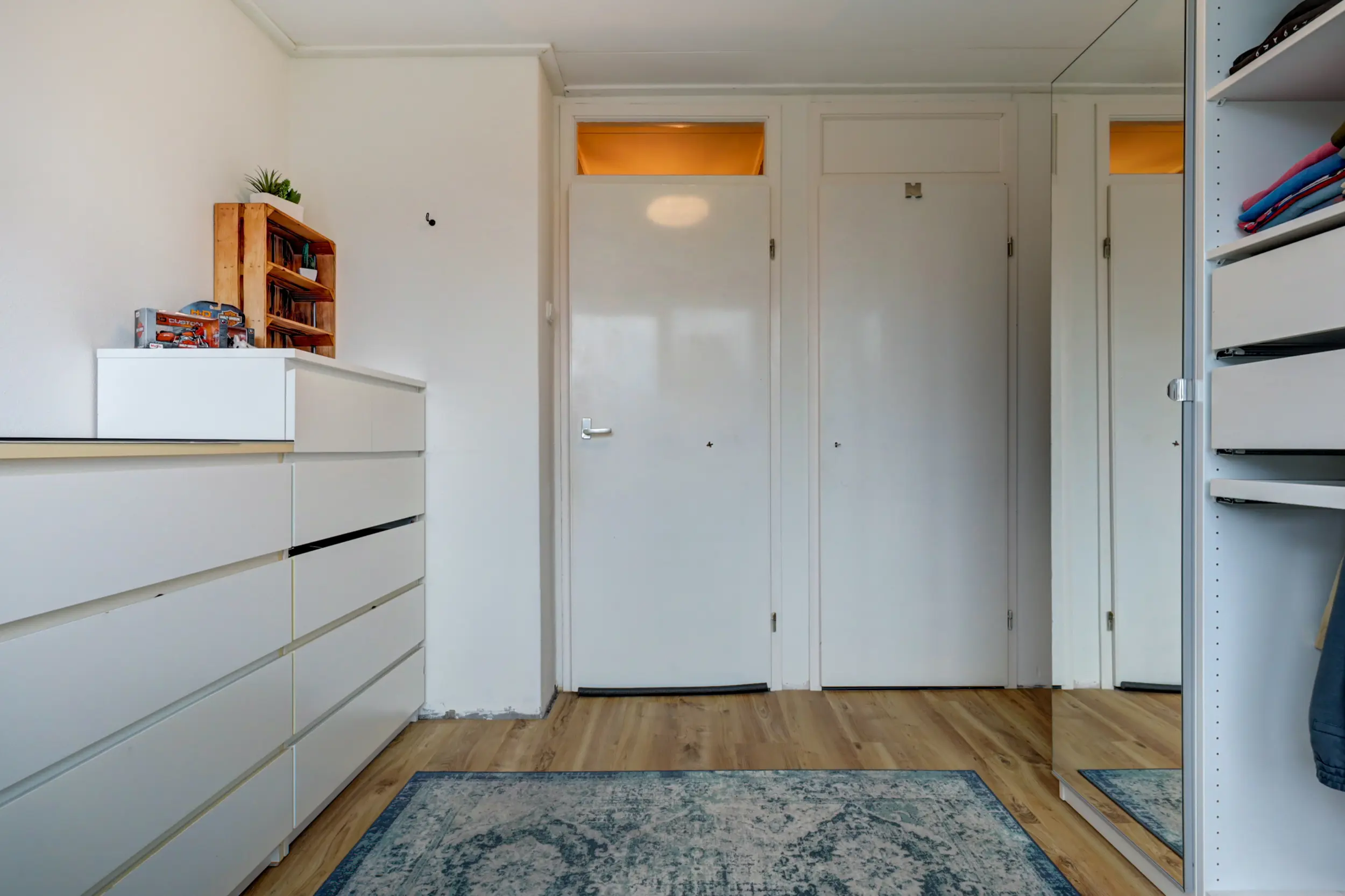 Overloop met de trapopgang naar de 2e verdieping. Toegang naar de 3 ruime slaapkamers en badkamer. De slaapkamers en overloop zijn voorzien van een laminaatvloer. De moderne badkamer (2020) heeft een inloopdouche met regen,- en handdouche, toilet, wastafelmeubel met hardstenen wasbak, spiegel met verlichting, mechanische ventilatie en een raam voor natuurlijke ventilatie. De hoofdslaapkamer is aan voorzijde en beschikt over een elektrisch rolluik en een wastafel. De 2e en 3e slaapkamer zijn aan de achterzijde gelegen waarvan er nu 1 is ingericht als kasten/kleedkamer.