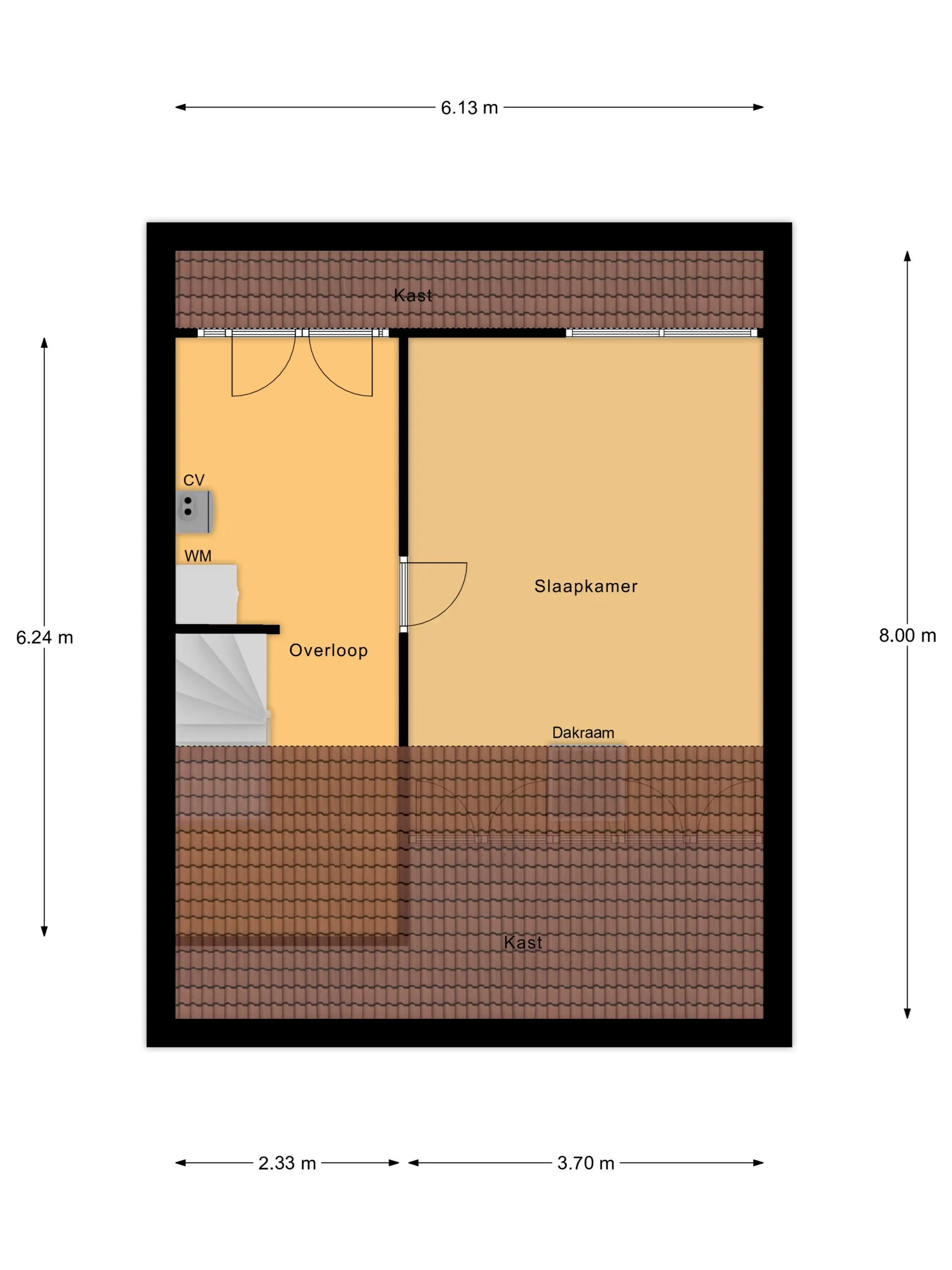 Ook deze verdieping is ruim van opzet, de gehele achterzijde beschikt over een dakopbouw en de gehele zolder is geïsoleerd. Deze is v.v. kunststof kozijnen en HR ++ beglazing.