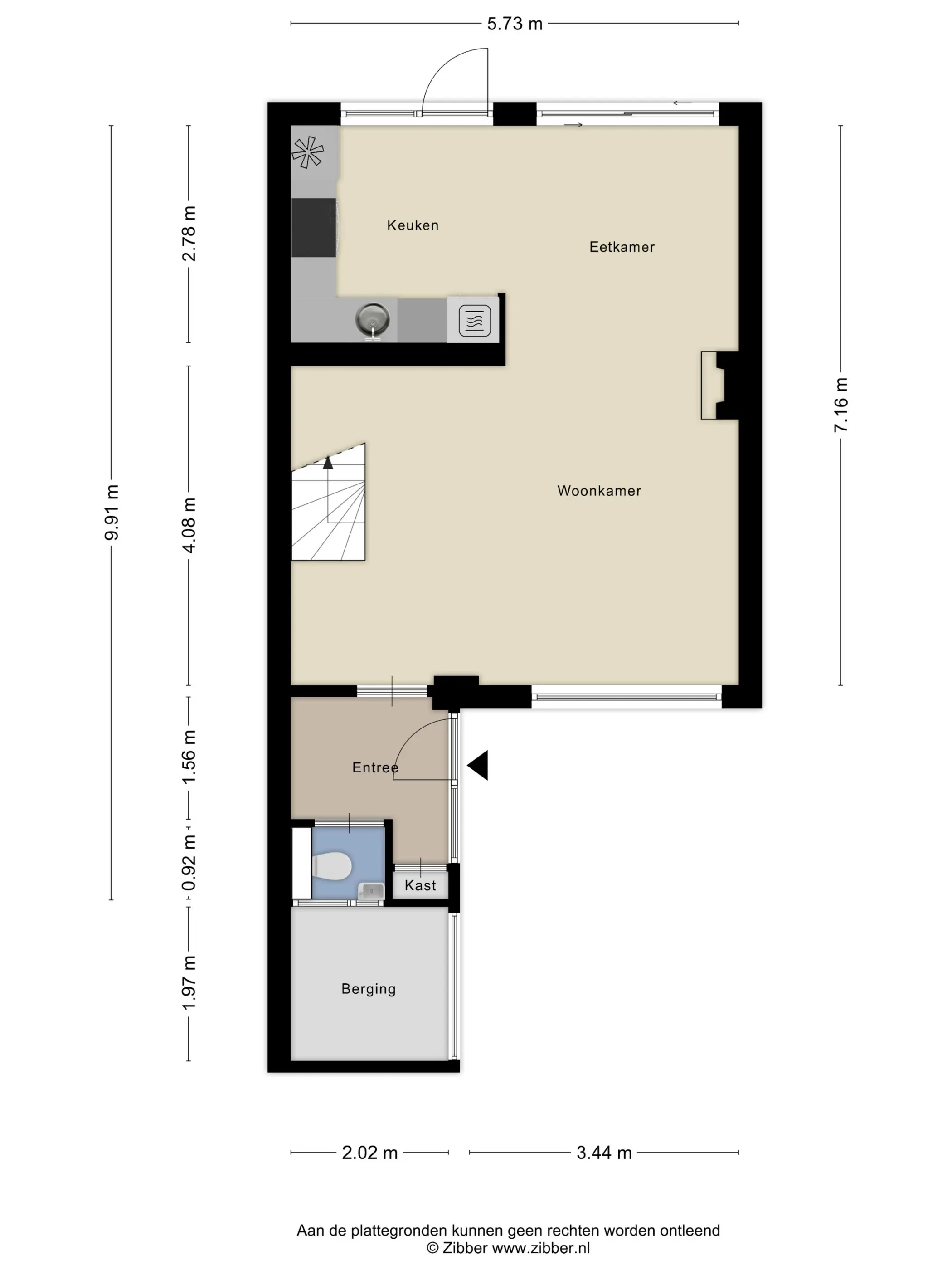 Keuken: 5,73 x 2,78m