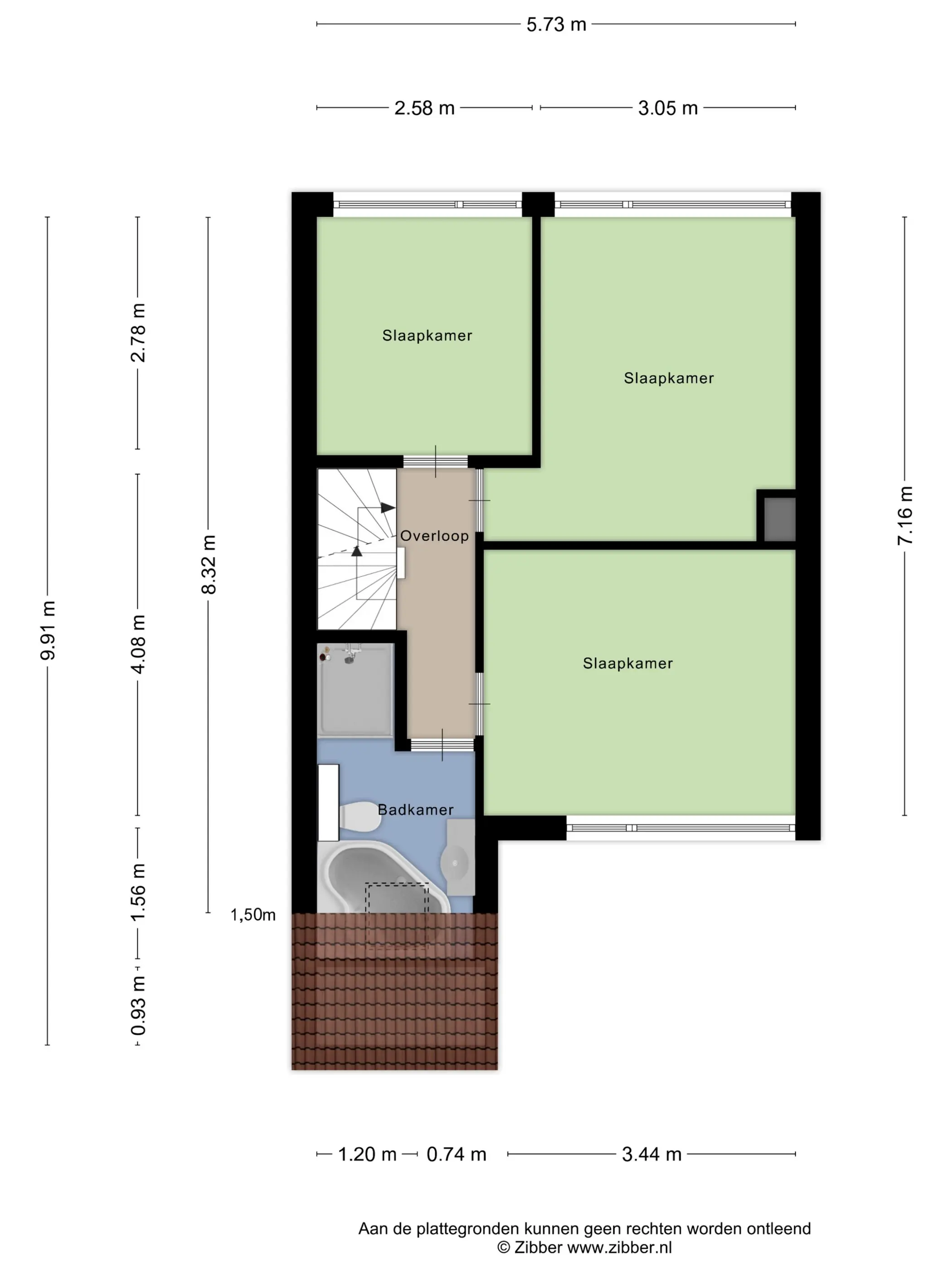 Slaapkamer vz: 3,44 x 3,18m