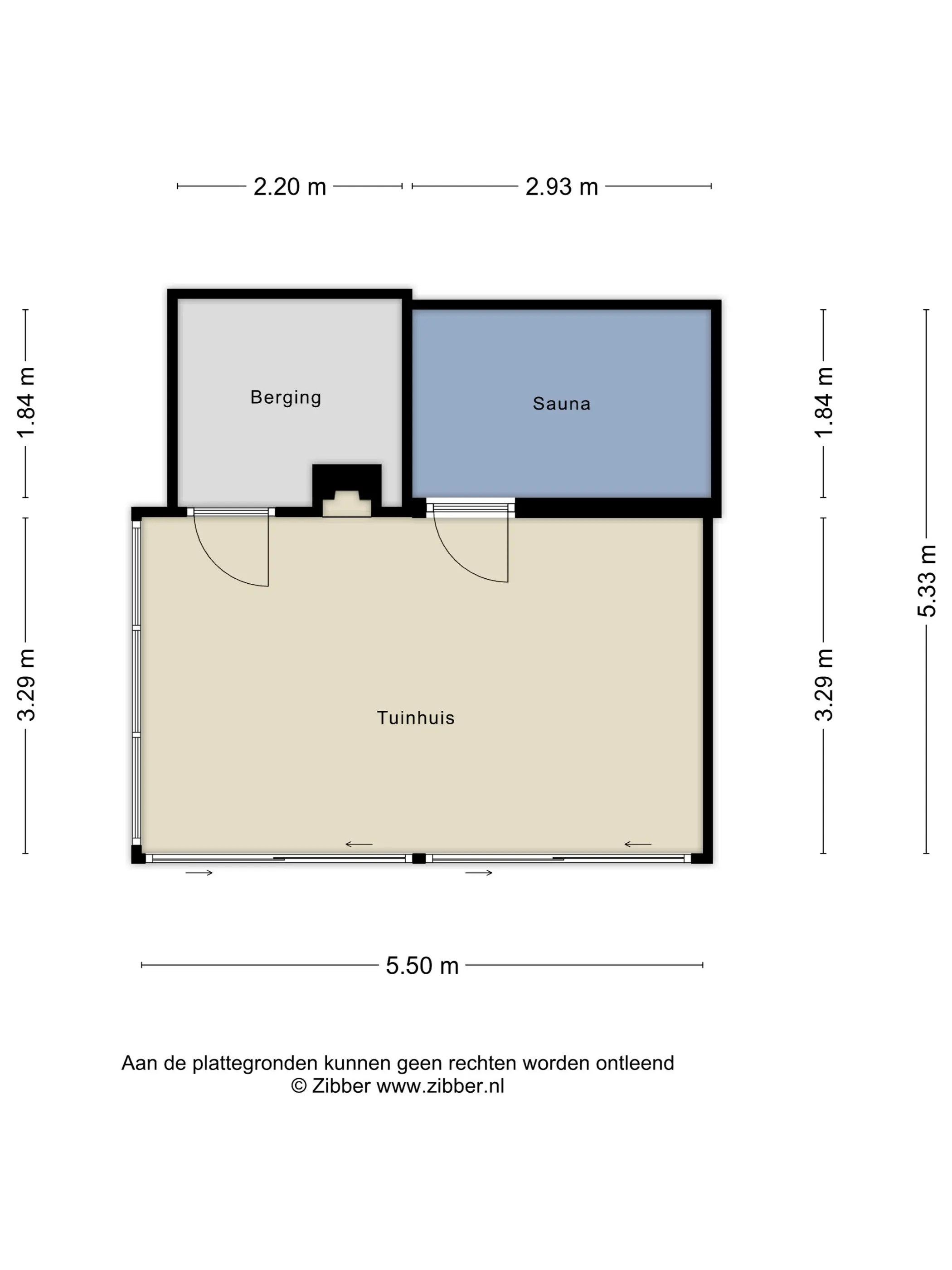 Berging achterzijde: 1,84 x 2,20m