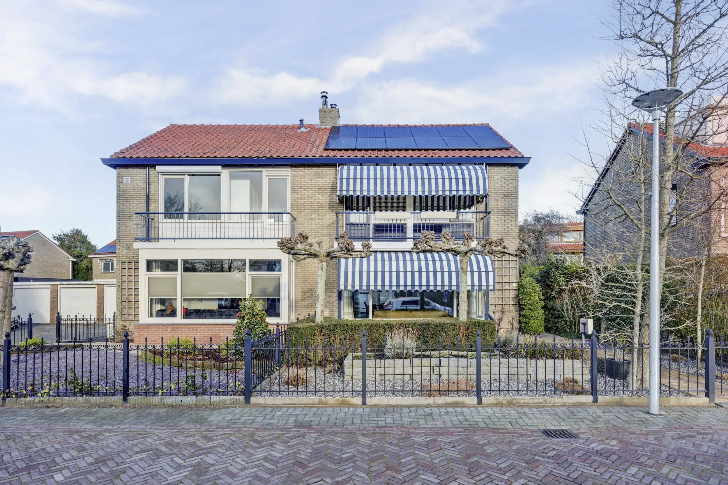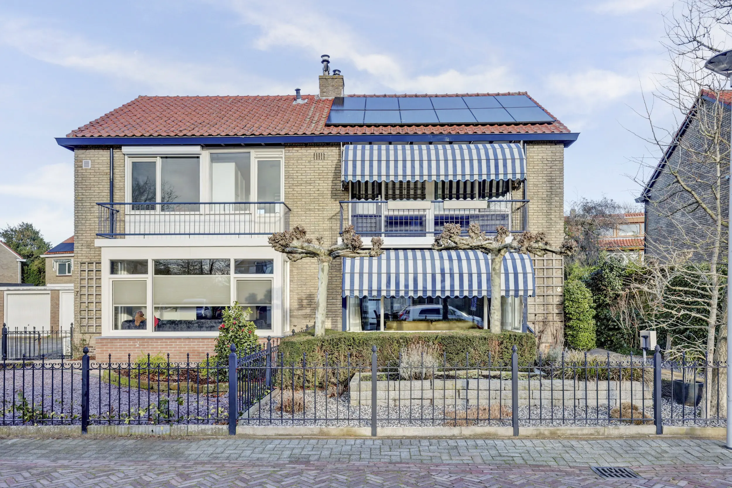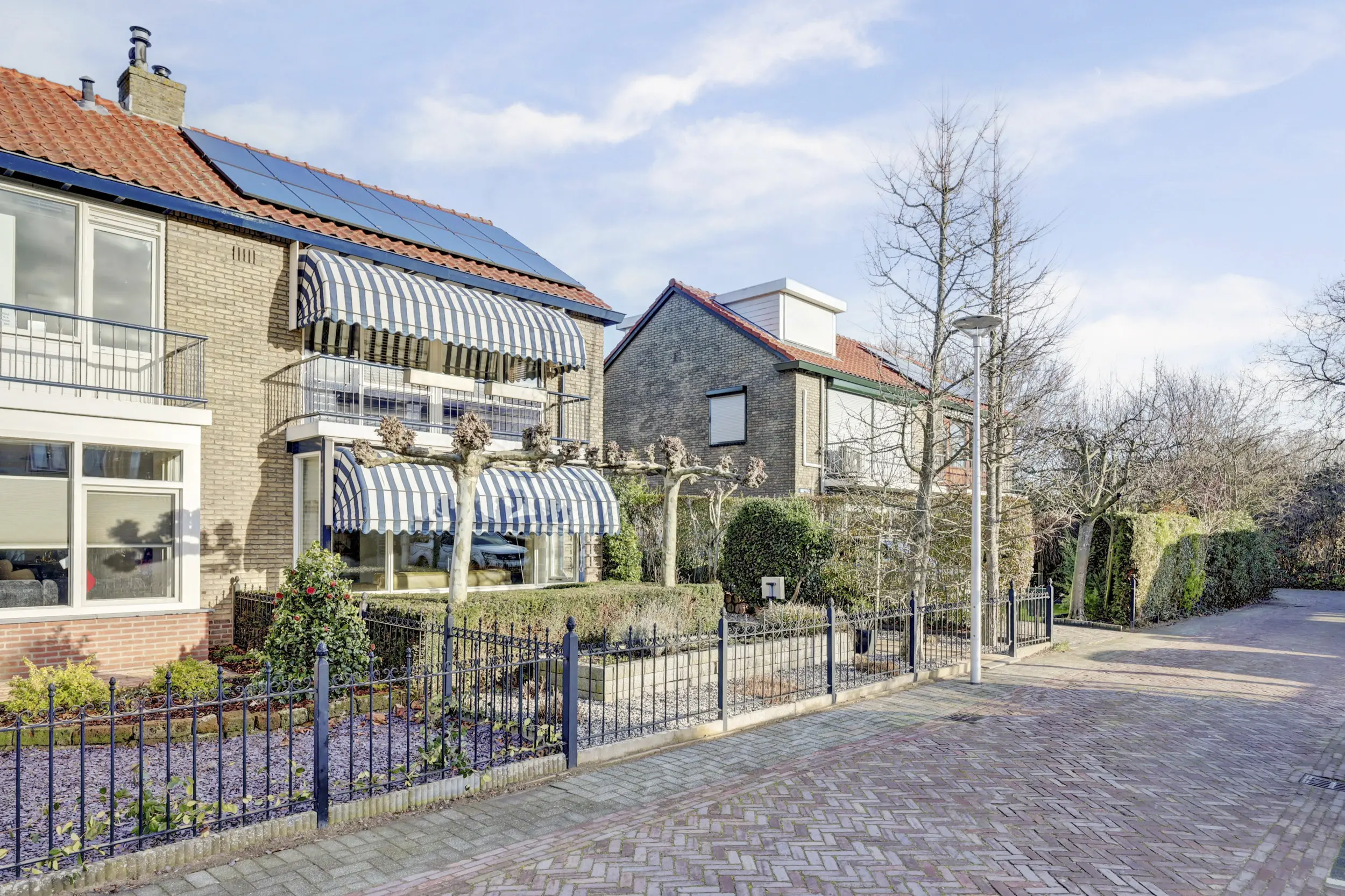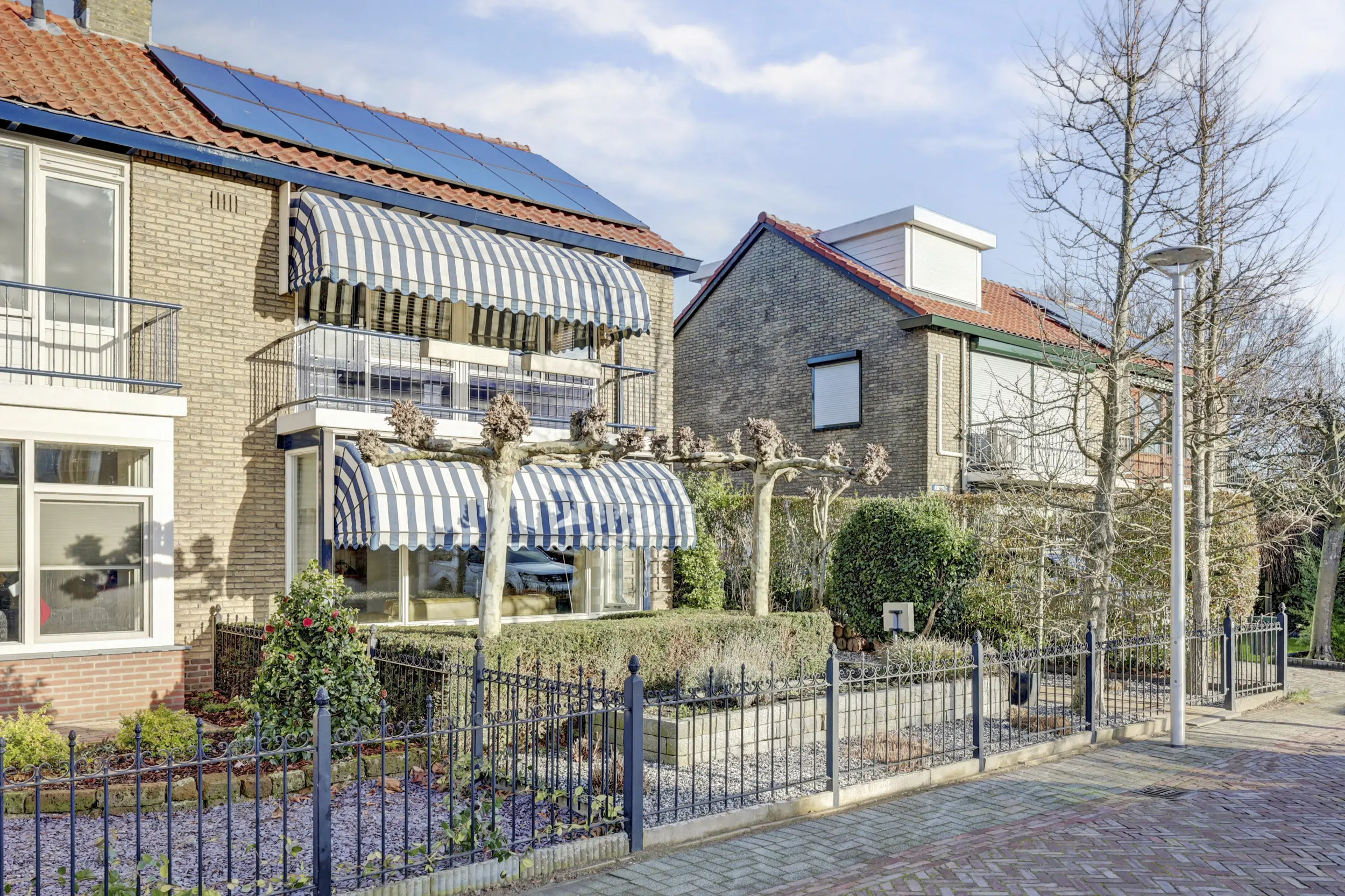 De voortuin is afgeschermd met een smeedijzeren hekwerk en voorzien van vaste planten. De voorgevel beschikt over markiezen als zonwering.