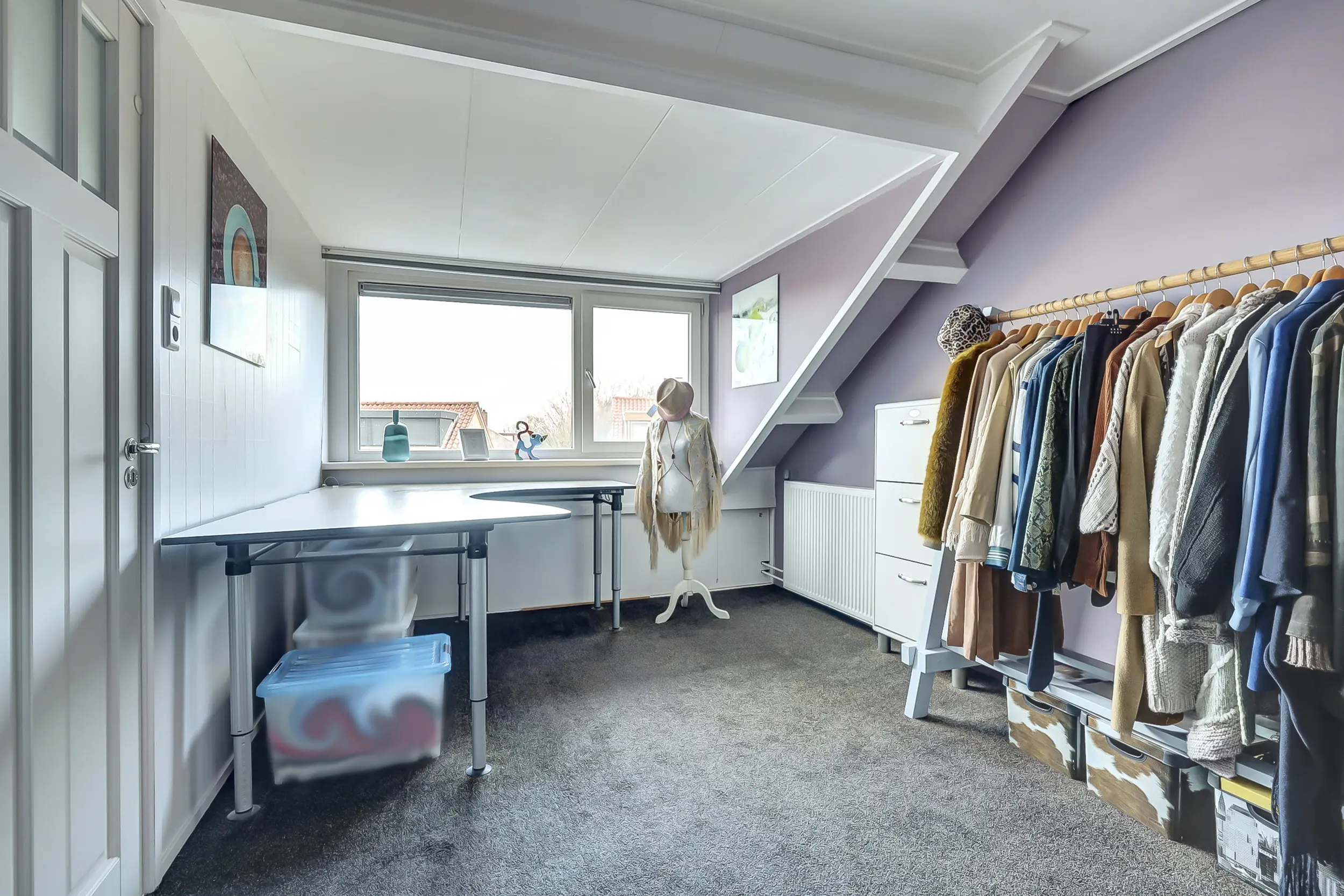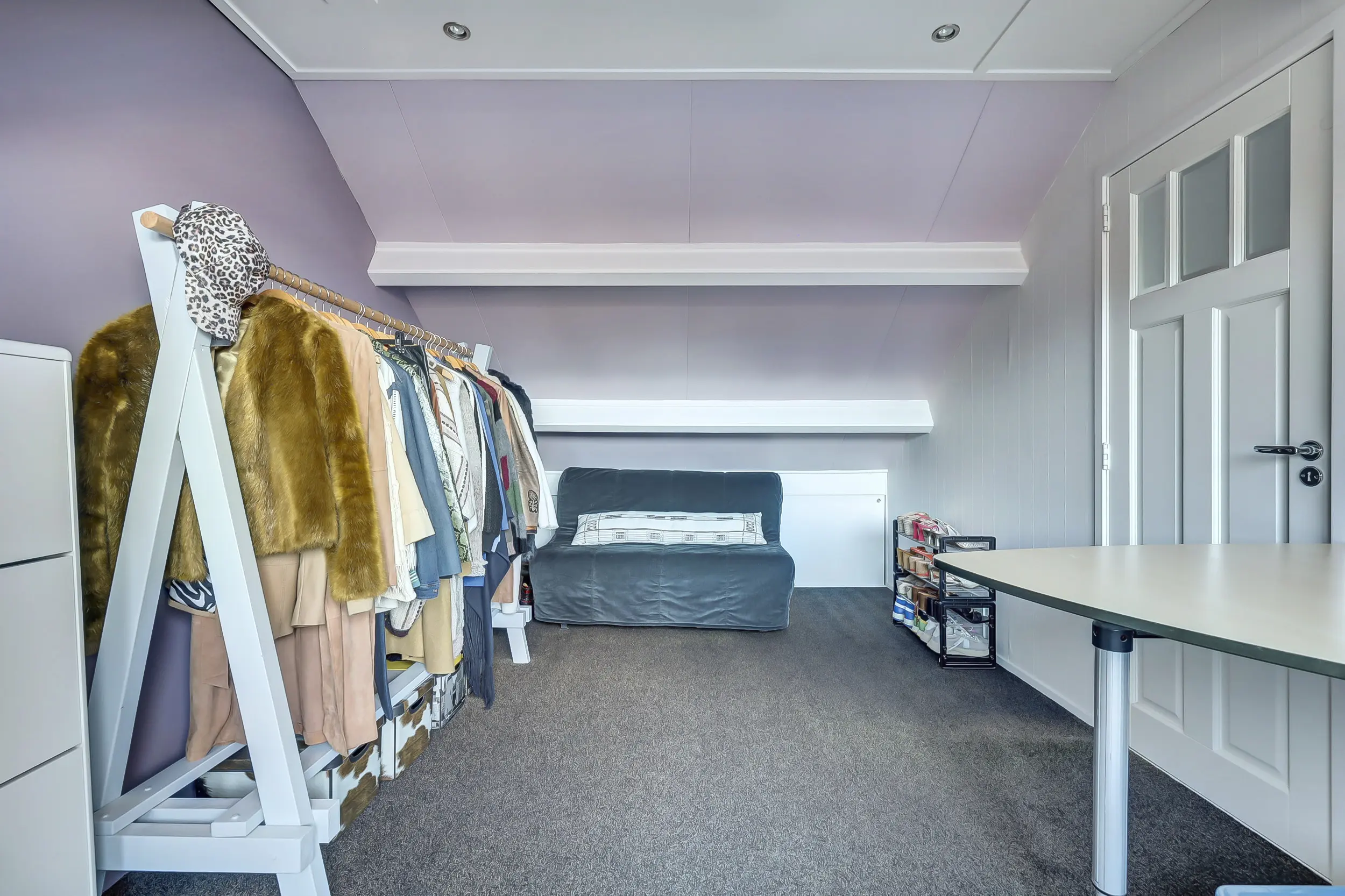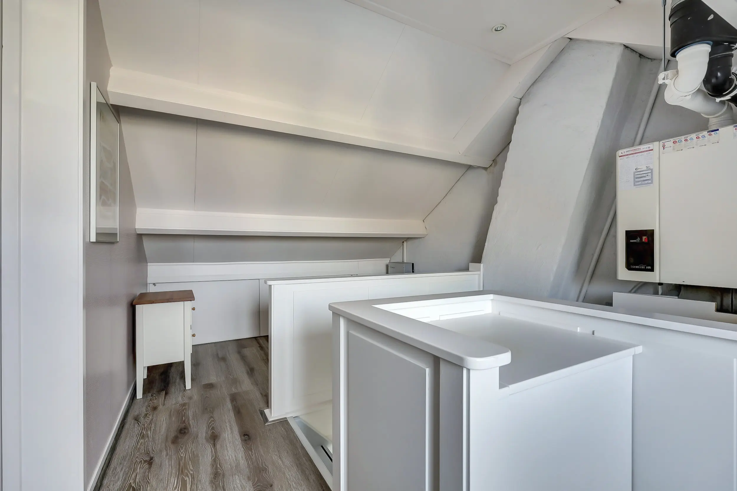 Overloop met dakkapel, opstelling van de cv combiketel, de inverter t.b.v. de zonnepanelen en aansluiting ten behoeve van de wasmachine en droger. Zolderkamer eveneens met (kunststof) dakkapel en inbouwspots.