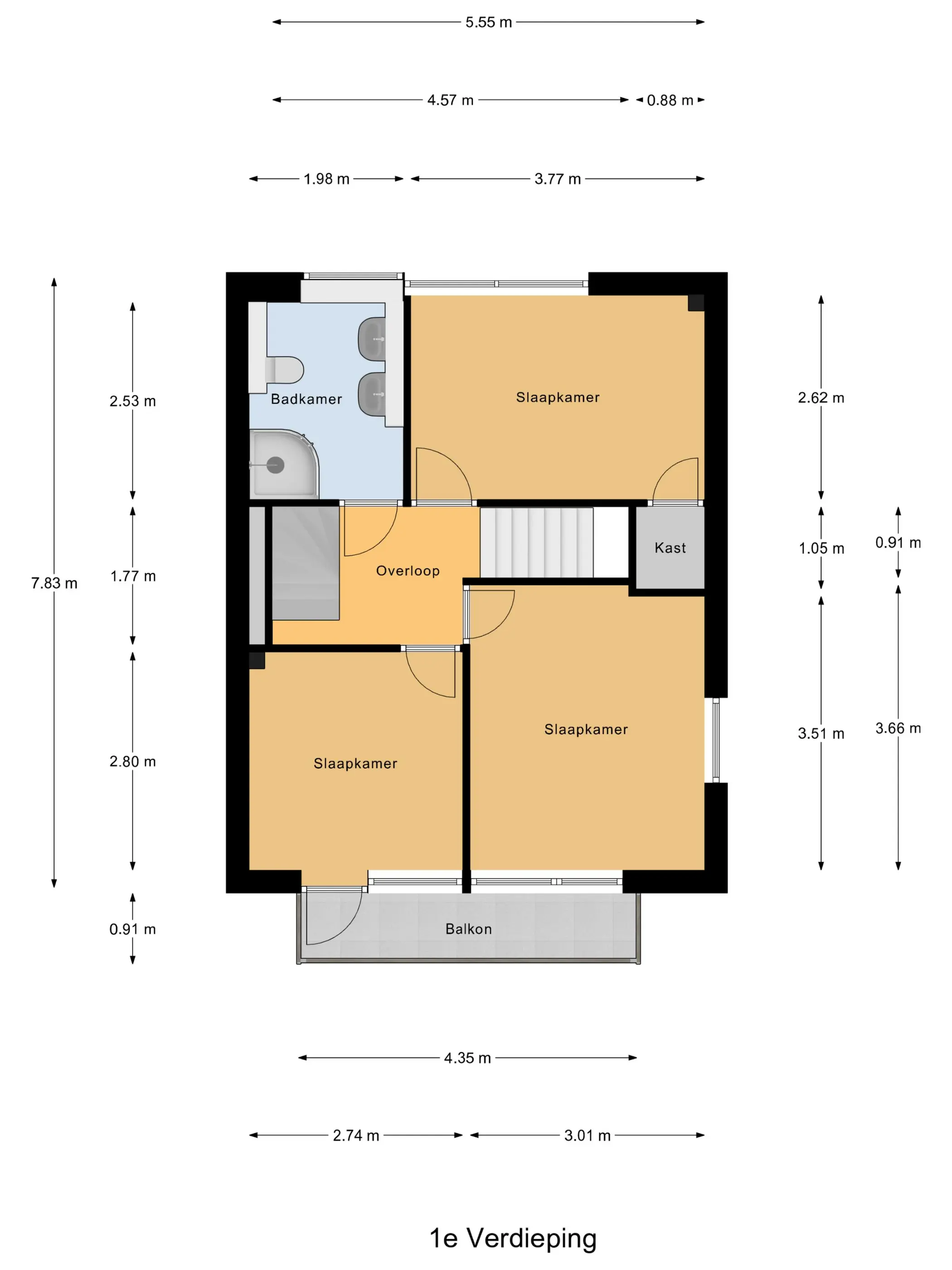 De hoofdslaapkamer bevindt zich aan de voorzijde van de woning eveneens de tweede slaapkamer welke toegang heeft tot het balkon. De derde slaapkamer ligt aan de achterzijde en heeft een vaste kast.
