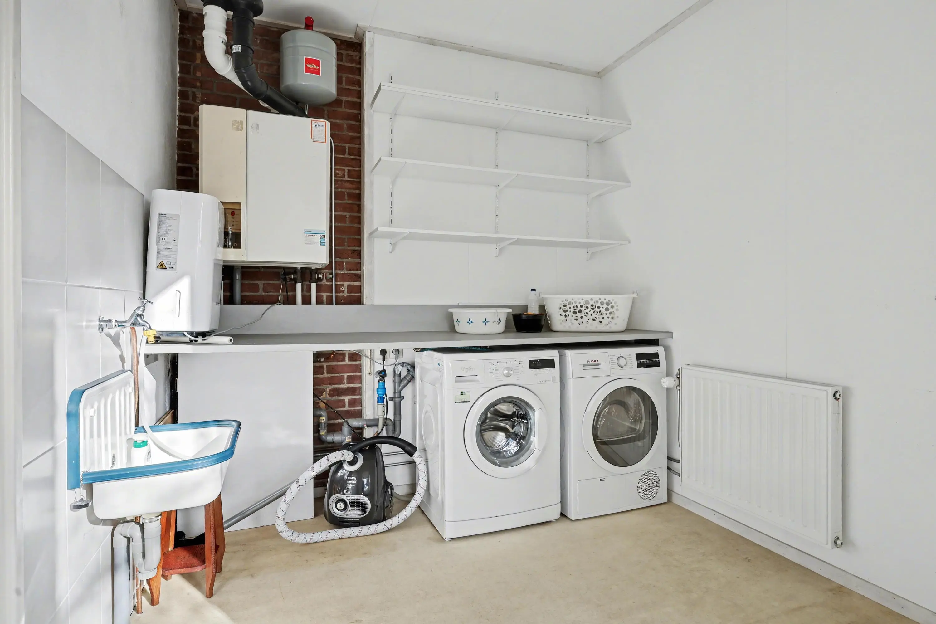 Via het achterportaal bereikt u de bijkeuken met aansluitingen voor de wasmachine en de droger en de opstelling van de CV ketel. Vanuit hier is tevens de inpandige garage bereikbaar met elektrische bediende sectionaldeur.
