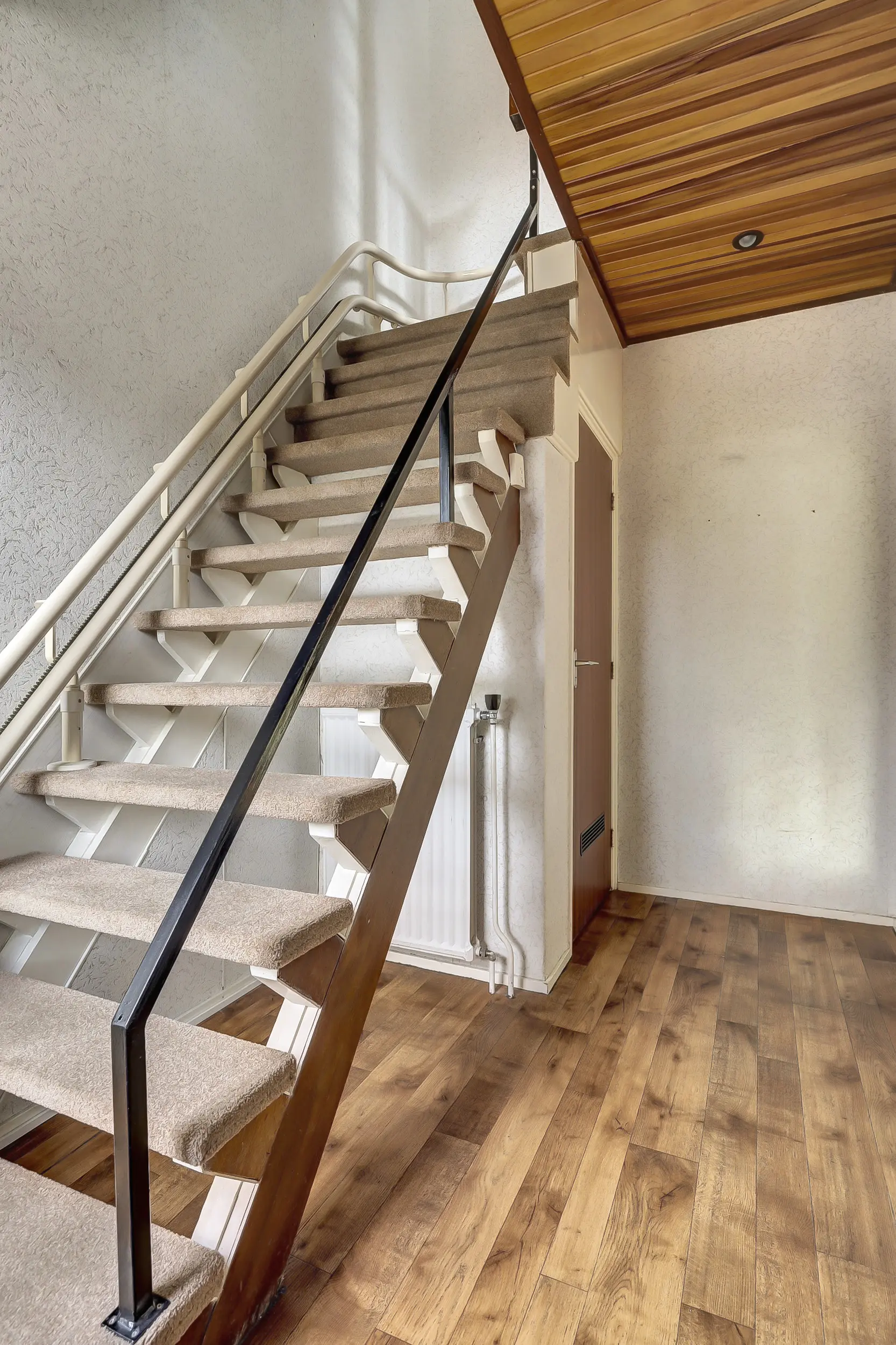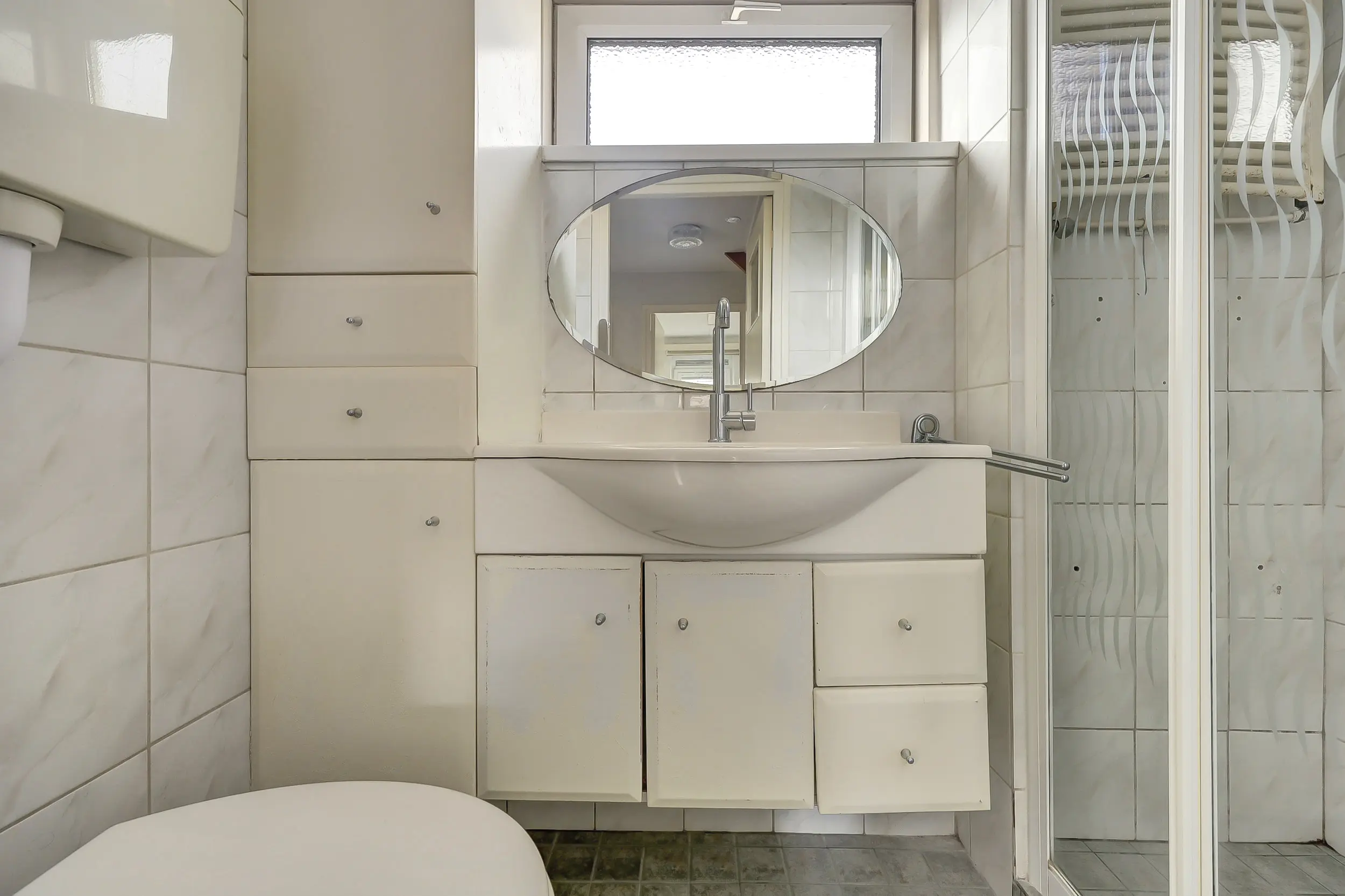 Overloopruimte met vinyl vloerafwerking (gehele verdieping) en de trapopgang naar zolder. Toegang naar de drie ruime slaapkamers waarvan er twee aan de achterzijde zijn gelegen. Volledig betegelde badkamer uitgevoerd met een douchecabine, toilet, wastafel en kantelraam.