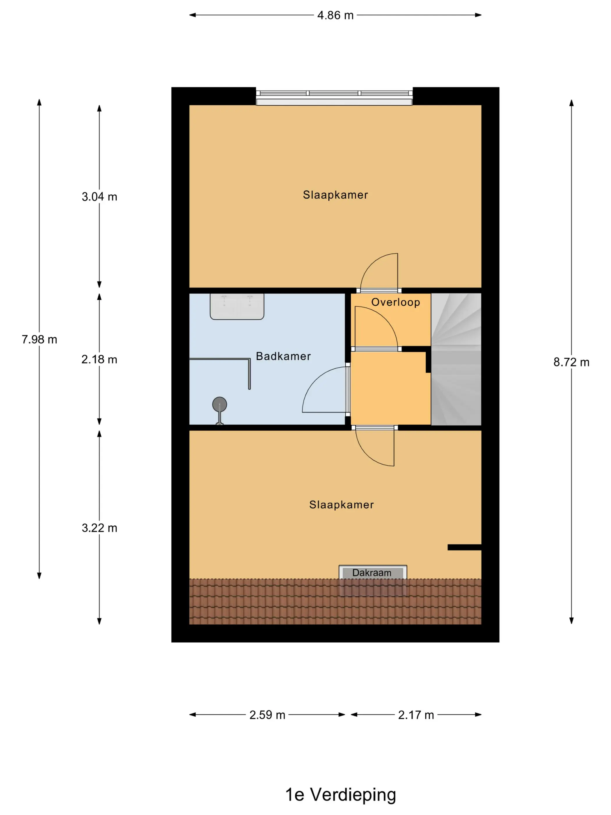 Slaapkamer I: 3,22 x 4,86m.